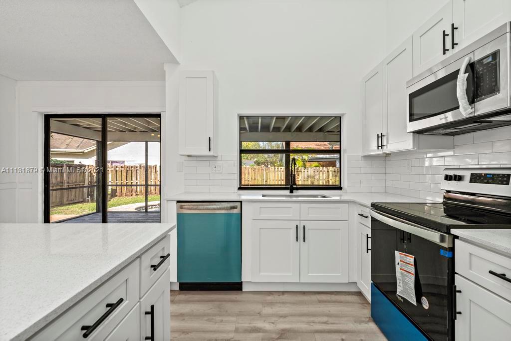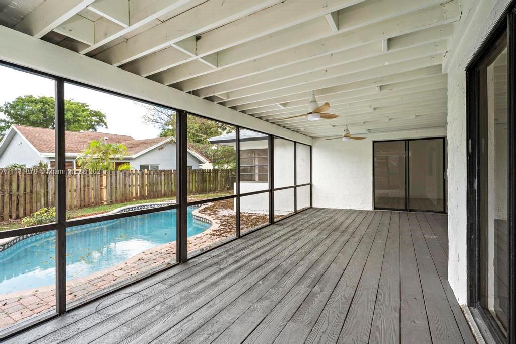 Completely Remodeled and move-in ready home in Coral springs with a New Roof! The interior is freshly upgraded with new tile flooring that flows throughout the split bedroom floorplan and a modern open style kitchen featuring Quartz countertops, Wood cabinets & SS appliances. The master bedroom includes a walk-in closet brand new dual vanities & a tiled stand-up shower. Walk out back to your spacious screened-in patio/deck that overlooks the pool and the private fenced in backyard. This property also offers plenty of parking with a large driveway and a two car garage. This property is a must see! Schedule your showing now!