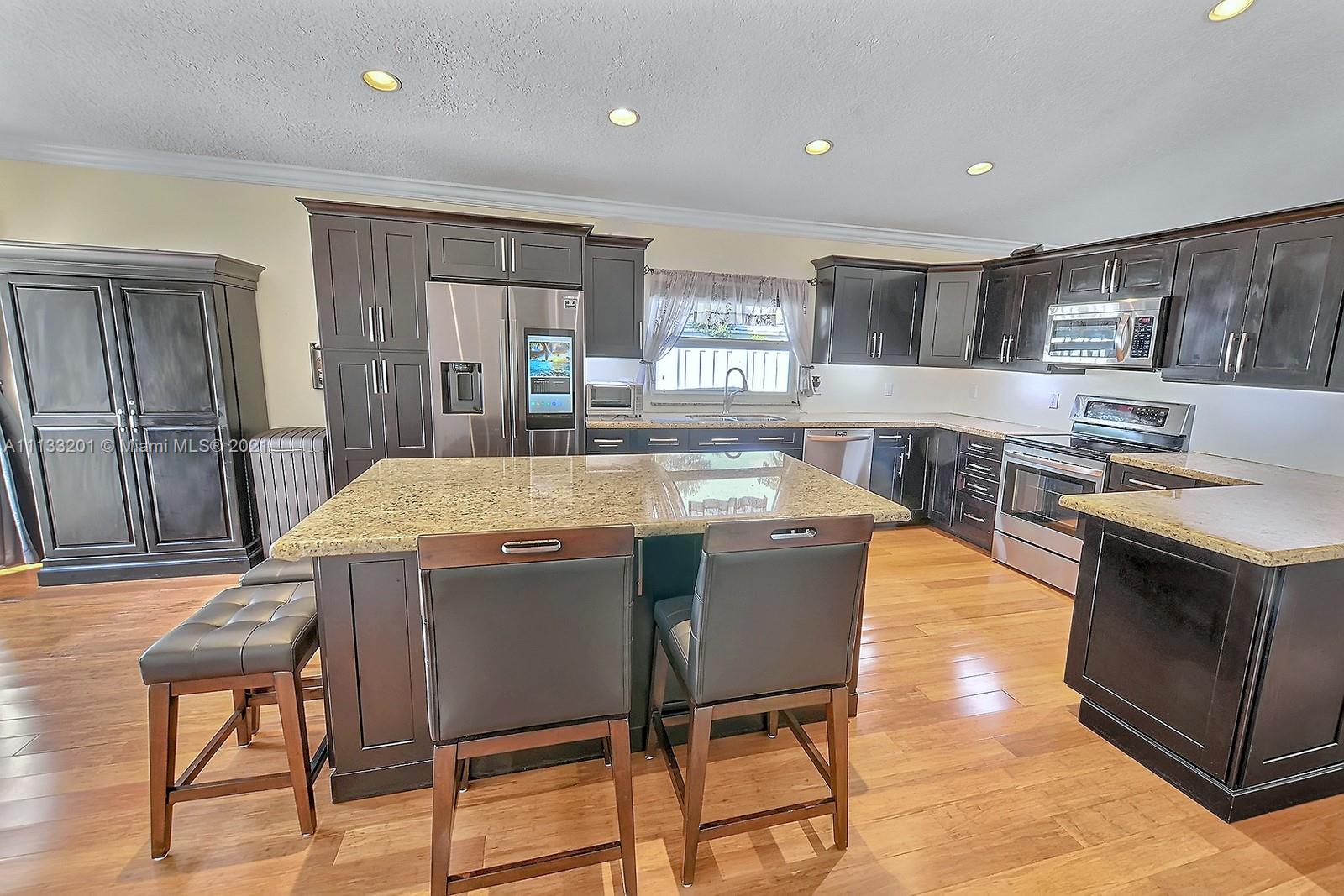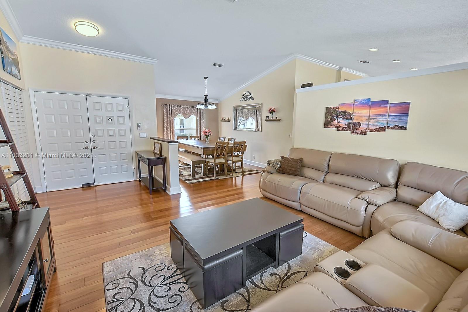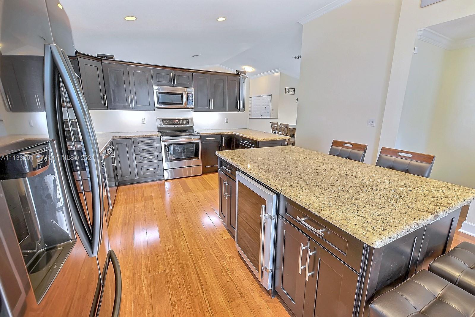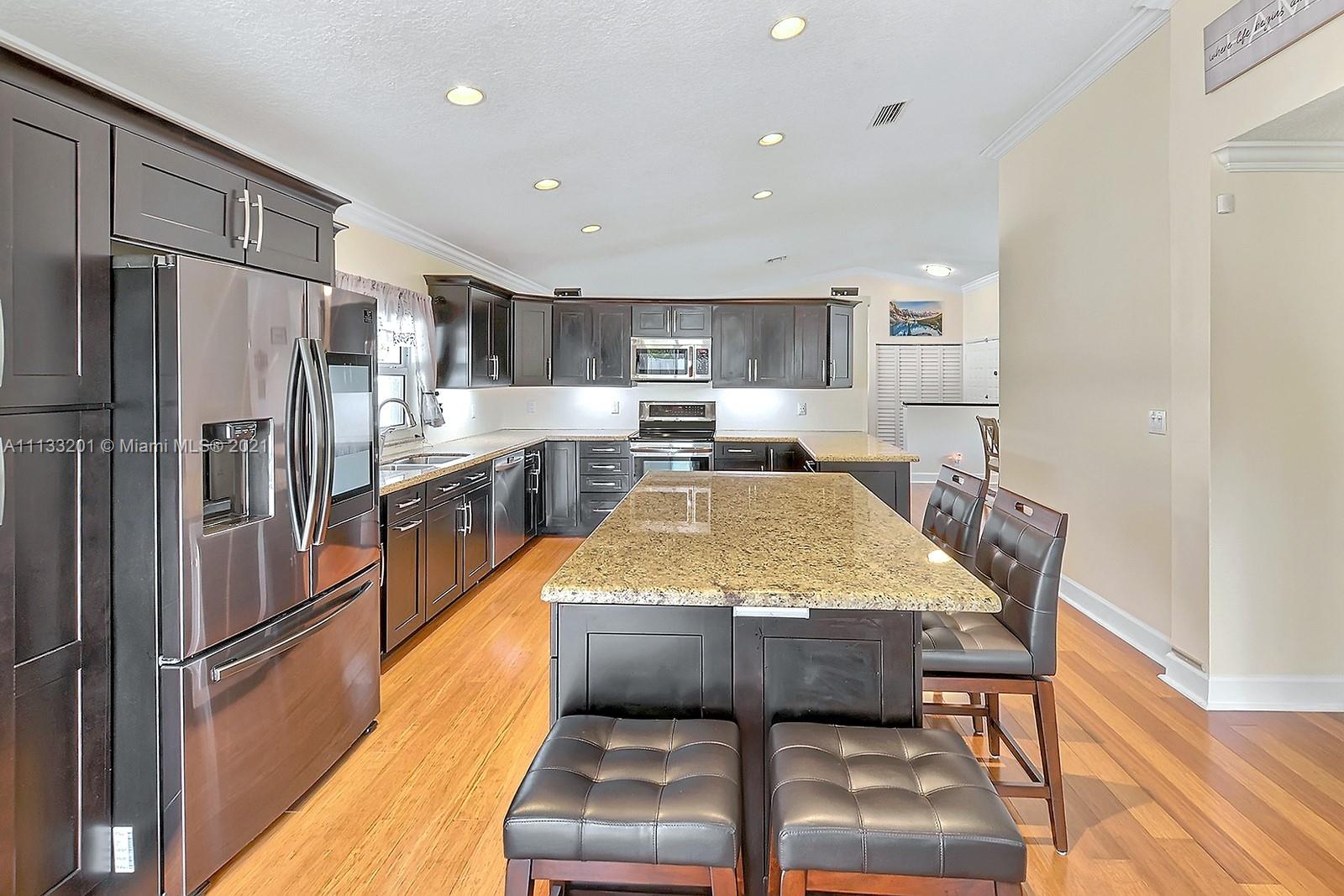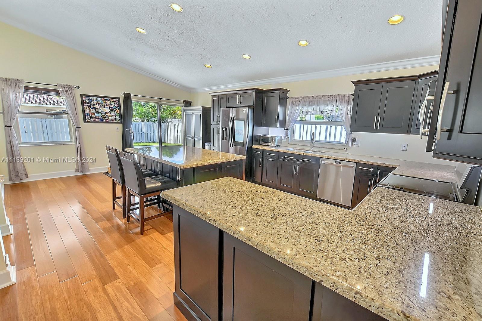 BEAUTIFULLY REMODELED 3 BED 2 BATH CORNER LOT HOME LOCATED IN QUATRAINE IV, JACARANDA. THIS MOVE-IN READY HOME FEATURES A FULLY UPGRADED KITCHEN W STAINLESS STEEL APPLIANCES INCLUDING SAMSUNG SMART FRIDGE, GRANITE COUNTERTOPS, GORGEOUS DARK SHAKER CABINETS & A MASSIVE CENTER ISLAND W BUILT IN WINE FRIDGE. UPGRADES THROUGHOUT INCLUDE CROWN MOLDING AND VAULTED CEILINGS FOR A SPACIOUS AND AIRY FEEL. PRIMARY SUITE HAS DIRECT ACCESS TO LARGE BACKYARD & (2) WALK IN CLOSETS. IMPECCABLY REDESIGNED ENSUITE BATHROOM FEATURES A DREAMY WALK-IN SHOWER, UNIQUE LED MIRRORS, DOUBLE VANITY TOPPED W/ QUARTZ. BRAND NEW WASHER AND DRYER AND CUSTOM BUILT OUT STUDIO GYM. THE LARGE, PRIVATE YARD IS FULLY FENCED & HAS ROOM FOR A POOL. WALKING DISTANCE TO CENTRAL PARK, PLANTATION PROMENADE, & ELEMENTARY SCHOOLS.