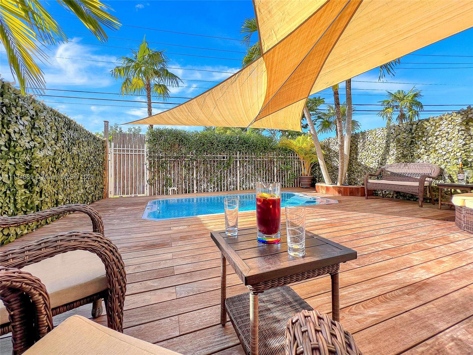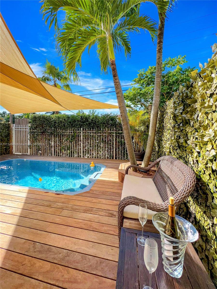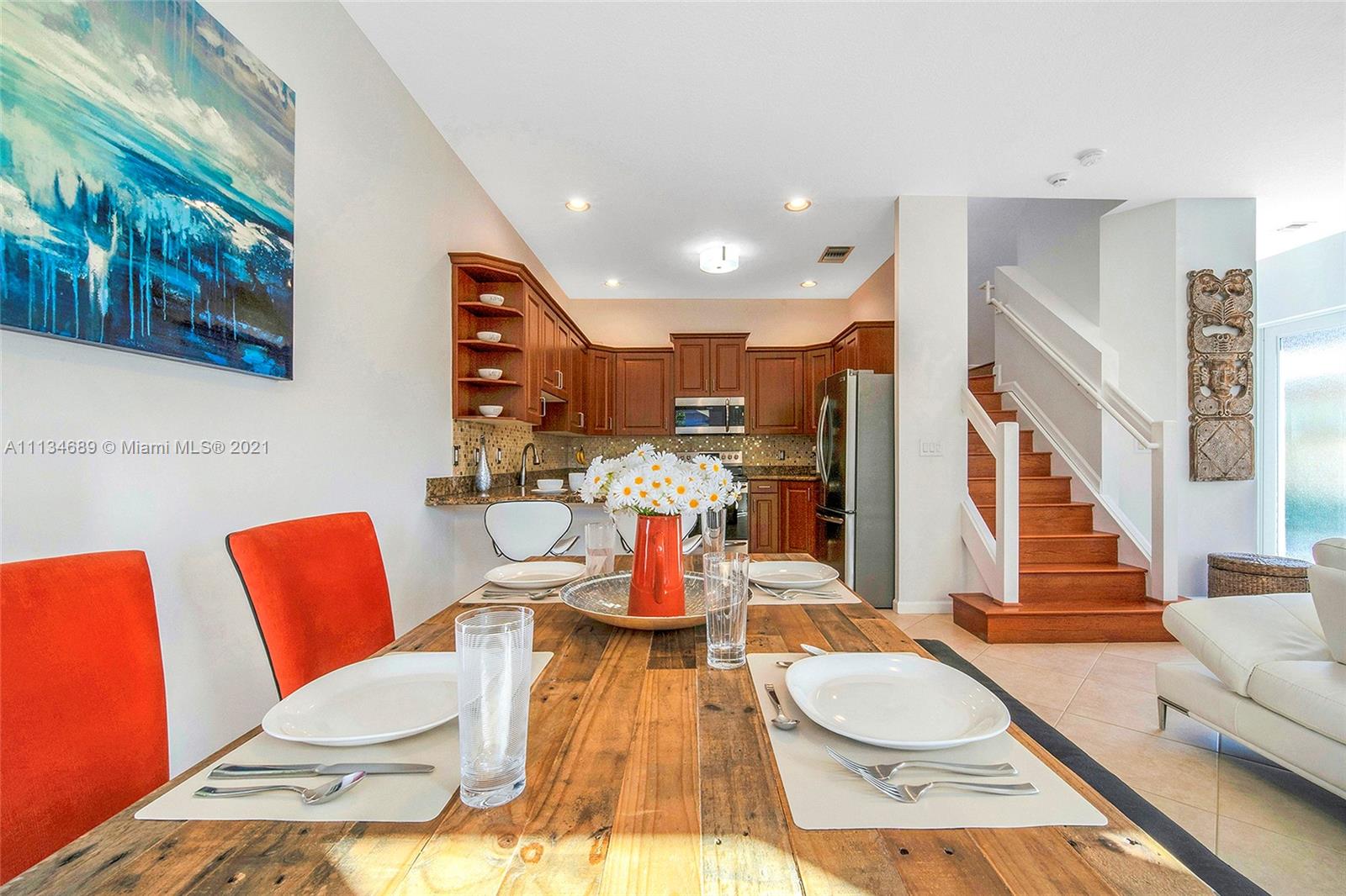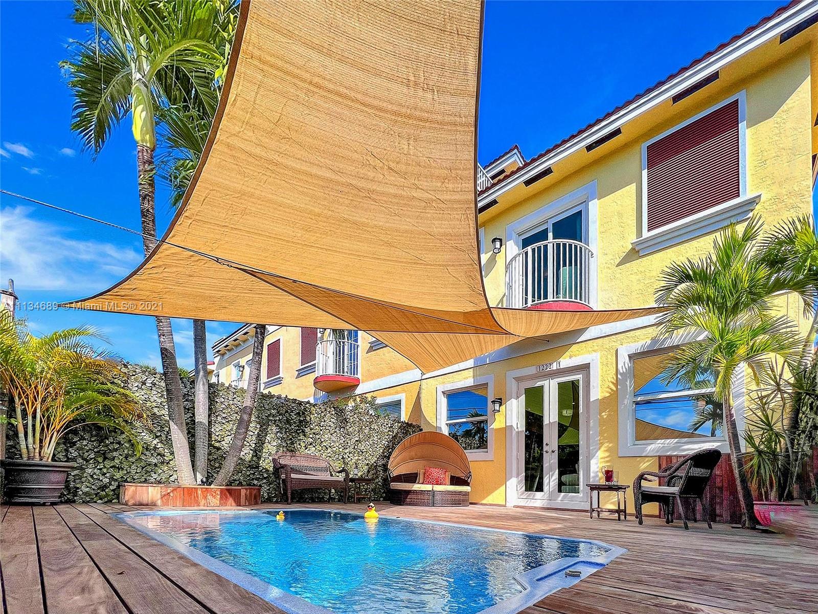 Enjoy carefree luxe living in this spacious updated two-story Lake Ridge corner townhome. Totally turnkey with volume ceilings, new designer stone veneer wall, bright open flow living, dining and eat-in kitchen with double French doors to the private fenced entertainment patio with plunge pool and beautiful Ipe wood deck—great to entertain or relax! Unwind in the large main suite retreat with vaulted ceilings, spa-like bath with soaking tub, large textured porcelain-walled shower, pebble stone floor, double vanity, and walk-in closet. Bonuses: spacious guest rooms, updated baths, large two car garage, impact windows-doors, newer washer-dryer, and updated appliances. All in a boutique community in a fantastic Lake Ridge location close to the beach, Galleria, Sunrise shops and restaurants.