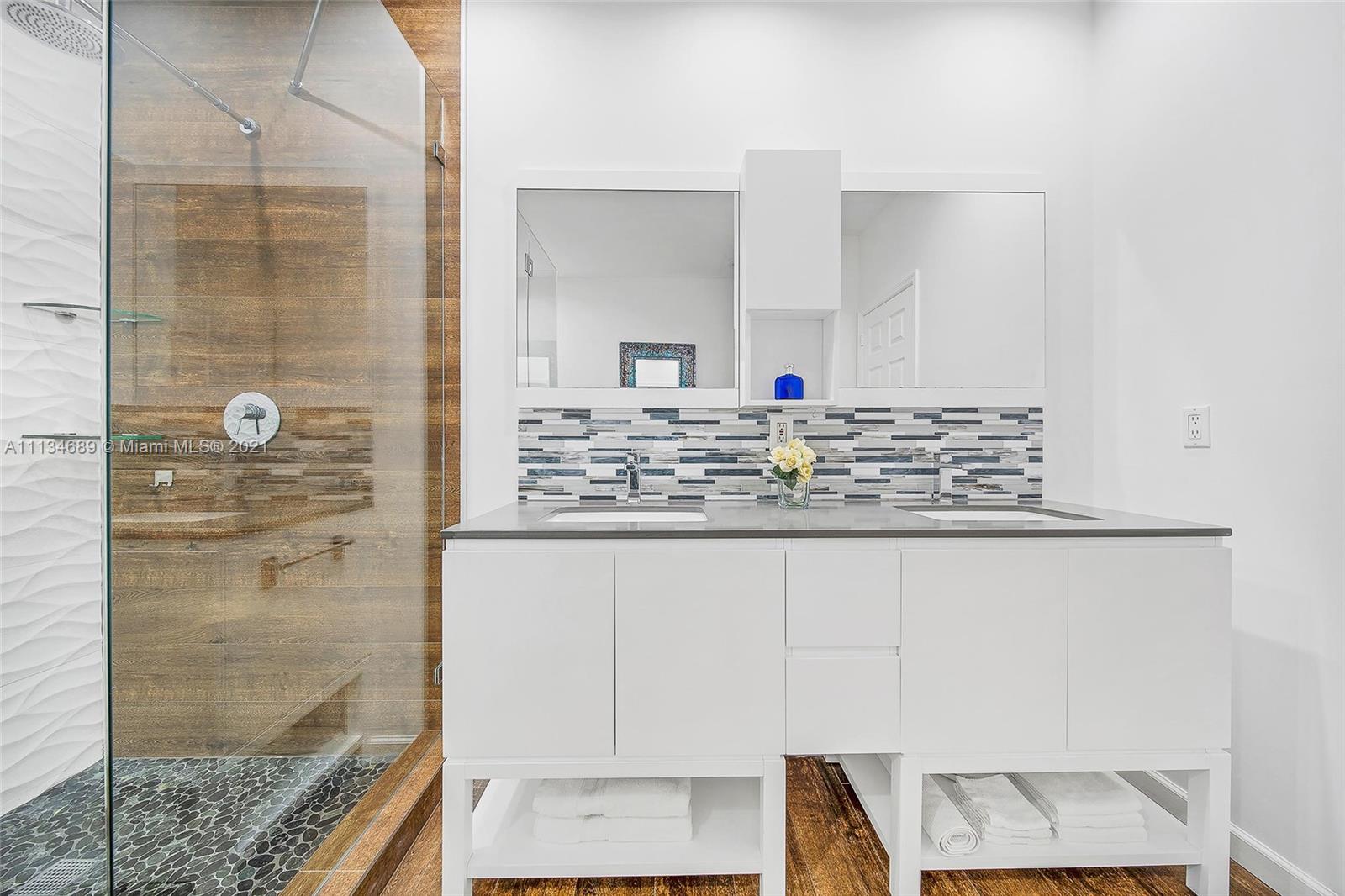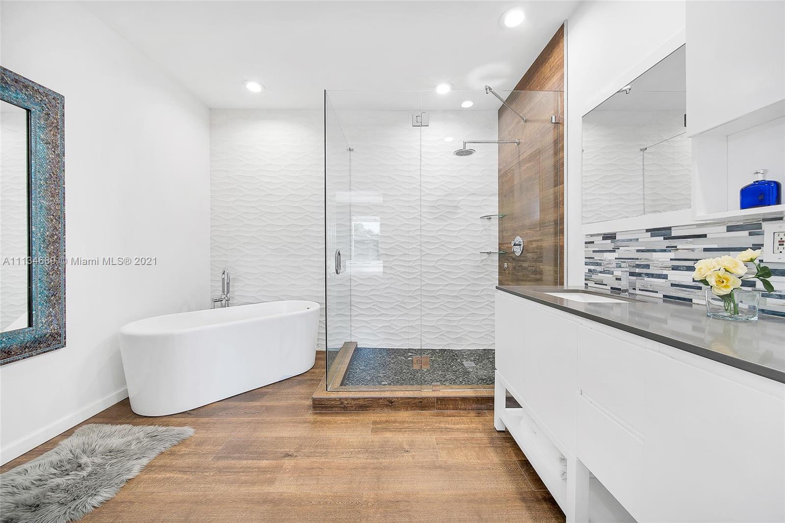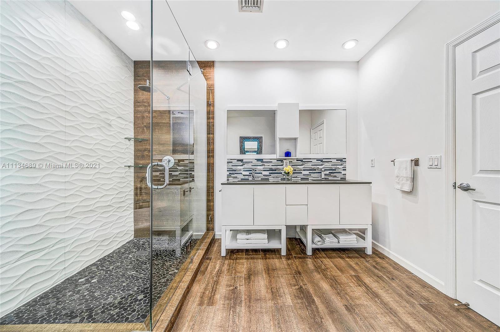 Enjoy carefree luxe living in this spacious updated two-story Lake Ridge corner townhome. Totally turnkey with volume ceilings, new designer stone veneer wall, bright open flow living, dining and eat-in kitchen with double French doors to the private fenced entertainment patio with plunge pool and beautiful Ipe wood deck—great to entertain or relax! Unwind in the large main suite retreat with vaulted ceilings, spa-like bath with soaking tub, large textured porcelain-walled shower, pebble stone floor, double vanity, and walk-in closet. Bonuses: spacious guest rooms, updated baths, large two car garage, impact windows-doors, newer washer-dryer, and updated appliances. All in a boutique community in a fantastic Lake Ridge location close to the beach, Galleria, Sunrise shops and restaurants.
