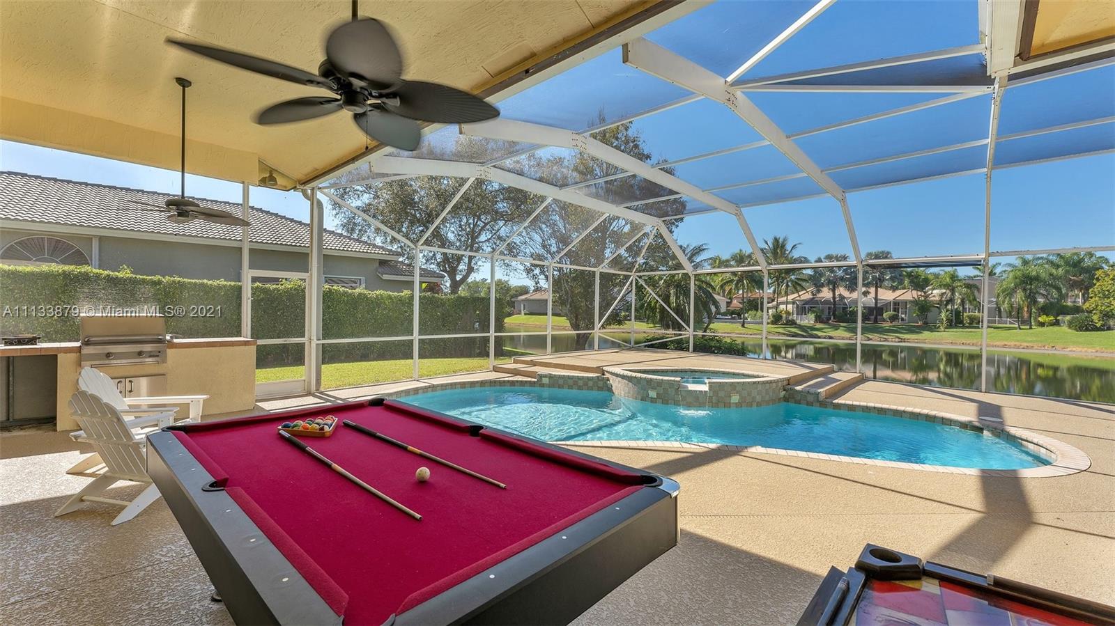 Amazing Modern 5/3 Single family home with enclosed pool in the backyard facing expansive lake view with beautiful sunsets. This home features: Newly renovated marble floors, formal living and dining room areas, open kitchen with stainless steel appliances and large family room for the social hosting, oversized screened-in pool with hot tub, built in BBQ grill, split bedroom plan, and complete hurricane shutter package. Community features include: convenient quick access to all highways, 24 hour security, A-Rated schools & tennis courts. Very close and minute away from Terramar Park and 6 Acre Wood Park.