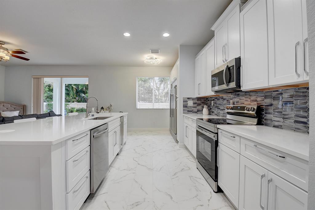 Absolutely the home you've been waiting for! Outstanding gem updated in every corner. Open contemporary floorplan with a kitchen made for the chef in you! All new Samsung appliances and FORNO European industrial refrigerator perfect for family feasts!! Massive quartz island and designer touches make this home something to brag about. Extra-large downstairs bedroom and full bath ideal for the in-laws or visitors. Upstairs offers a jumbo master bedroom with new wet bathroom featuring claw and foot tub and rain-shower. Four super-sized additional bedrooms on 2nd floor, (one converted to office/den) professionally designed to impress the entire family. Extended backyard with complete privacy ready for your pool oasis. No washer/dryer!