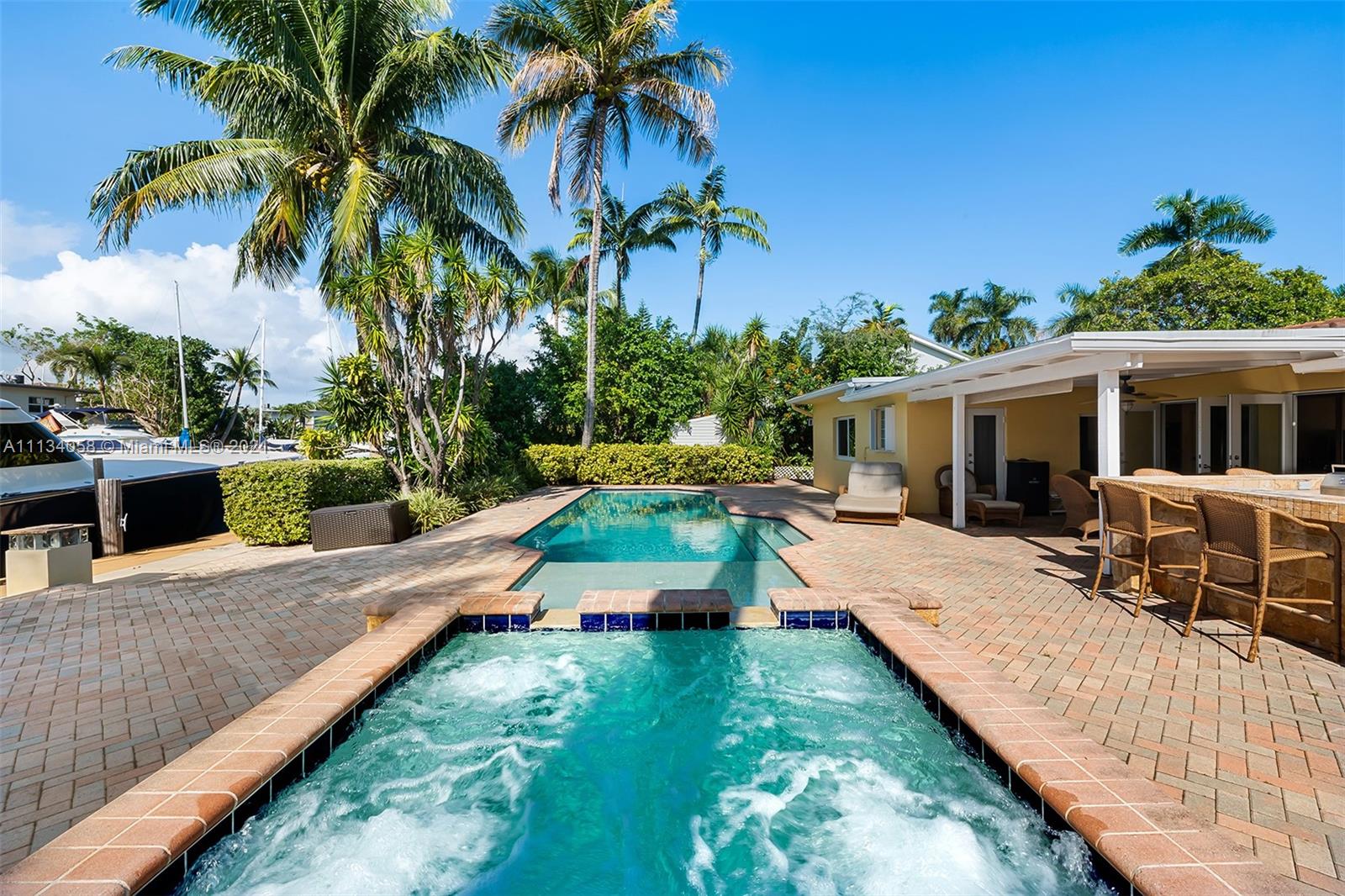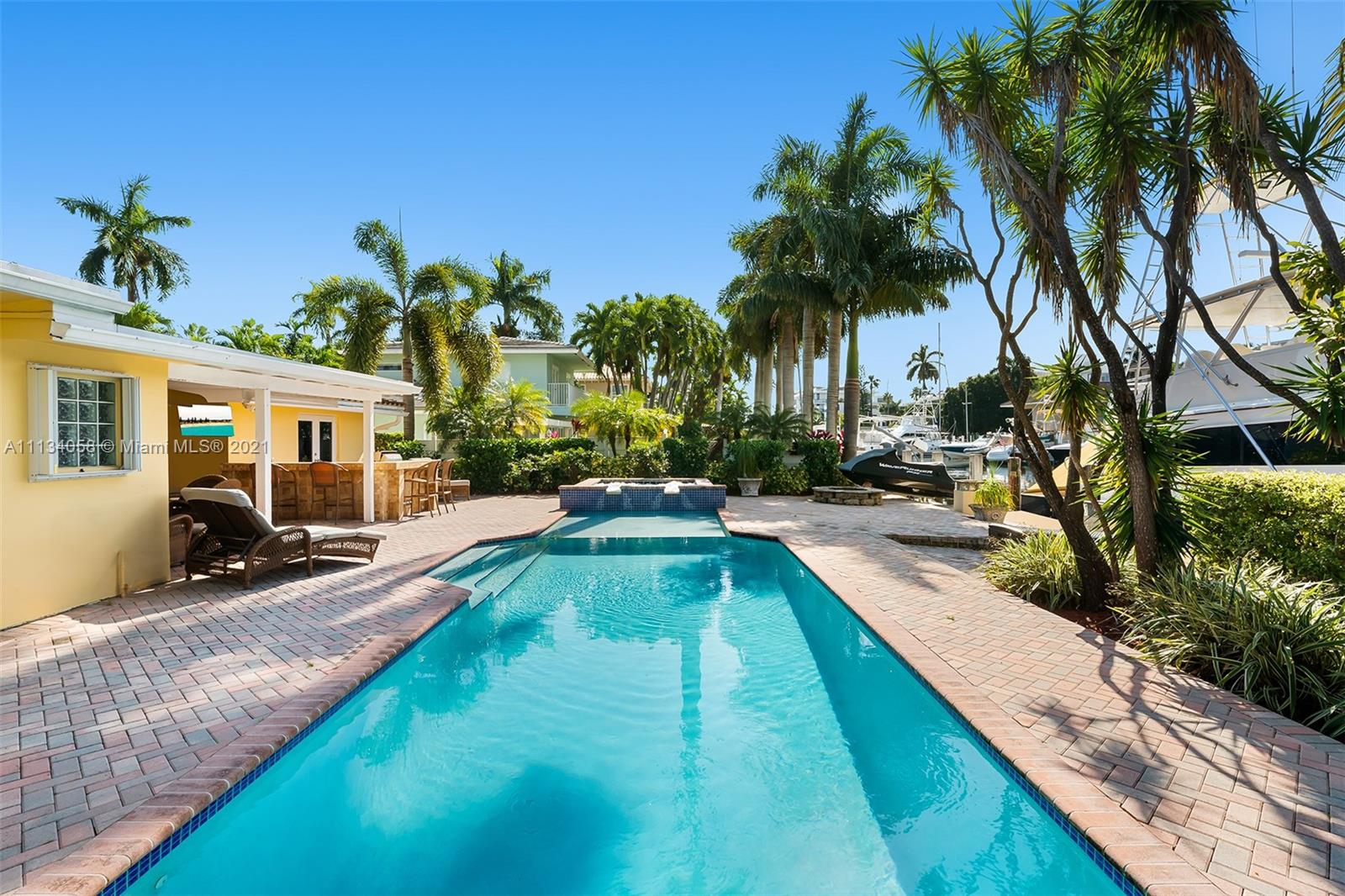 Love where you live in this waterfront midcentury ranch located within the luxurious Las Olas Isles. A widened street, higher elevation, and buried power lines all make this location rare. Plenty of options to reside, vacation, renovate, rent out, or build new with dockage for a 65 foot yacht. No fixed bridges, deep water, and quick ocean access with one-mile proximity to the beach, shops, and fine dining. The home currently has a private courtyard entry, split bedrooms, open living/dining area, pool, jacuzzi, and flow through views.