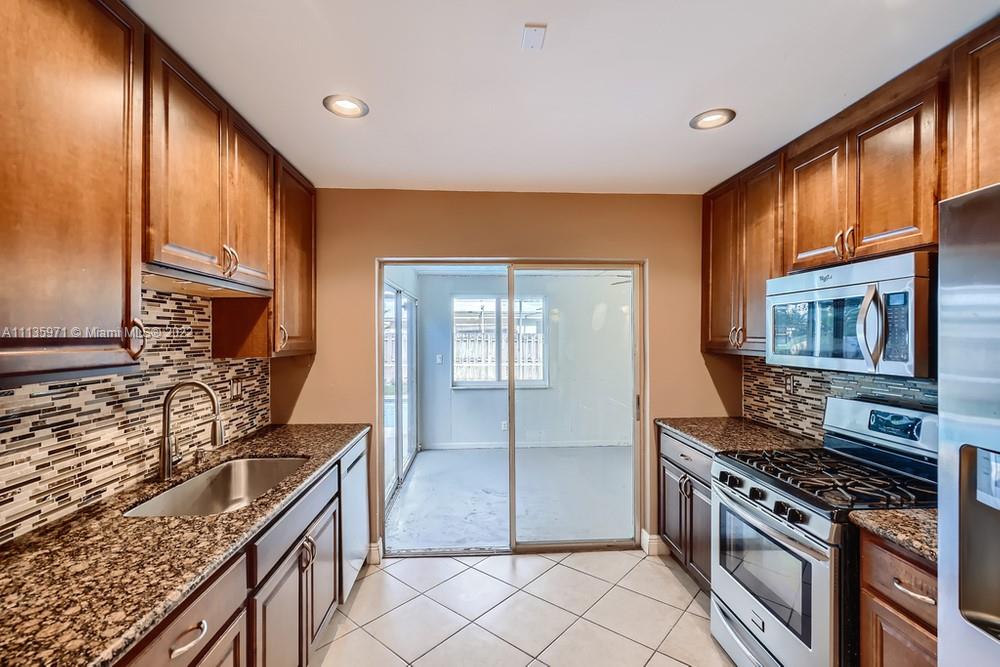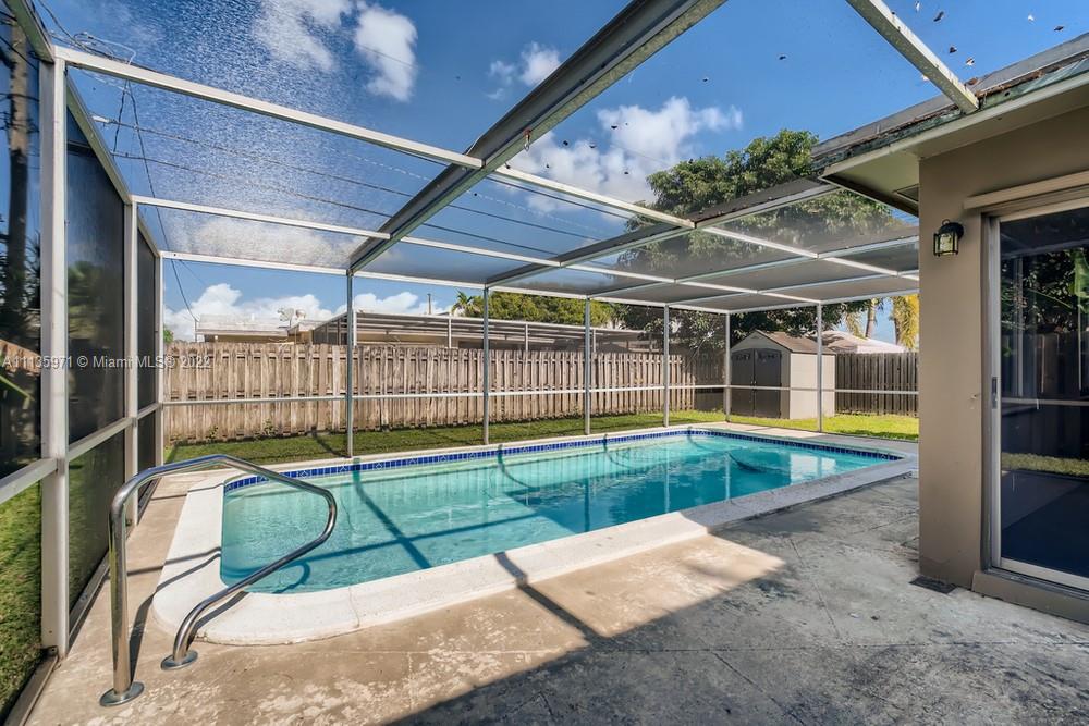 Get ready to fall in love with this 2 bedroom, 2 bathroom home in the heart of Sunrise! A spacious living room and dining area will greet you as you enter the home, perfect for entertaining. Off the dining area, you will be impressed with the beautiful kitchen equipped with granite countertops, wood cabinetry, and matching stainless steel appliances. The primary bedroom offers sleek flooring, generous space, and an en suite bathroom with a custom tiled shower. Be excited to bring the entertaining to the fenced-in backyard that completes the home with a patio and in-ground pool. This wonderful home is just minutes from several shops, eateries, and easy access to several highways!