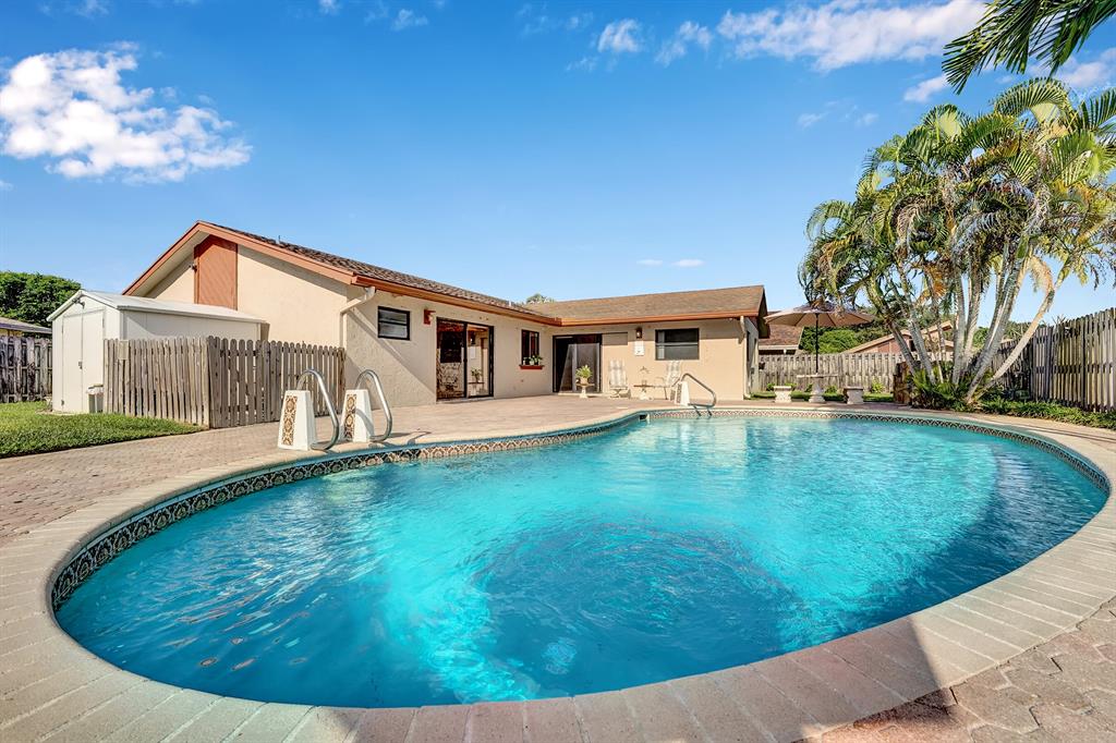 Beautiful Pool Home in Boca Raton! Situated on a cul-de-sac lot in the desirable community of Amberwoods, this 4BR/2BA property stuns with an expansive living room, tons of natural light, and a new kitchen (2020) featuring stainless-steel appliances, granite counter tops, white shaker cabinetry, and an induction range. Entertain guests in the fenced backyard, which has a pool w/kiddie fence and a greenspace. Rest in the updated primary bedroom with soft carpet and a remodeled en suite (2016). Other features: 2-car garage, laundry area, low HOA, 3 living spaces, updated guest bathroom (2016), knockdown ceilings, newer A/C (2016), newer hot water heater (2017), washer/dryer (2014), windows-hurricane protected, steps from worship, near shopping, and more! Come See Today!
