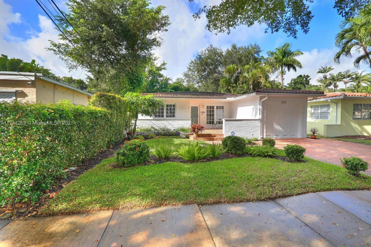Charming home on a quiet, tree-lined North Gables street. Minutes to world-class shopping, dining & entertainment in downtown Coral Gables. Light-filled living spaces with beautiful hardwood flooring throughout. Updates include impact windows & doors, both bathrooms & AC system. New, modern-style kitchen features white cabinetry, stone countertops & breakfast bar. Enjoy outdoor living in the private back yard with lush tropical foliage & ample room to add a pool. One-car garage. Close to Coconut Grove & Miami International Airport.