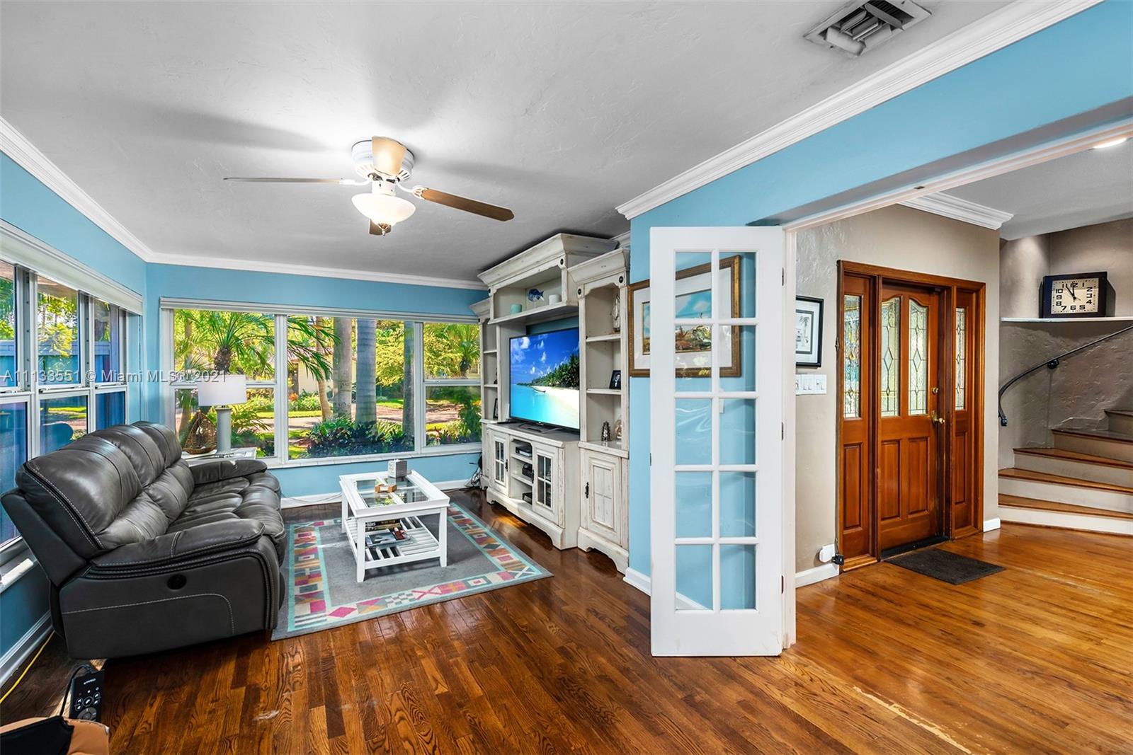 Hollywood Lakes Two-story Tropical Oasis. Warm and inviting sunlit interior with lots of character and charm featuring large family room, dining room and entertainer’s kitchen, lots of entertainment spaces including a Florida sunroom and living room making for great family living. Large fenced and private backyard built to entertain with large pool and mature & lush landscaping. Impact windows and French doors throughout. Home exemplifies elegance and comfort. Features 5 Bedrooms, 3.5 Baths (Two Bedrooms on First Floor). Convenient Rear alley access. Situated in the heart of Hollywood, 5 minutes to the beach, shops, dining/restaurants.