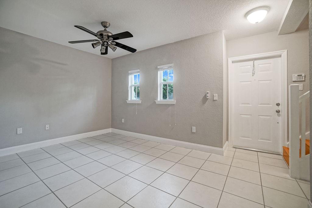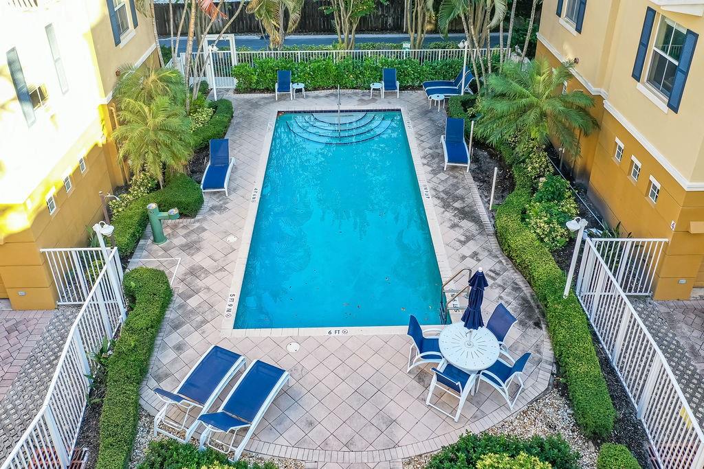The Ellington in Victoria Park is in the heart of it all! This four level townhome offers one of the best values in Victoria Park. The 1st floor features a 2 car garage, office/den/guest room with ensuite bath. The entire home has been freshly painted and new carpeting installed on the 3rd level. The 2nd level offers volume ceilings, tile flooring, an open living/dining/kitchen area with great natural light to the east. Enjoy a GAS range/oven in the kitchen with stainless steel appliances and fresh white cabinetry. Dual primary bedrooms encompass the 3rd level with ensuite baths. The large rooftop terrace offers sweeping views from east to west! The fee simple townhome offers hurricane impact protection, a gas tankless water heater, a fabulous heated community pool, and gated entry!