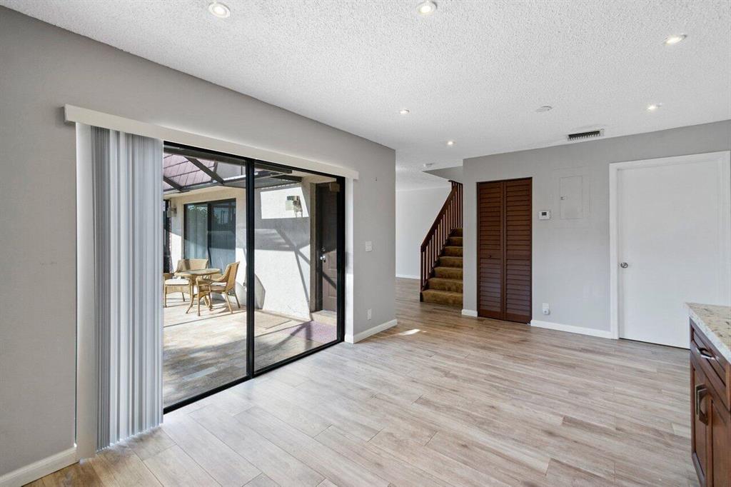 Spacious townhome in popular Courtyards at Boca. 2 bedroom with excellent interior location. Lake view from kitchen window. Beautiful newer kitchen with granite countertops and wood cabinets. Wood look tile floor. Private and large fenced courtyard patio with tumbled marble deck perfect for entertaining. Brand new AC unit. Great central Boca Raton location. Easy access to I-95 and Florida Turnpike. Top school district. Maintenance includes basic cable, common areas, roof maintenance, exterior painting and building insurance.