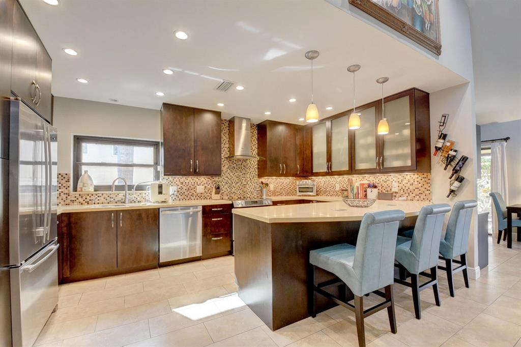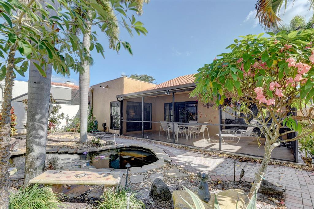 Welcome to Paradise! You CAN Have It All! This spacious & open home is one of a kind, remodeled from top to bottom! Comfortable & elegant, w/high ceilings & designer touches. This kitchen is perfect for entertaining, w/warm wood & glass cabinets, custom backsplash & lively quartz countertops that invite you to sit on a barstool. Your ample master en-suite will be your new retreat, w/master bath epitomizing luxury, w/xtra large shower, spa tub, & 2 built-out walk-in closets. The 2nd bedroom boasts a private bath & walk-in closet. With a beautiful built-in office, a separate dining room, & expansive family room, there is plenty of room to spread out. Relax in your screened lanai and gaze at your private outdoor paradise, complete w/koi pond! Best location in Boca, make Pradera Your New Home!