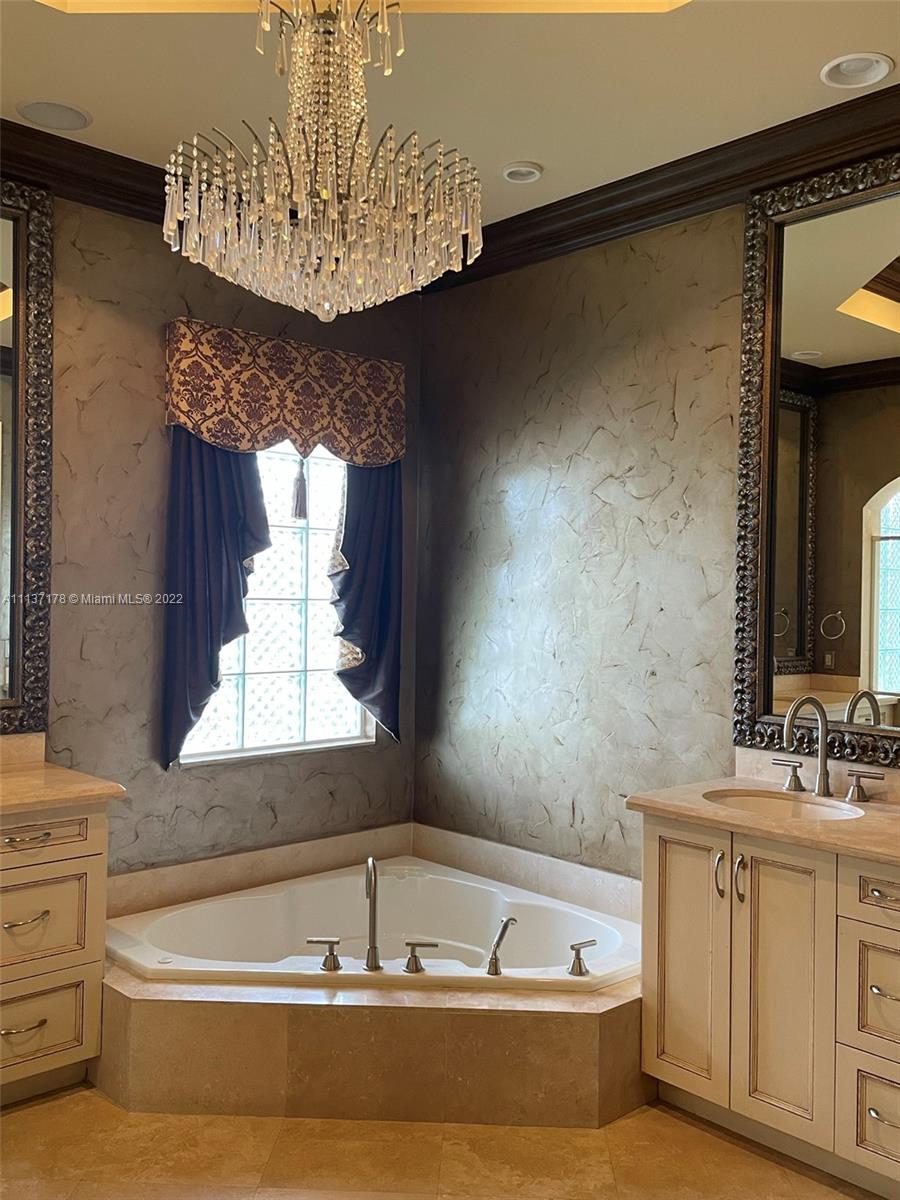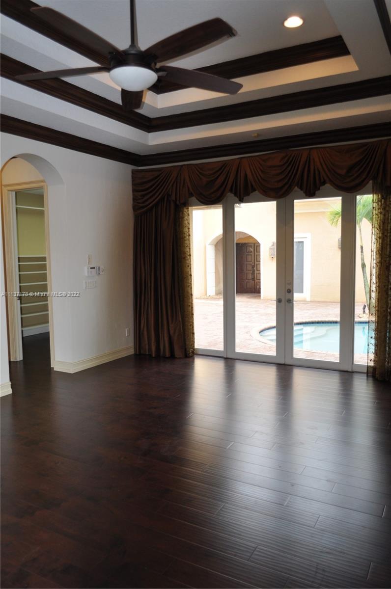 Beautiful "expanded" Courtyard Design House in prestigious Hawks Landing. 5 full size Bedrooms + Loft-Den + 4.5 Bathrooms. Independent, detached Cabana Bedroom with Bathroom (casita) which could be used for Guest-Visitors Quaters or Office isolated from the main house. Very Private Courtyard with Pool and Jacuzzi. 3 Car Garage and Circular Drive Way. All 3 AC units are brand new. Marble + Wood Flooring. Next to American Heritage School.