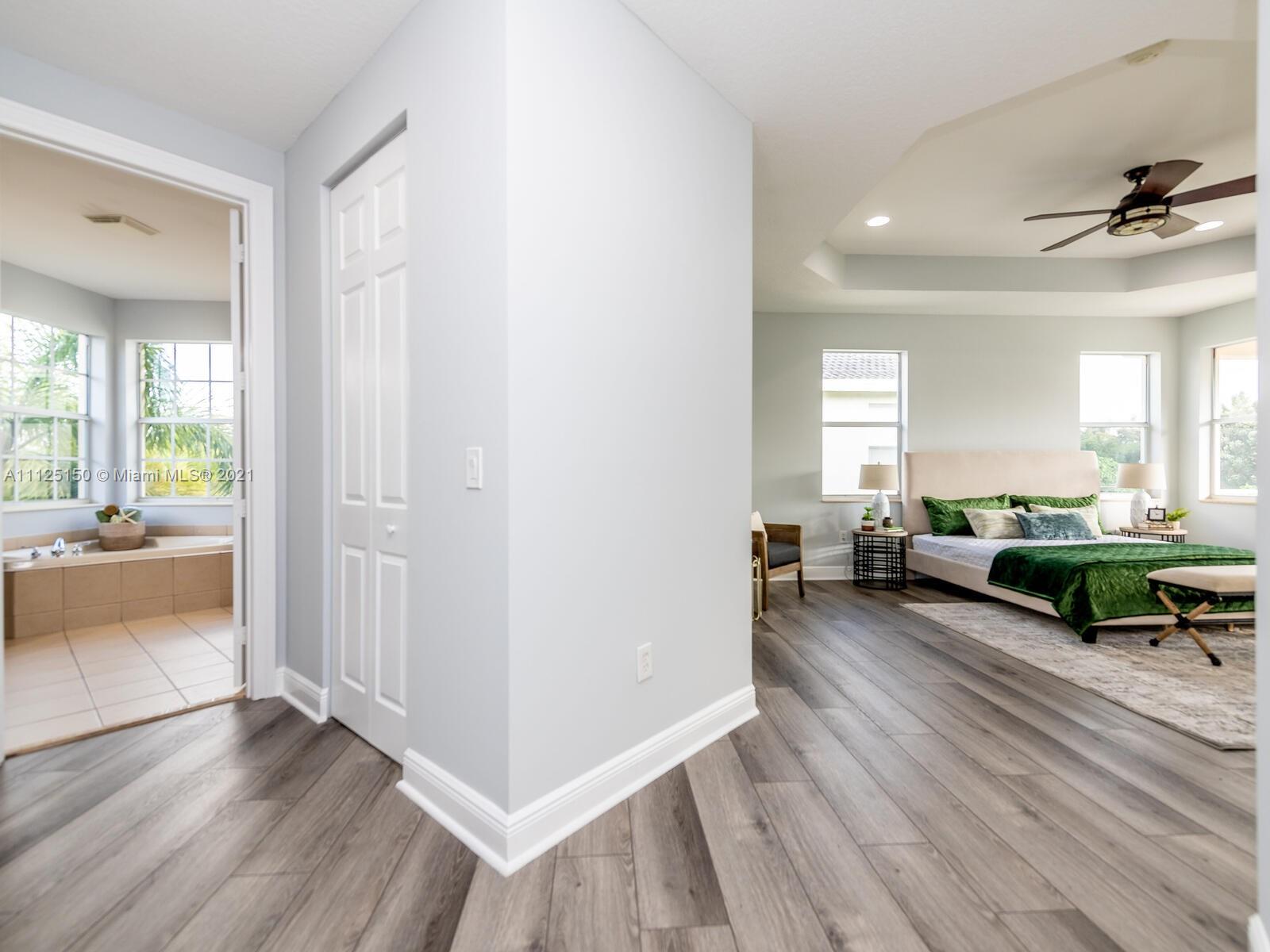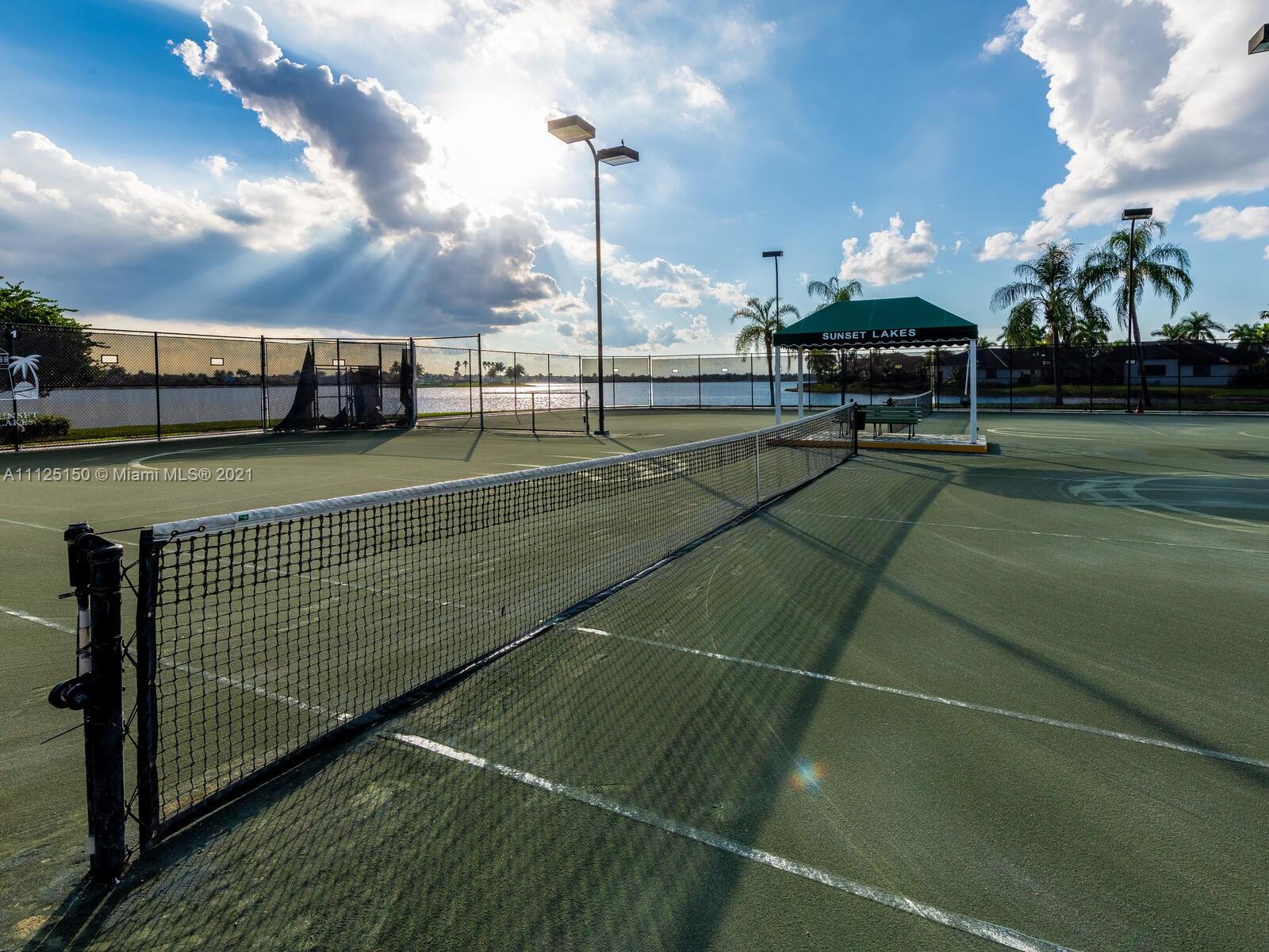 Elegant estate brimming with 3,488 sqft of luxurious interiors in the coveted community of Sunset Lakes offering stunning water views all around you, and resort style amenities. Upon entering, you will find a stately office with rich built-in shelving, and a soaring open living room with floor to ceiling windows and views of the private backyard. A gourmet kitchen opens seamlessly to the great room with 2-story ceilings and a cozy sun filled breakfast nook all which makes for the perfect setting to host large gatherings with sprawling granite countertops, stainless steel appliances including a double wall oven, breakfast bar that comfortably seats 4 and much more. Enjoy all the luxuries of spending time on the large paver patio that surrounds a crystal blue in-ground pool.