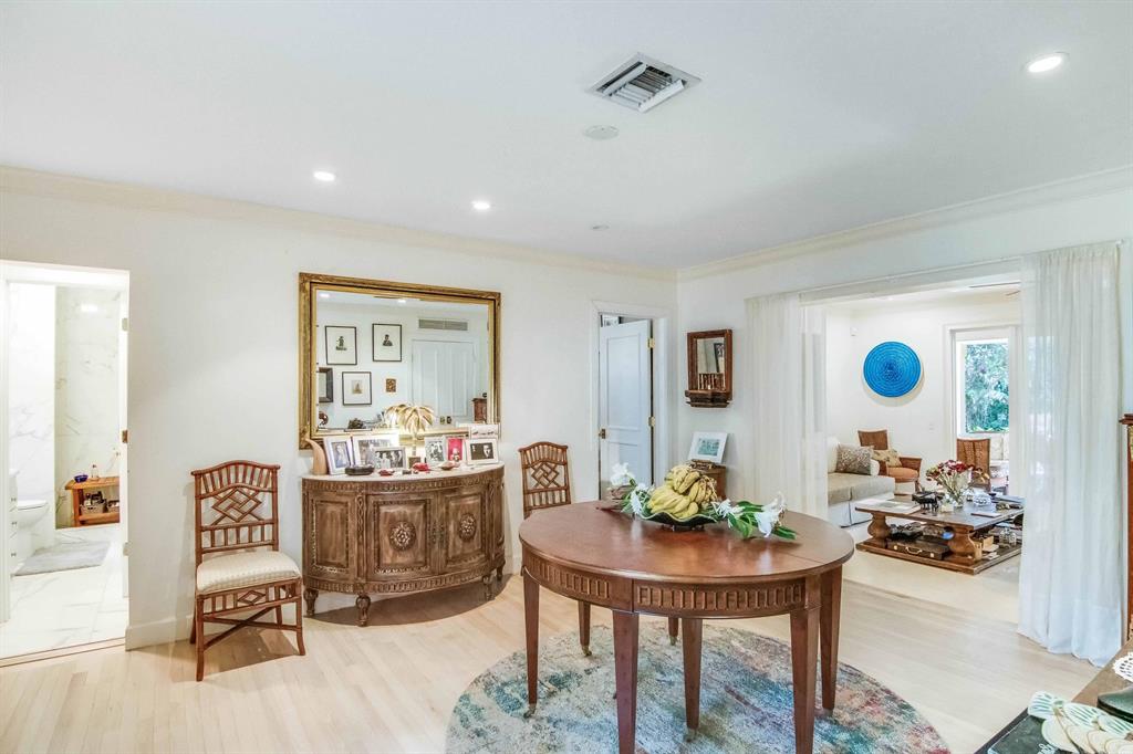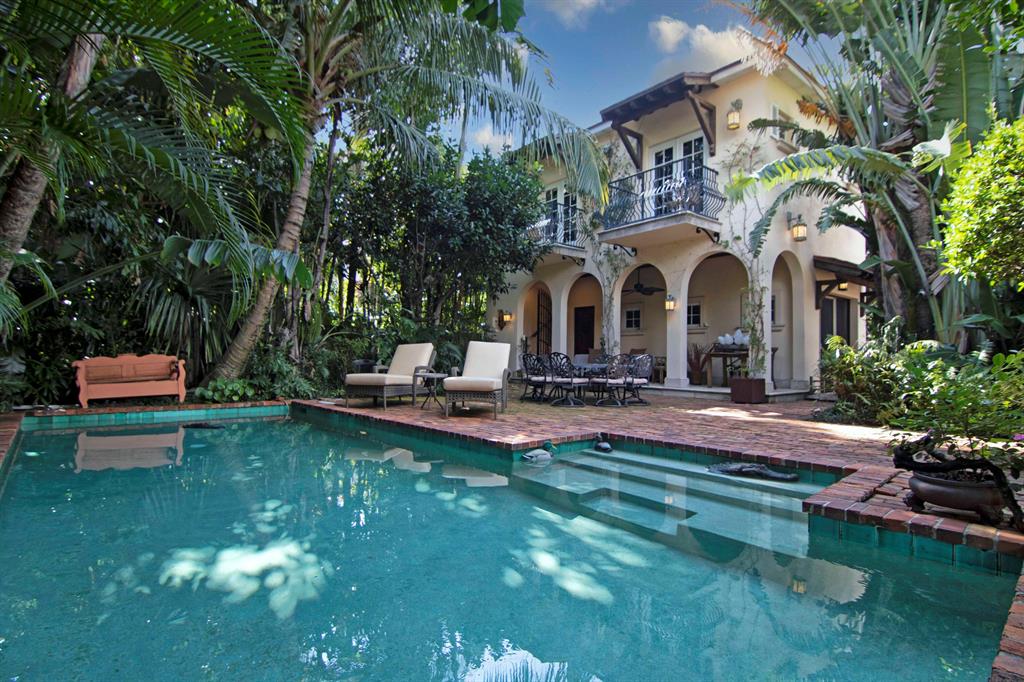 Located in the heart of West Palm's prestigious El Cid, this lake block property is truly an Oasis. The main house provides 2 bedrooms and 2 baths and a beautiful gourmet chef's kitchen with a Viking gas range. The spacious living and family rooms both showcase through French doors, the wonderful covered outdoor living and fabulous 'resort style' pool setting bordered by amazing mature landscaping and one of the nicest two story guest houses in all of El Cid! The guest house has 2 bedrooms, 1 bath and a 1 car garage. All the windows and doors are impact rated.