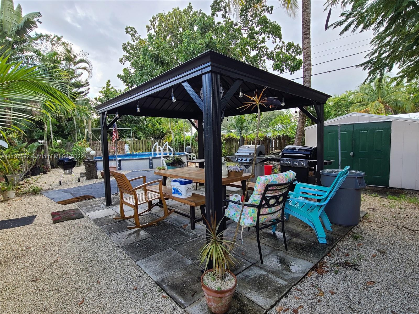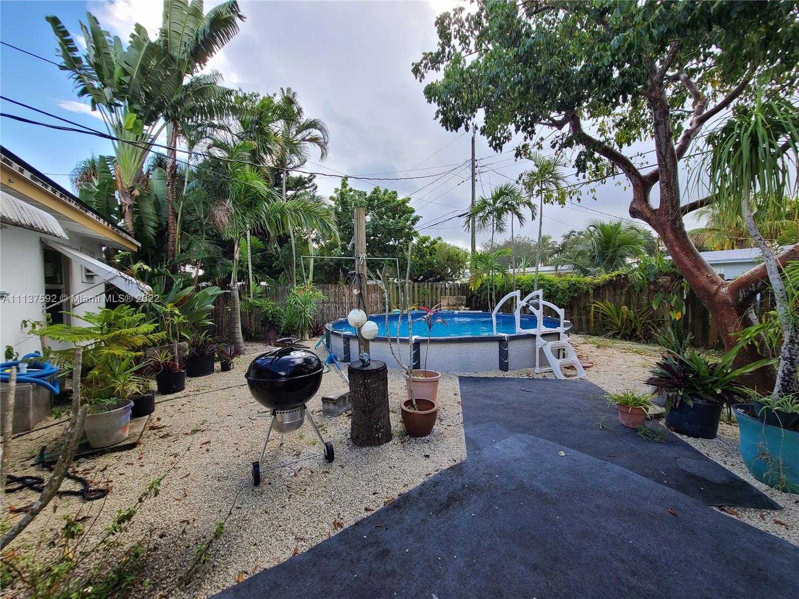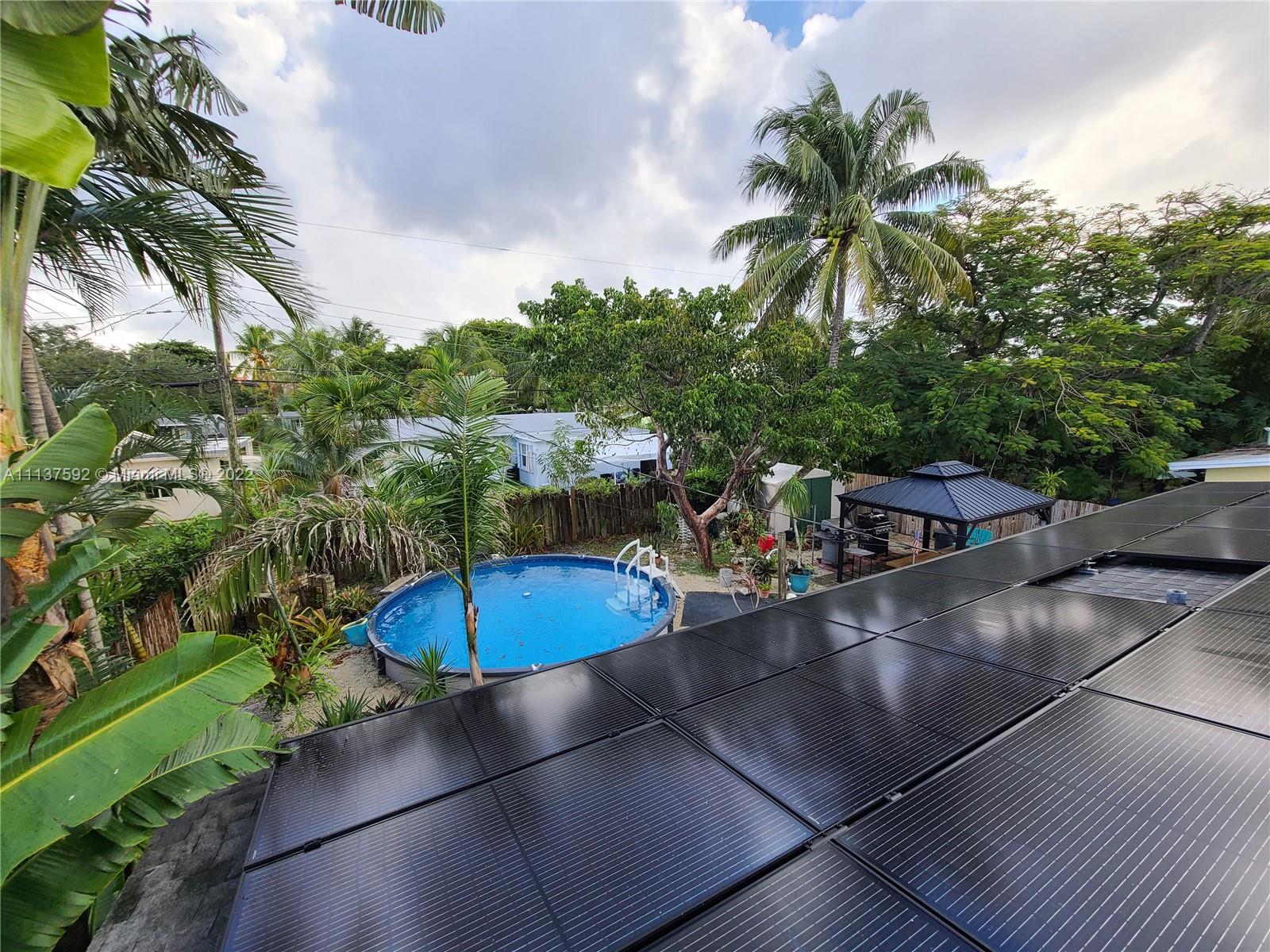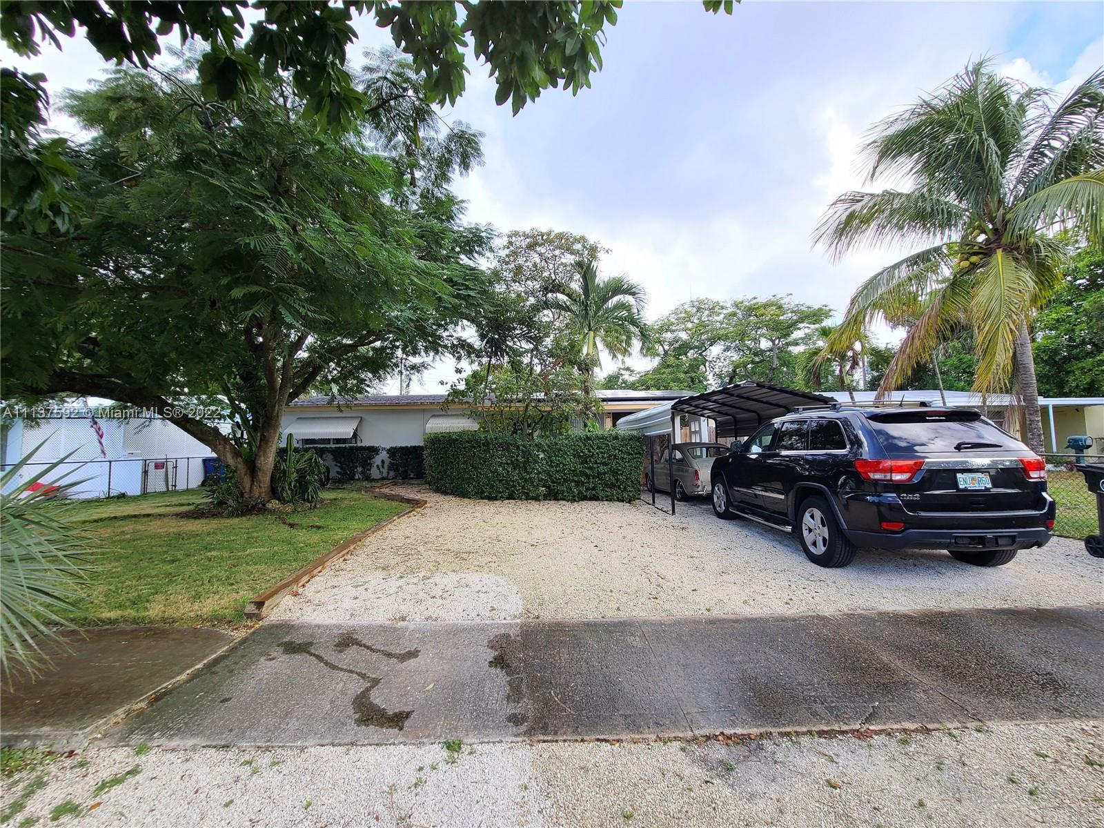 Great starter home or vacation rental, AirBnB! Quaint 3/2 with open beam vaulted ceilings. Large fenced yard complete w/above ground pool (partially under ground), gazebo, shed, fire pit to enjoy. New impact windows & doors. Both bathrooms have been remodeled. House features solar panels installed in 2021. Kitchen features stainless steel appliances. Plenty of parking including a new metal carport awning. Ideal location just mins from Ft Lauderdale beach & downtown, I95, 595, Turnpike. New floors in living/dining/kitchen/hall/bathrooms. 1 bedroom has terrazzo, 2 have carpet panels over terrazzo. Dimensional shingle roof was done in 2014. City water/sewer. New mini split a/c in main living area. Call to see & make this yours! (Tax roll sq footage is slightly smaller than actual footage)