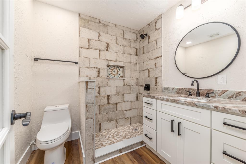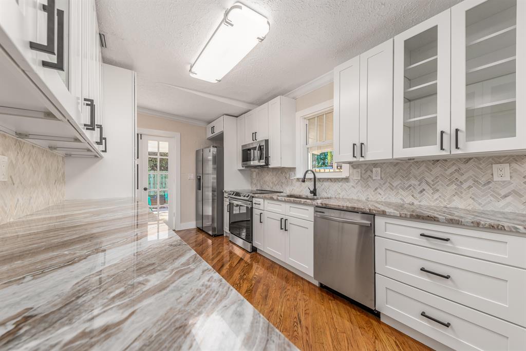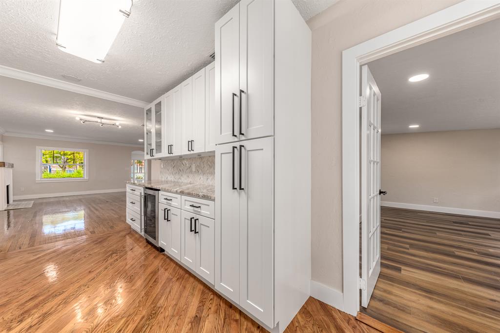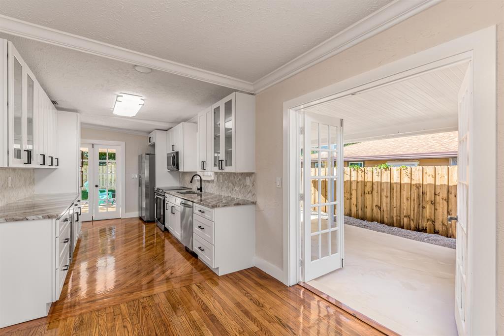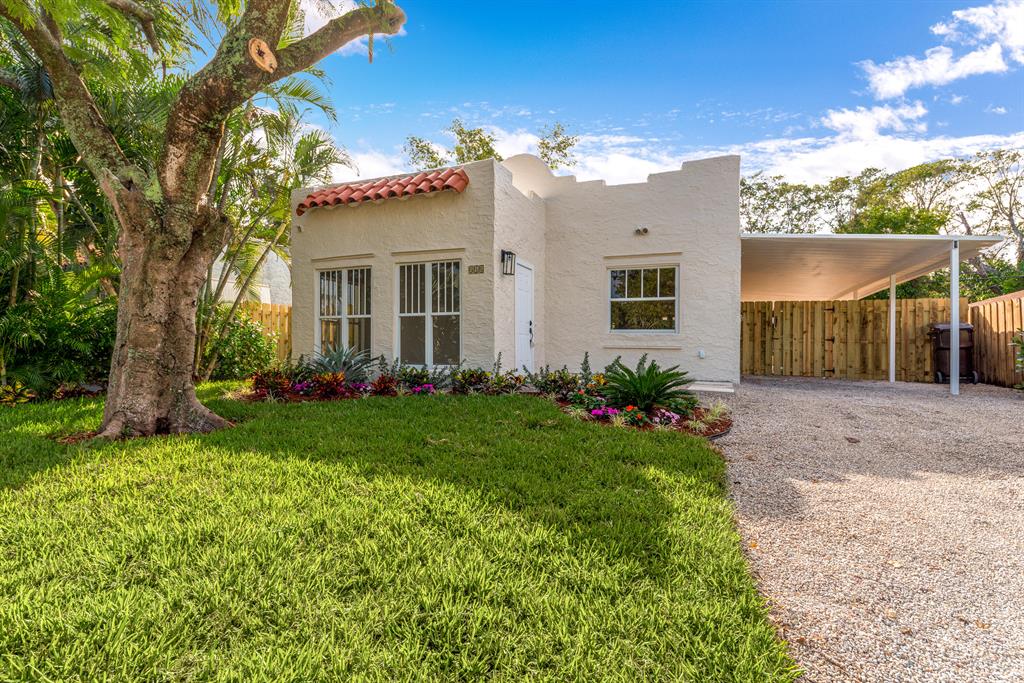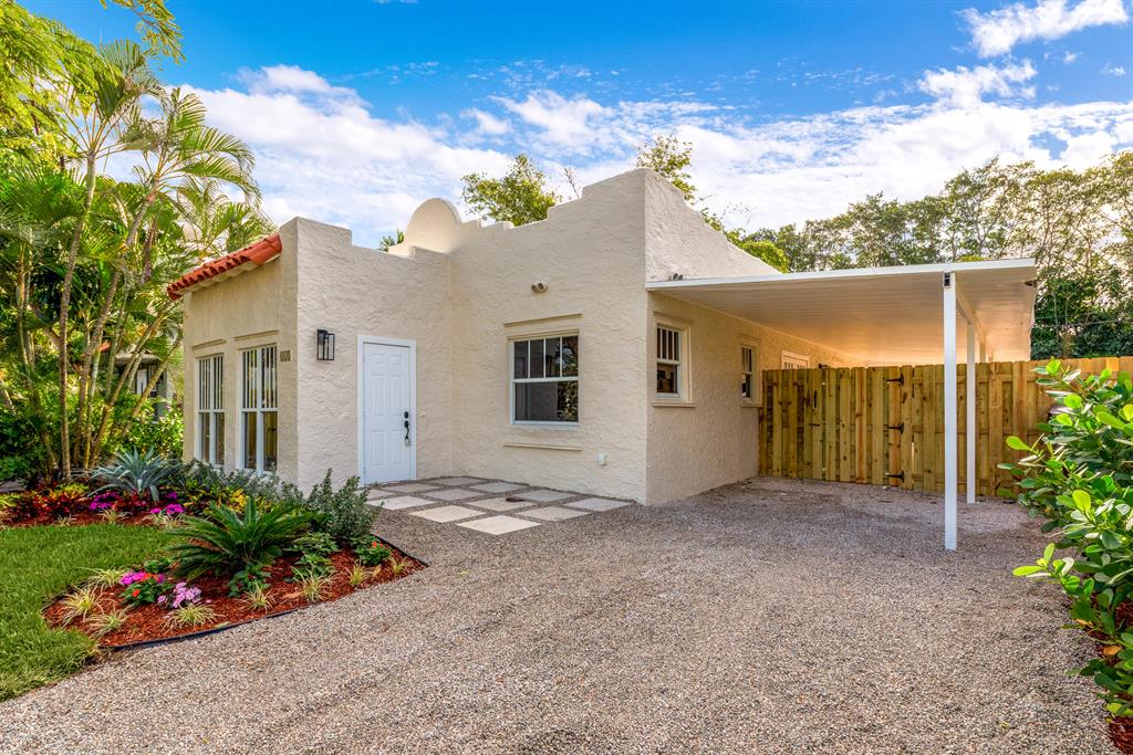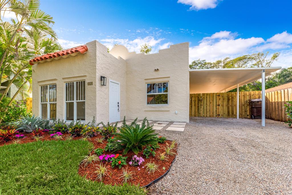 West Palm 1925 Spanish Stunner! This 3bed/2 bath home has been beautifully renovated with a touch of modern yet keeping its original charm. Brand new kitchen with custom 42'' soft close wood cabinets, brand new SS appliances, wine cooler, granite counter-tops, gorgeous refinished Dade county pine floors, new bathrooms with custom Spanish tile, new custom wood vanities w granite, new AC (2020) New WH (19) new plumbing fixtures, new light fixtures inside & out, freshly painted inside & out, new decora switched & outlets, new modern baseboards & door casing as well as elegant crown molding, decorative fireplace, French doors, large covered patio, professional landscaping w fresh new sod & tropical plants entire property, fully functional irrigation system and new fully fenced backyard.