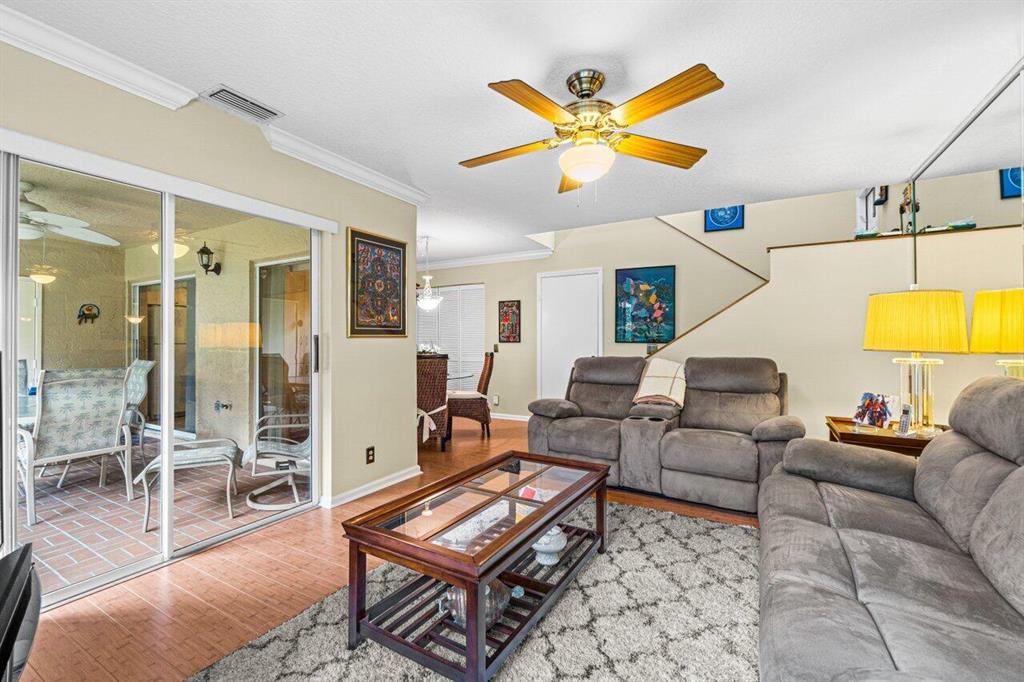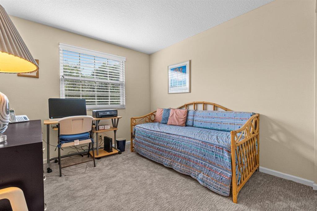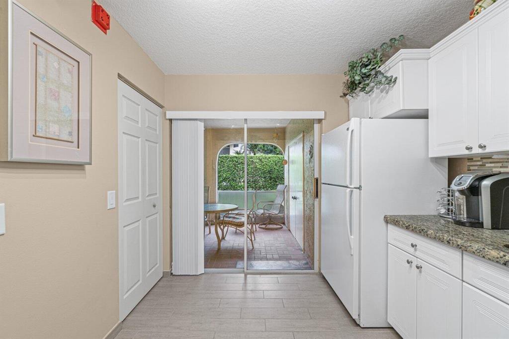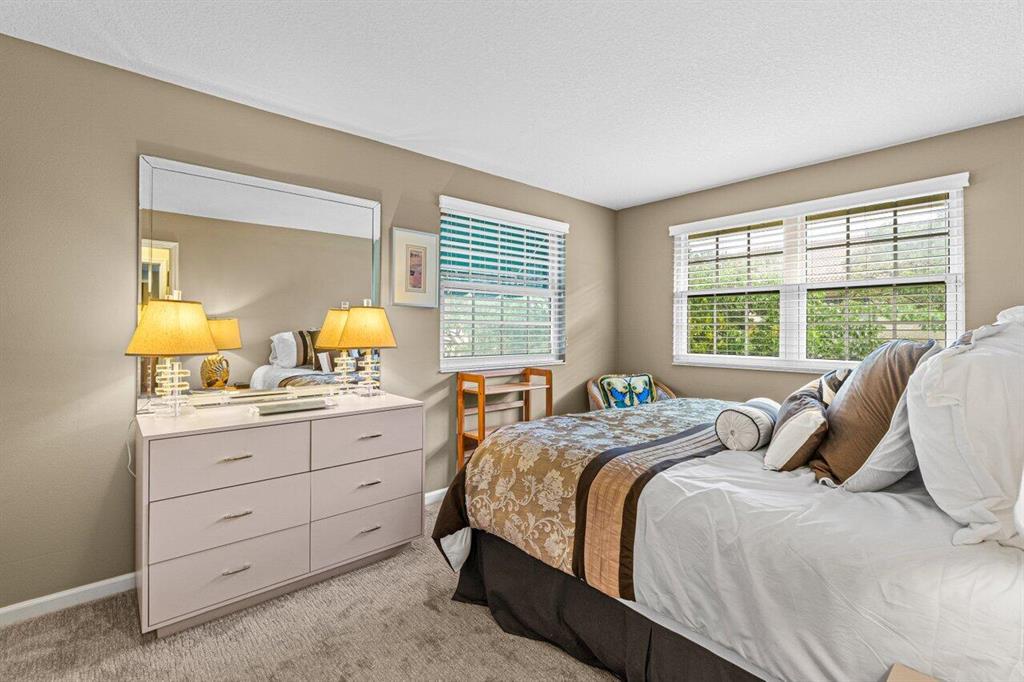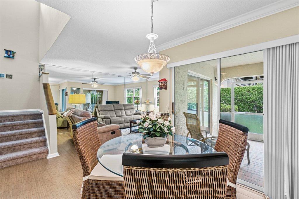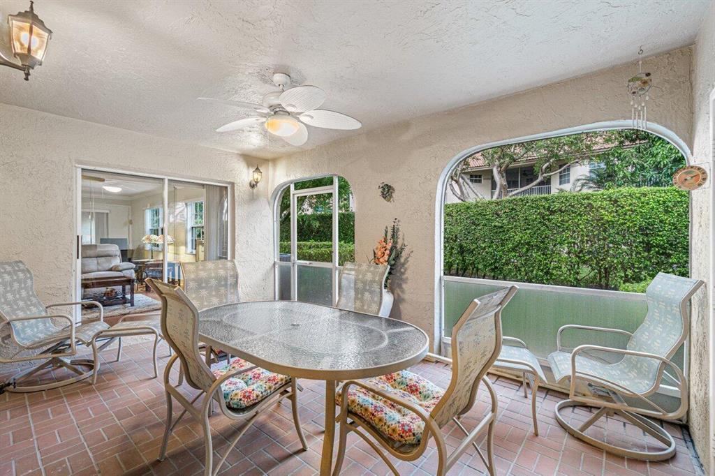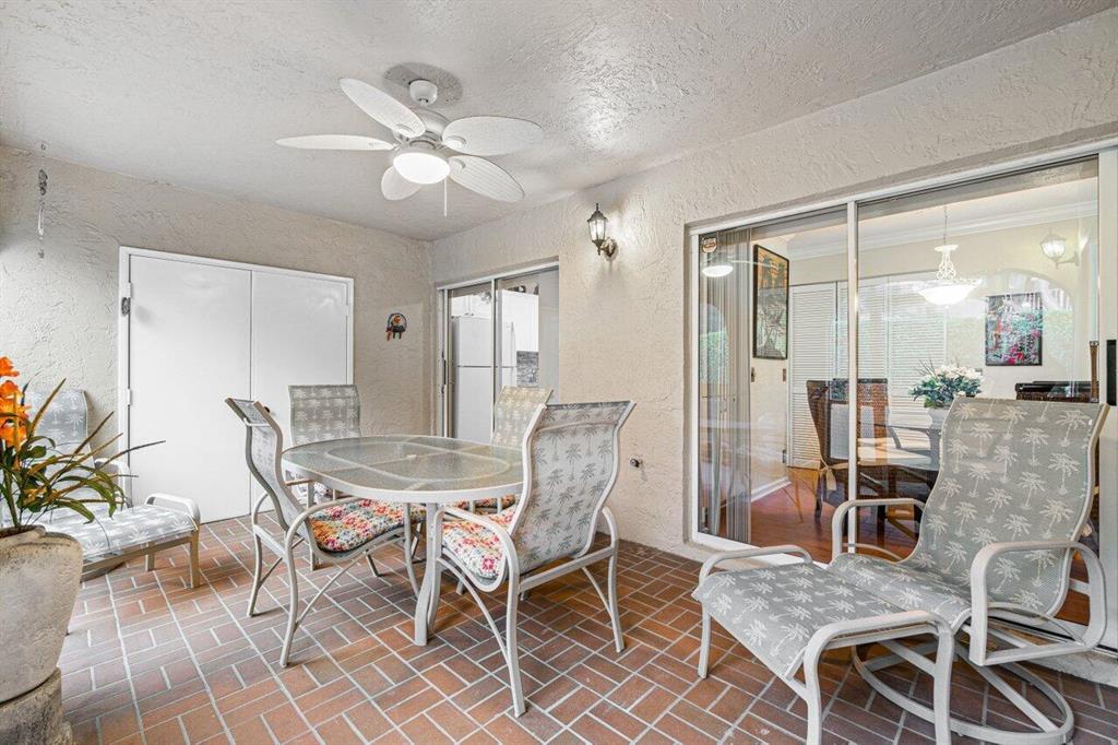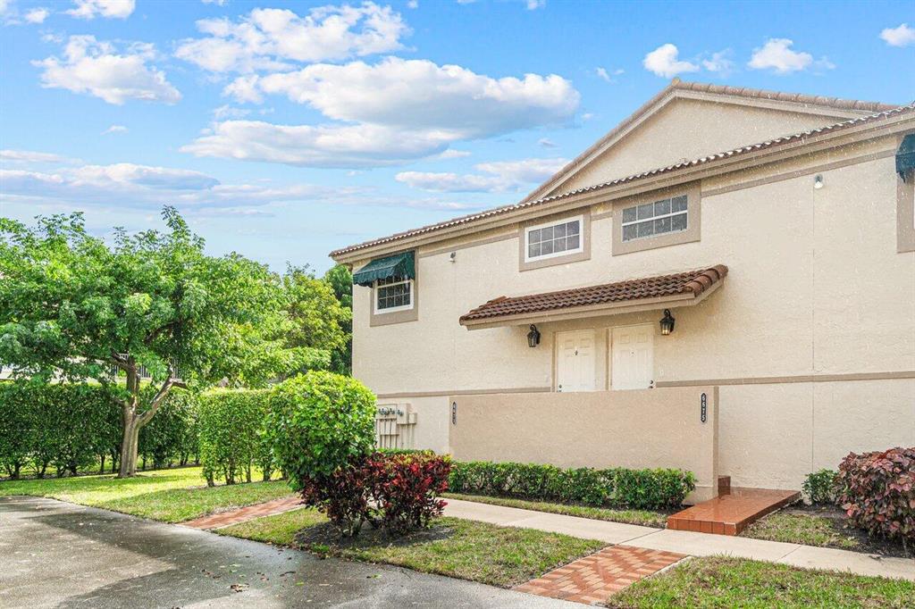 Rarely available 3 bedroom town home in the Plum at Boca Pointe! This is a fully FURNISHED turnkey pristine warm and welcoming end corner home with 2 and a half baths, impact windows, white kitchen, built in bar, updated baths and the primary bedroom has a large walk in closet. Living space has laminate natural color floors and upstairs is newer high end carpet. There is a very large screened in covered patio with private grass area behind to enjoy the Florida weather and a huge bonus of extra storage outside in an enclosed space. The washer/dryer is inside and has an electric water heater. Very well maintained model feel home. Fantastic Community pool nearby and 1 assigned parking spot with guest parking near. May rent out immediately 4 times per year. One pet up to 25 lbs is allowed.