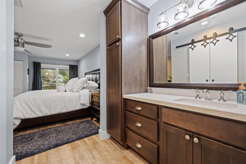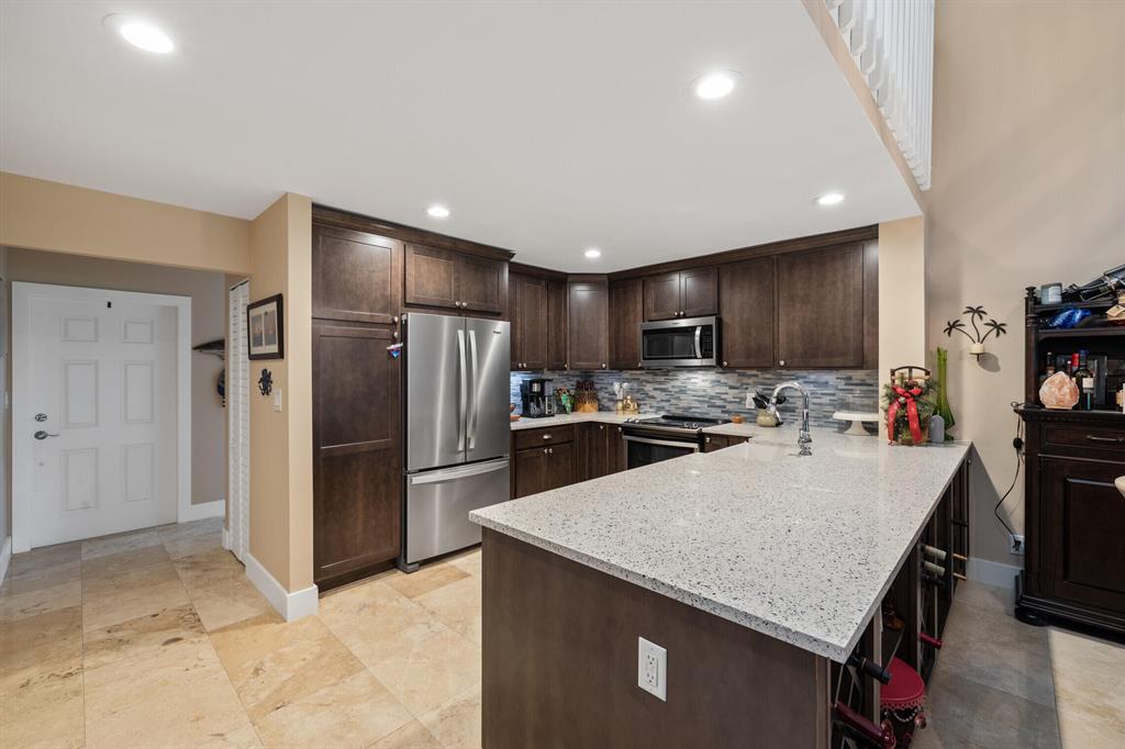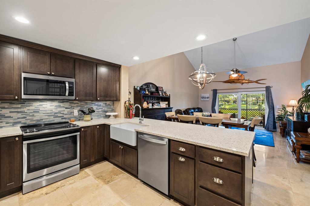 BREATHTAKING TOWNHOME IN HIGHLY DESIRED NEIGHBORHOOD IN BOCA! This townhome was completely renovated, without any expenses spared! The kitchen has beautiful custom cabinets, stainless steel appliances, and a huge Farm Sink. Open counter to dining room, that is perfect for entertaining and features shelving and wine storage! All new PGT impact Windows throughout the home. The high ceilings in the living area are accompanied with a skylight. All bedrooms have new wood tile. The living room, kitchen, and hallway have gorgeous Travertine tile. Master suite has his and hers closets with custom storage. The garage features new tile and can be converted into a 4th bedroom. Enjoy the lake view right from the comfort of your screened patio. A-RATED SCHOOLS. Low HOA! Come see this gem for yourself!