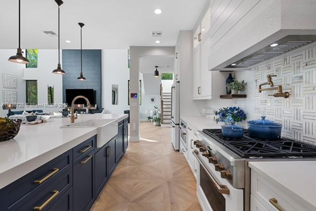 Beautiful turnkey home just steps from the sand, this new 4-bedroom, 4-bathroom home is perfect for year-round relaxation. The open concept main floor includes a dramatic 20-foot ceiling in the great room, a charming gourmet kitchen with brass accents, a welcoming dining room table, and sliding doors to the pool. The spacious primary bedroom is bright and inviting, with sliding glass doors to a balcony and a custom closet. The spa-like en suite bathroom features a double vanity and a serene, tiled wet room with a soaking tub and shower. Three other inviting bedrooms also offer en suite bathrooms. On a nicely landscaped corner lot just a block from the beach, the home comes fully furnished and professionally decorated.