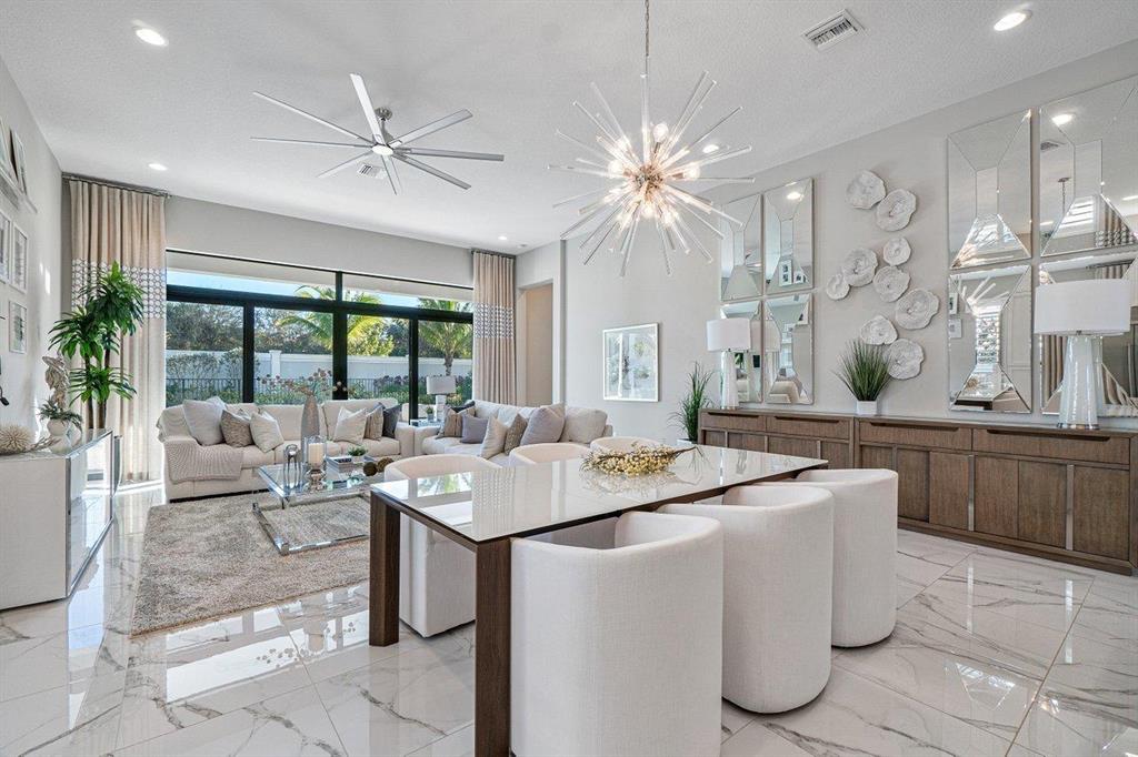 Contemporary Adriana with modern finishes, designer accents AND FURNISHINGS, POOL and SOUTH-facing backyard! This exquisite home features an open floor plan, gourmet kitchen with huge center island, first floor master suite, 3-car garage and beautiful custom window treatments and designer fixtures. Enjoy all Boca Bridges has to offer with a 27,000 sqft clubhouse complex that includes a restaurant with full service pool bar, game room, fitness center, tennis courts, pickleball, main pool, kids splash park and more!
