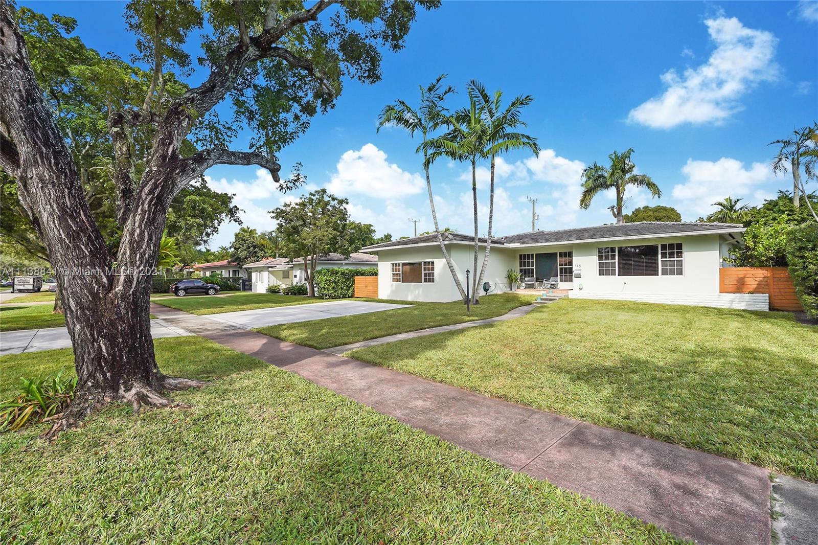 Charming 3 bedroom + den , 3 bathroom home on tree lined cul-de-sac in Miami Shores. Lots of windows and natural light. Open floor-plan with three living areas. Tile in the living spaces. Wood floors in the bedrooms. Master with ensuite bath. Converted garage with en-suite bath and private entrance. Additional bedroom and den share third bathroom. Lots of great updates throughout the house with plenty of closet space.