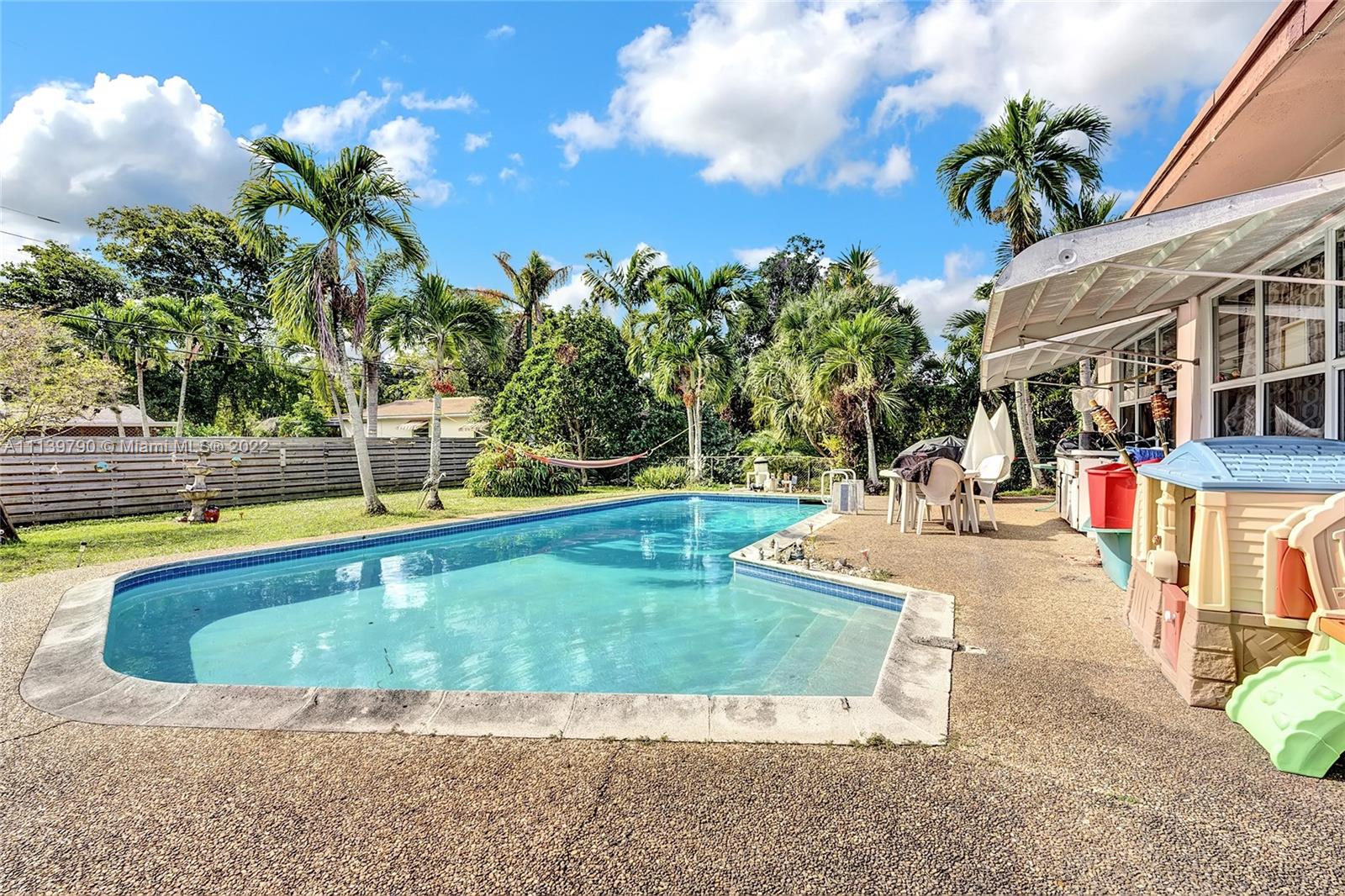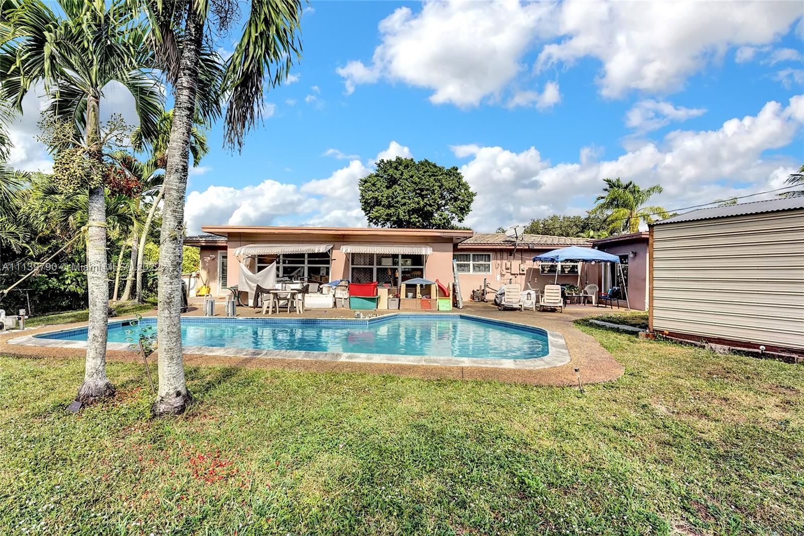 This elegant single family home sits on over 1/4 acre lot in the desirable city of Plantation in Country Club Estates. A circular driveway leads you to the front patio and entrance. Upon entrance, you are warmly greeted by terrazzo floors, wood accents and a floor plan seamlessly connecting the living room to the kitchen and two additional rooms leading to the inviting, sunny backyard. The kitchen is in the process of being remodeled to which the seller is offering for you to make it your own by giving a credit at closing. Adjacent to the living room, there’s an oversized master bedroom with a sitting area. The backyard has a refreshing pool, and oversized shed and provides plentiful space for gardening and entertaining. More photos coming soon!