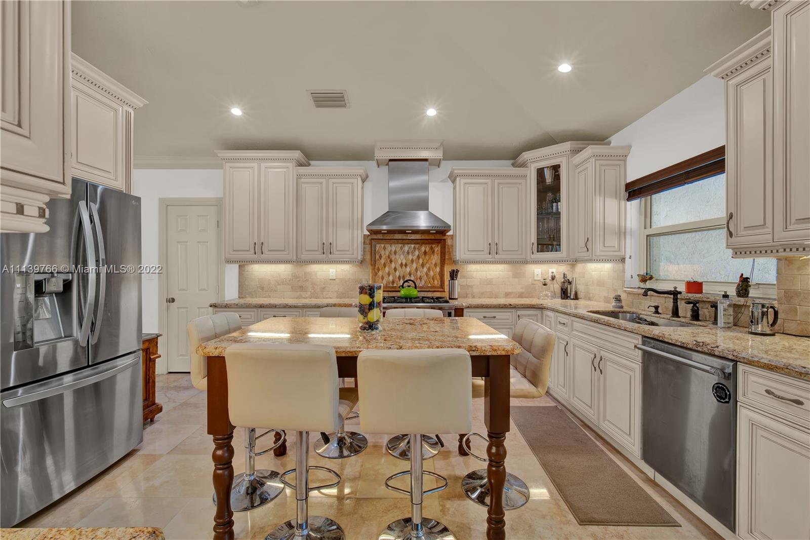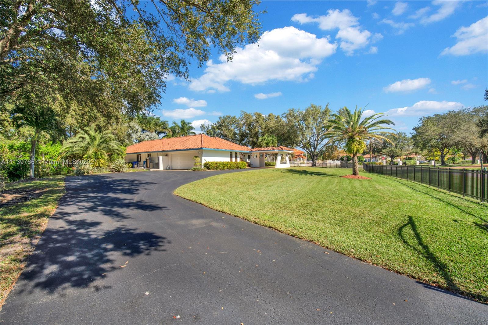 Welcome to this amazing corner lot home in the prestigious Ivanhoe Estates, equestrian and friendly town of Southwest Ranches, your own private Oasis! This elegant home features 5 beds, 4.5 baths. Fabulous floor plan perfect for entertaining with a romantic fireplace. Marble floors throughout main area and wood floors in bedrooms. Large Kitchen, tons of cabinets, island, granite counters and stainless-steel appliances. Separate living room, formal dining room, family room and breakfast area. Updated bathrooms, crown moldings, impact windows. Outdoors, an extended covered patio perfect for entertainment. Plenty of parking & room for your boat, RV or motorcycle with a low HOA. Having the best of both worlds in a small community in Southwest Ranches with horses being welcomed.