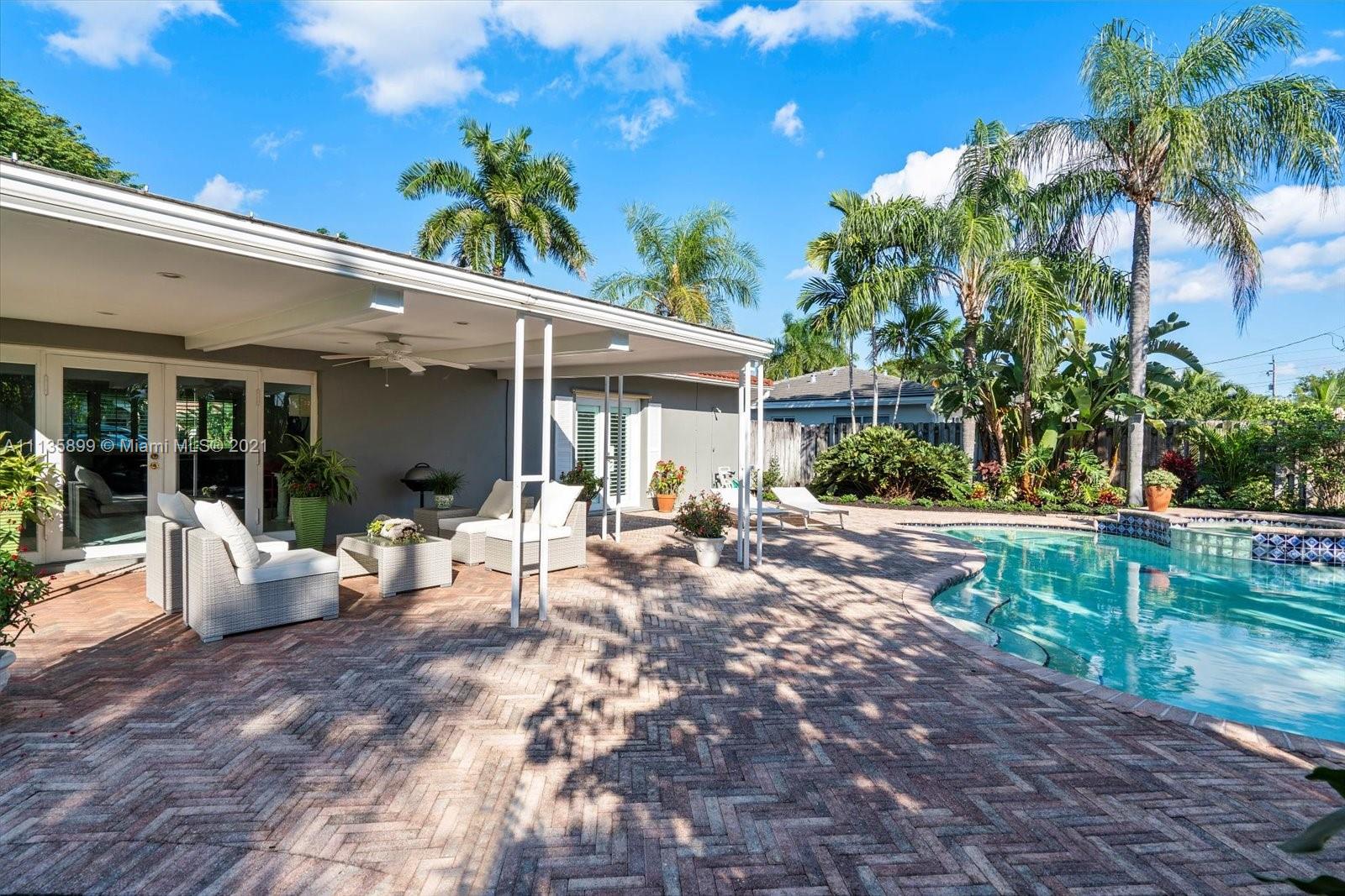 The home has been lovingly updated and is super clean! Featuring a split floorplan with 3 bedrooms and 2 full bathrooms, large kitchen with stainless steel appliances, an oversized 2 car garage, a beautifully landscaped huge 10,000 sq ft lot with inground pool, seller replacing pool heater, impact windows and doors, and so much more! Close to the beach, restaurants, and shopping, this home is a gem!