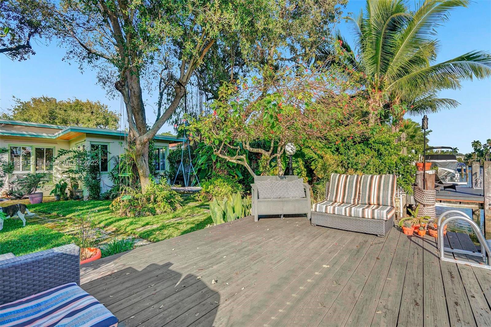 Step into an urban jungle in sought after Normandy Shores Isle. This bright 3/3 split plan open format home perfect for entertaining & enjoying the boat life. Entrance is private away from street w/ pond. Updated kitchen w/ stainless steel appliances & gas stove. Rooms are spacious, bright w/ full bathrooms. Back yard has 20-year-old oaks, rare lush landscaping & orchids. Trees have up lighting to enjoy on dock (space for a pool). Sunstream solar powered boat lift included fits up 28' boat. New roof installed 2020, 2 AC, gas water heater, Hurricane impact doors, large open driveway w/ space to add a circular driveway. Amazing gated community with golf course, tennis courts & work out park. Biking & walking distance to beach, parks, restaurants & more. A must see!