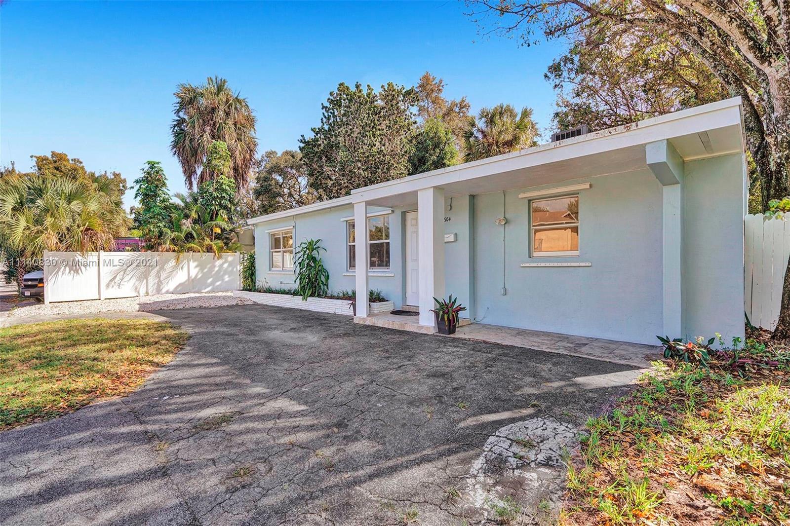 Bright and Clean 3 bedroom, 2 bath Single Family Home in East Fort Lauderdale with LARGE fenced backyard perfect for pets, & gardening and with plenty of room for a pool! Side of house made for boat or RV storage on large gravel area that combined with driveway can fit 6+ cars or Boat/RV. Patio area in back great for entertaining with large overhead trees. New roof in 2016 and New AC in December 2021. Freshly painted. Great eat-in kitchen with Florida room overlooking backyard and patio. Separate enclosed laundry room. Prime location right off I-95 and Davie Blvd with easy access to 595, and the turnpike. Only 2 minutes from Downtown Fort Lauderdale, and less than 10 minutes to the beach. Great for someone who commutes countywide, and likes the privacy of a Single Family home!