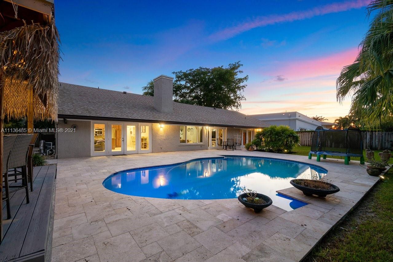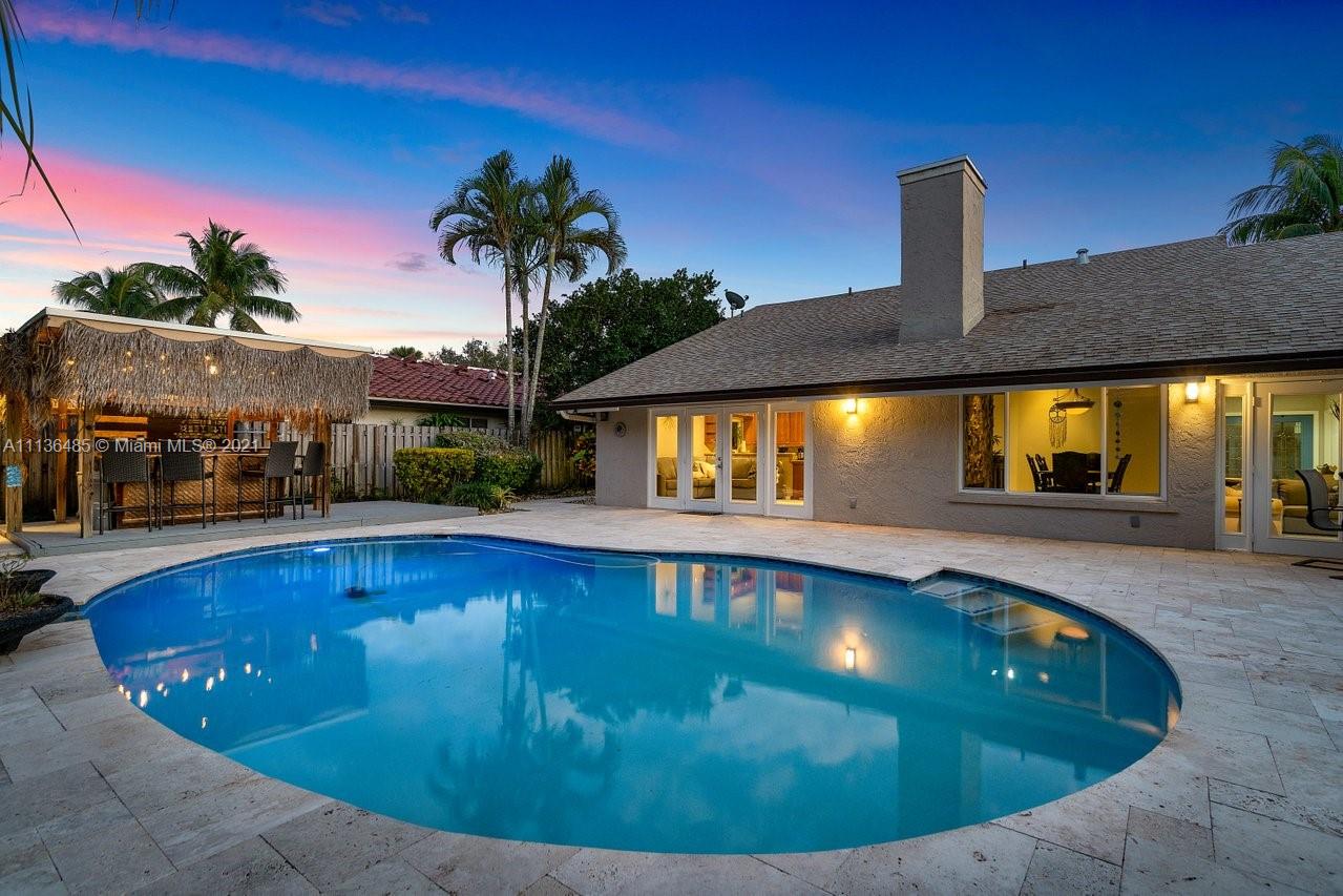 Exquisite home in Jacaranda country club golf community...Features: Gourmet kitchen with rich cabinetry, granite counters & stainless steel appliances, updated bathrooms, Hurricane IMPACT windows & doors plus shutters for added protection. Wood burning dual fire place, vaulted wood ceilings, French doors which opens to the breath taking PRIVATE backyard TIKI HUT perfect-for-entertaining. Close to all major highways, Malls, colleges and shopping...Very impressive home, A must SEE!!!