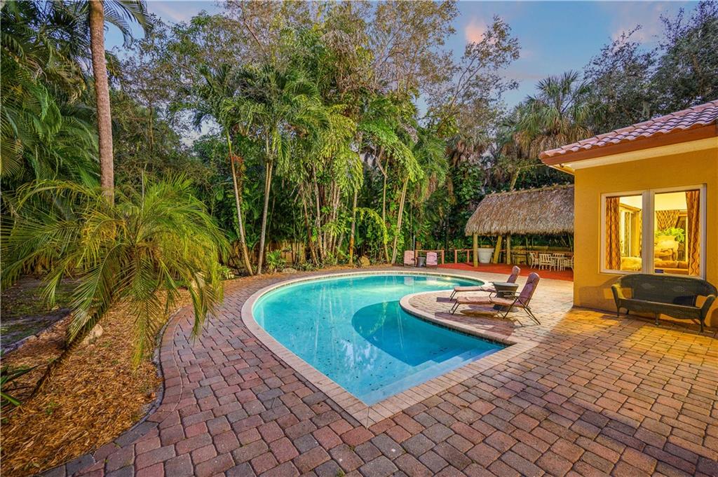 Large beautiful home in a lush tropical setting you do not want to miss! This home sits on just under 1/2 acre and offers privacy and serenity. Host guests in this 5 bedroom 4 1/2 bathroom home with private theater while preparing meals in your chefs' kitchen. The backyard and deck are large enough for all your friends and family, parking won't be an issue in your 9 car driveway with three car garage. This home was completed in 2010, the lot was built above the flood zone, with a whole house generator and impact glass and doors throughout make it a secure haven. Finishes of granite and over 4000 feet of travertine complete this luxury retreat for any family.