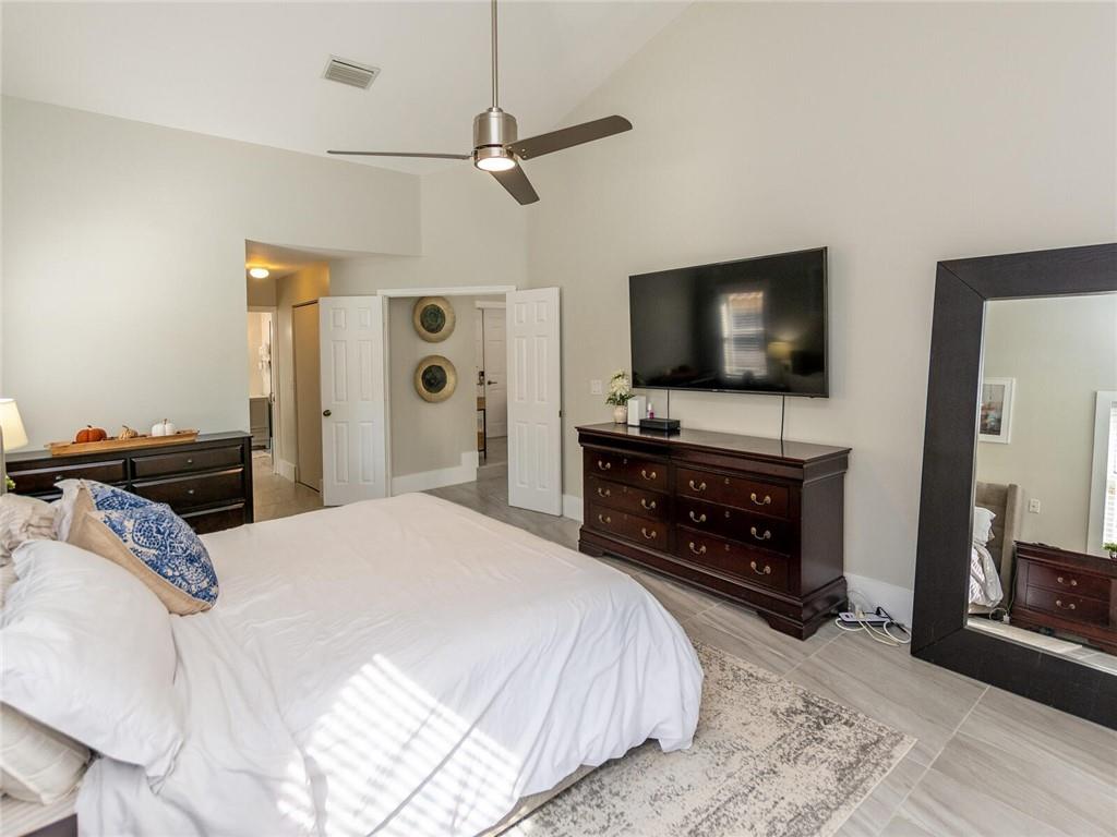 'STUNNING' CORNER WATERFRONT HOME FEATURING Wonderful Open Concept with custom porcelain flooring thru out, volume ceilings with extensive lighting, designer built ins,custom stainless and shaker kitchen with extended QUARTZ island and countertops, subway backsplash, extended covered patio overlooking private fenced garden and tranquil lake, custom lighting fixtures thru out, new sprinkler system, oversized backyard great for the children and entertaining, plantation shutters, alarm system, (2007) roof and A/C (3Yr) .. A delight to show!! SELLER REQUESTS..5 day inspection period, proof of funds to accompany offer, NO APPRAISAL CONTINGENCY