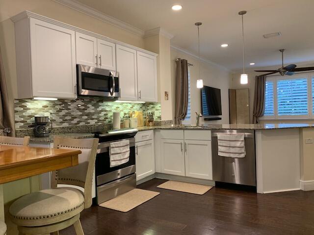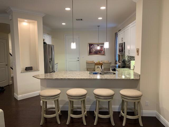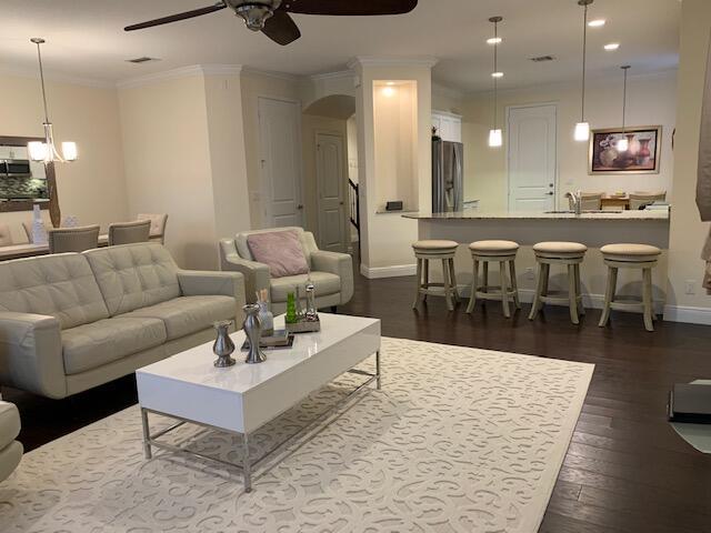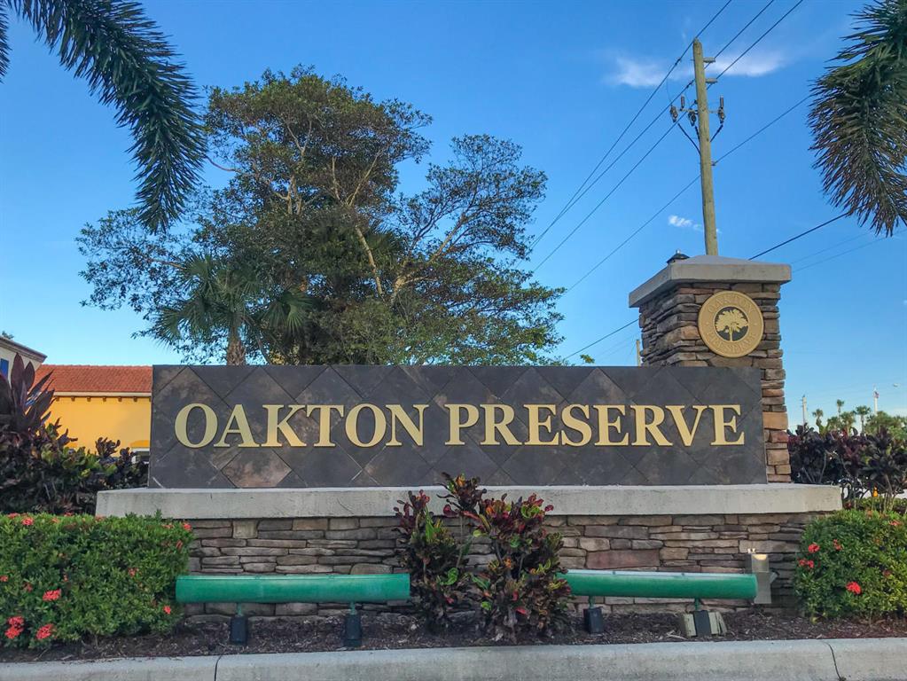 This is it! This luxury end unit townhome is only SEVEN YEARS YOUNG!! Nestled in the quaint gated community of Oakton Preserve this 3/2.5/2 home has 2278 square feet under air & boasts impact windows, hardwood floors, plantation shutters, crown molding, granite counters & high end ceiling fans throughout. The recently updated kitchen is equipped with Kenmore Elite energy efficient appliances as well as custom backsplash. Double entry doors lead to the oversized master bedroom with tray ceilings. Large dual closets for extra storage space & the Master Bathroom has double sinks, large soaking tub & multi jet shower panel. Brick paver driveway, walkway & patio. Water filter, softener & pressure system gives you high water pressure on demand. Furniture Negotiable!