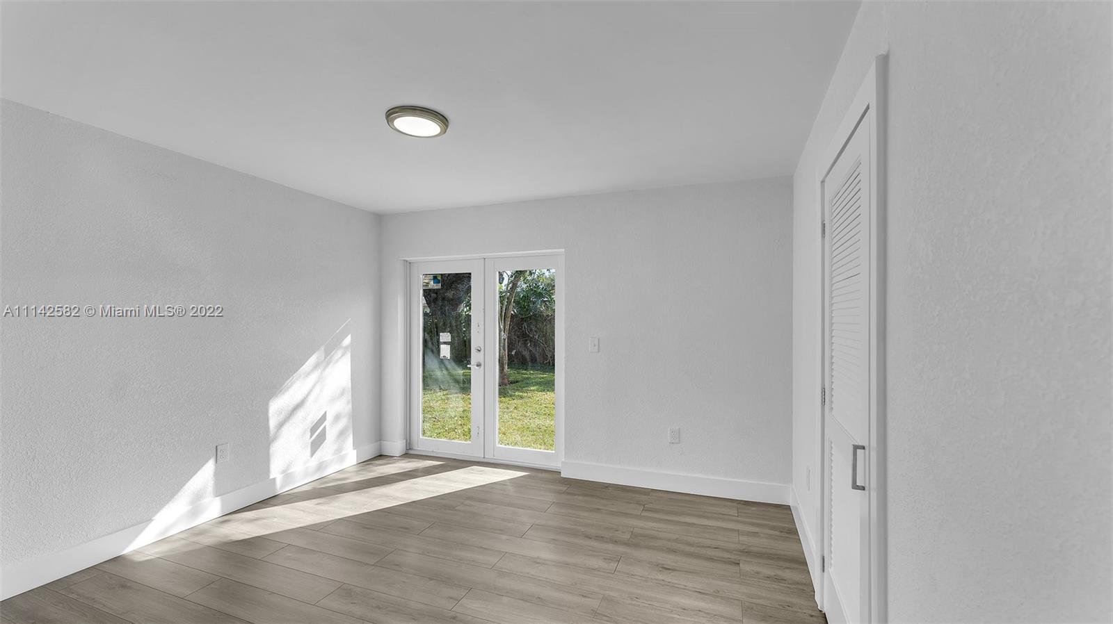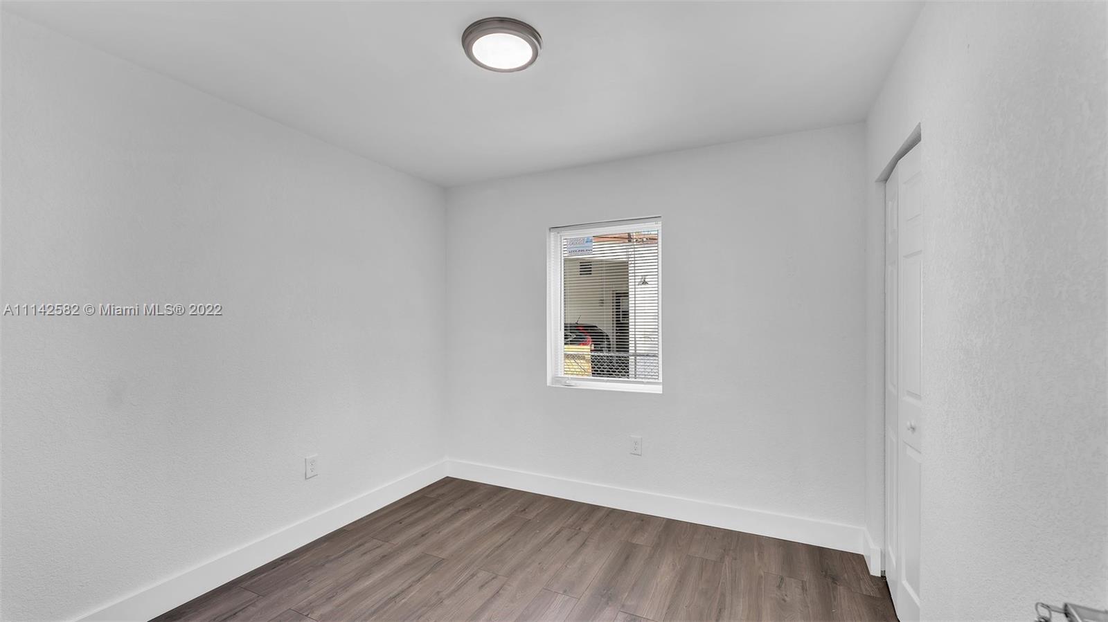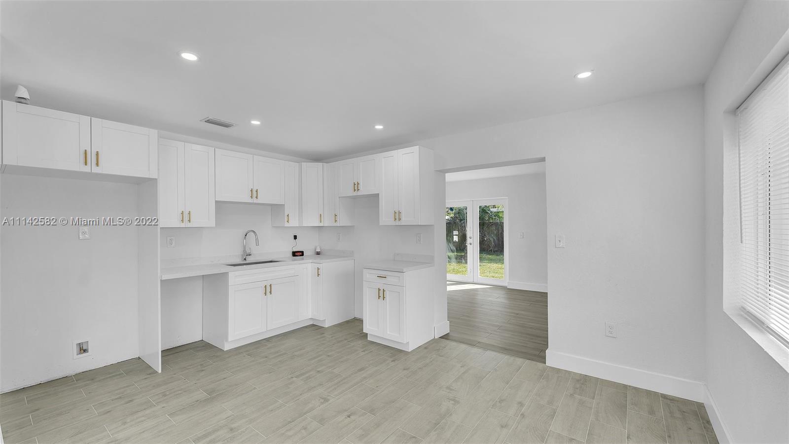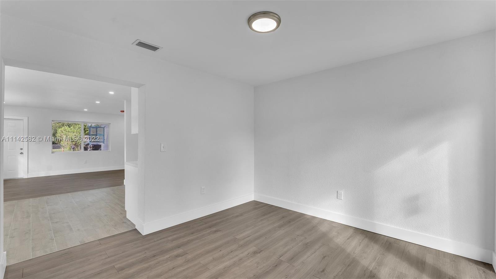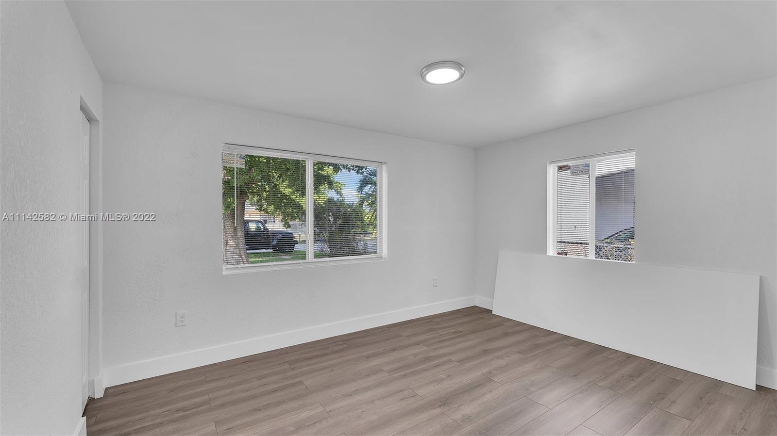 New roof, new impact windows and doors, new kitchen cabinets and countertops, new ceramic floors in the kitchen area and laminate floors in rest of living area, new baseboards, interior doors, interior and exterior paint, knockdown walls, smoke alarms and recess lights, living room, dining area, and family room, enclosed laundry area, new grass all over the property, this property is completely move in ready.