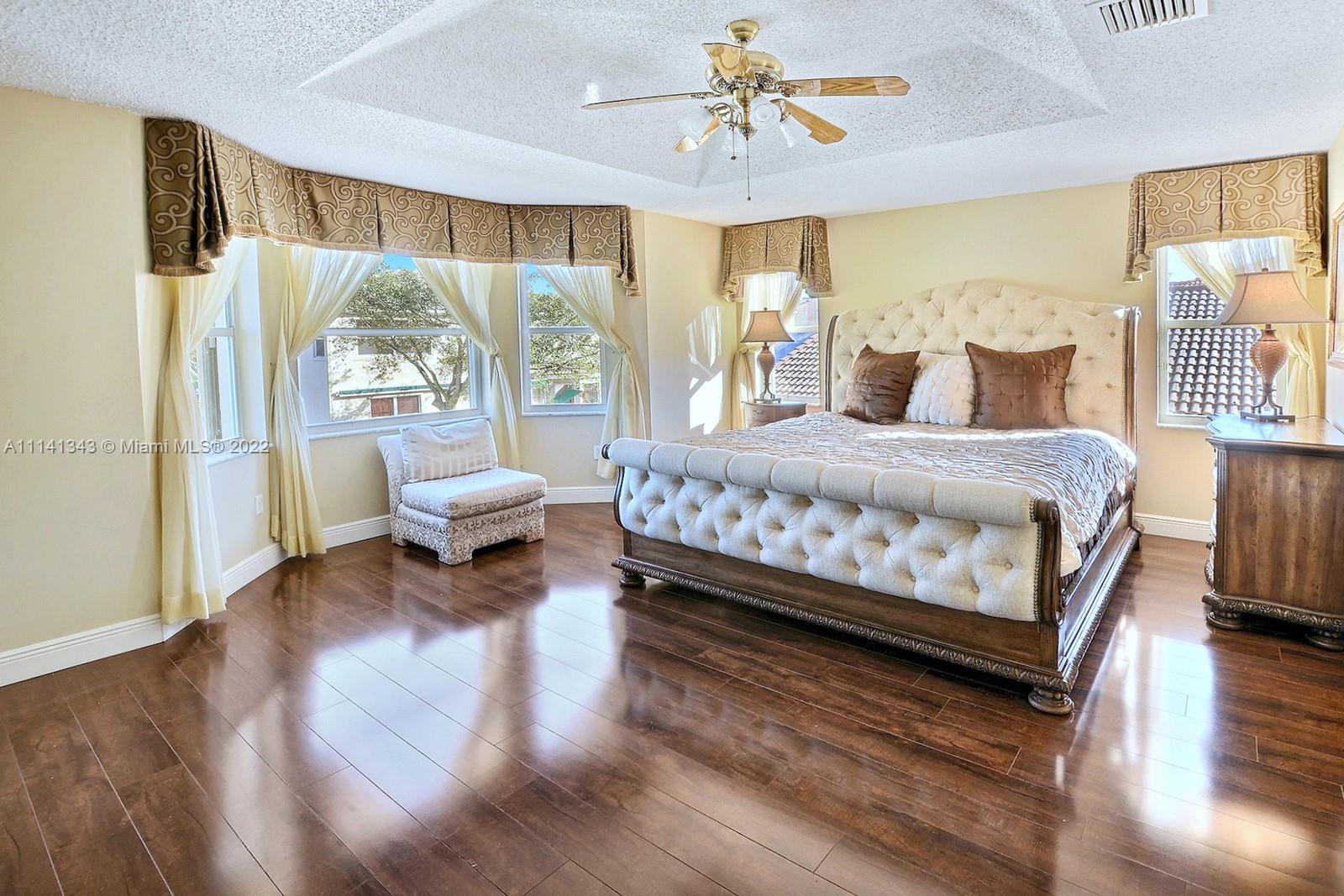 STUNNING 3 BED, 2.5 BATH TWO STORY HOME LOCATED IN THE SOUGHT AFTER RIVIERA ISLES COMMUNITY. THE SPACIOUS KITCHEN OFFERS STAINED WOODEN CABINETRY WITH A STYLISH BACKSPLASH, A LARGE CENTER ISLAND WITH A PREP SINK, AND BREAKFAST NOOK OVERLOOKING THE BACKYARD. THE FABULOUS OVERSIZED PRIMARY SUITE INCLUDES A LOUNGING AREA, BAY WINDOWS, TRAY CEILING DESIGN, AND ENSUITE BATHROOM WITH DOUBLE VANITIES, SOAKING TUB AND A GLASS ENCLOSED SHOWER. TILE FLOOR DOWNSTAIRS & LUXURIOUS WOOD FLOORS ON 2ND LEVEL. RELAX IN YOUR FENCED BACKYARD W PLENTY OF SPACE FOR A POOL. ACCORDION SHUTTERS & 2 CAR GARAGE. RIVIERA ISLES IS A PRIVATE GATED COMMUNITY BUILT AROUND A 225-ACRE LAKE, W 24/7 MANNED GATES RESORT STYLE LAGOON INSPIRED POOL, GYM, TENNIS & BASKETBALL COURTS, COMMUNITY PLAYGROUNDS, LAKE & PIER.