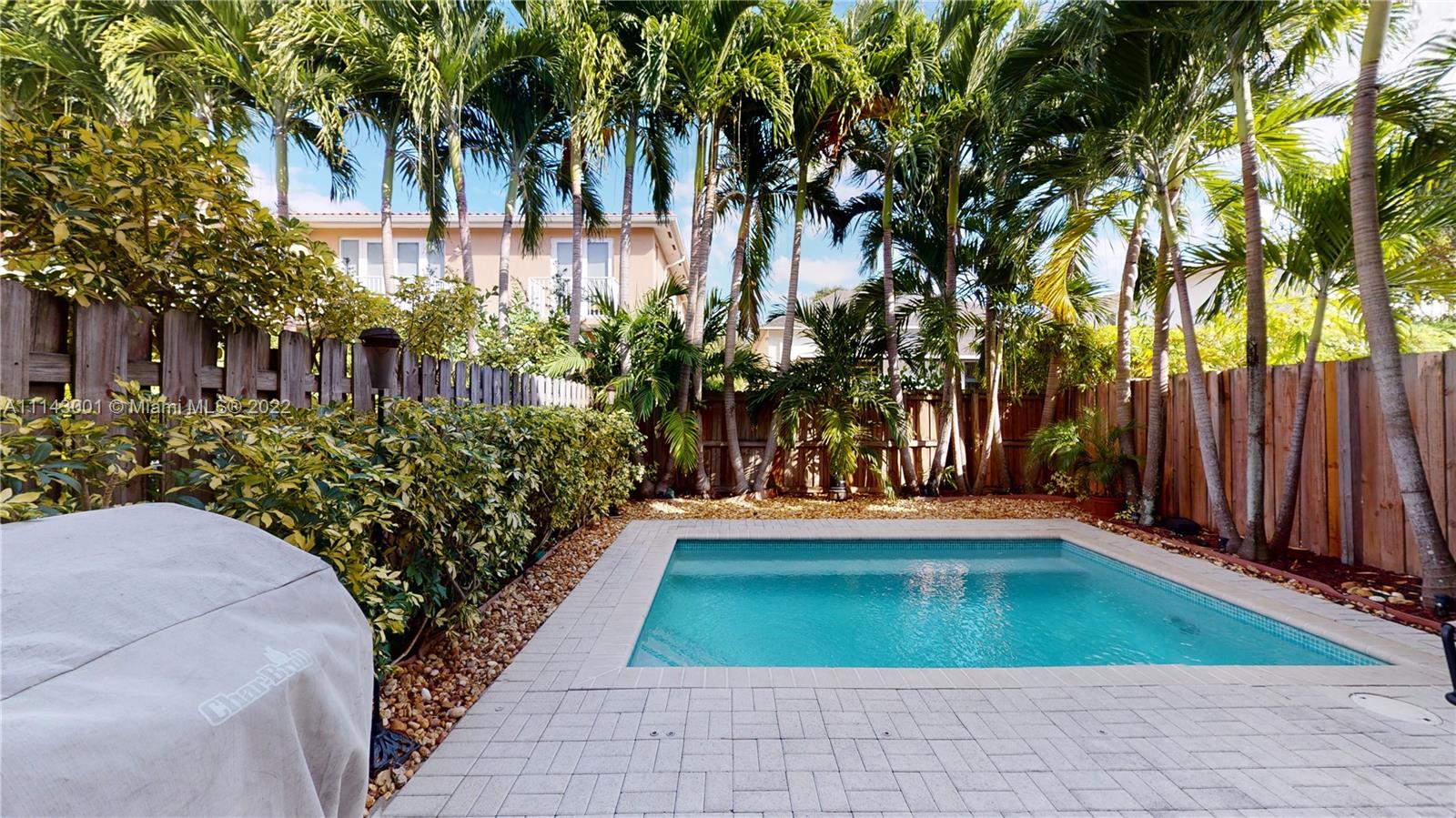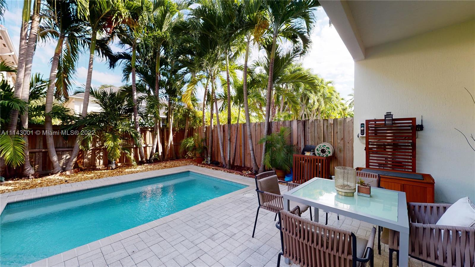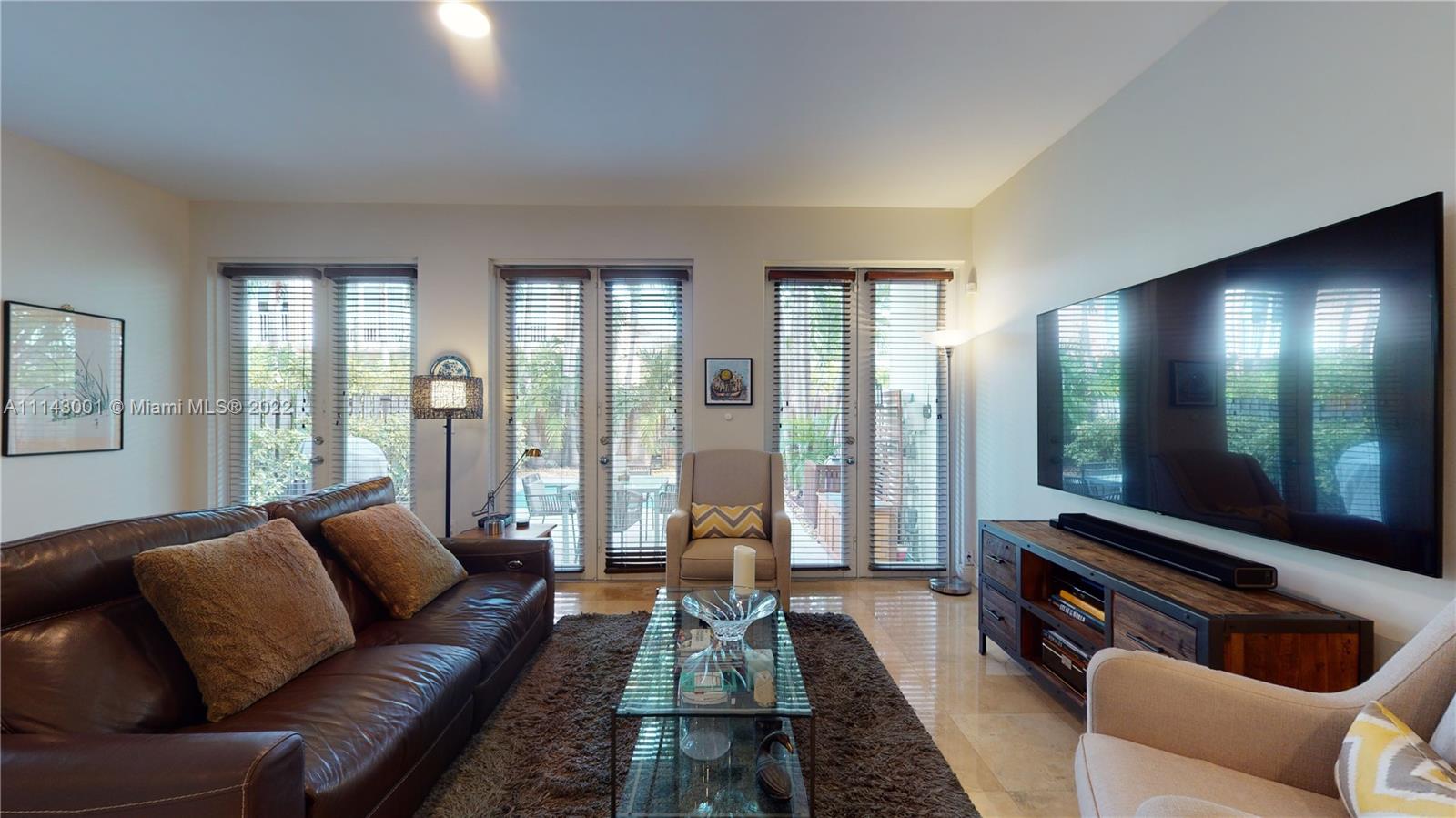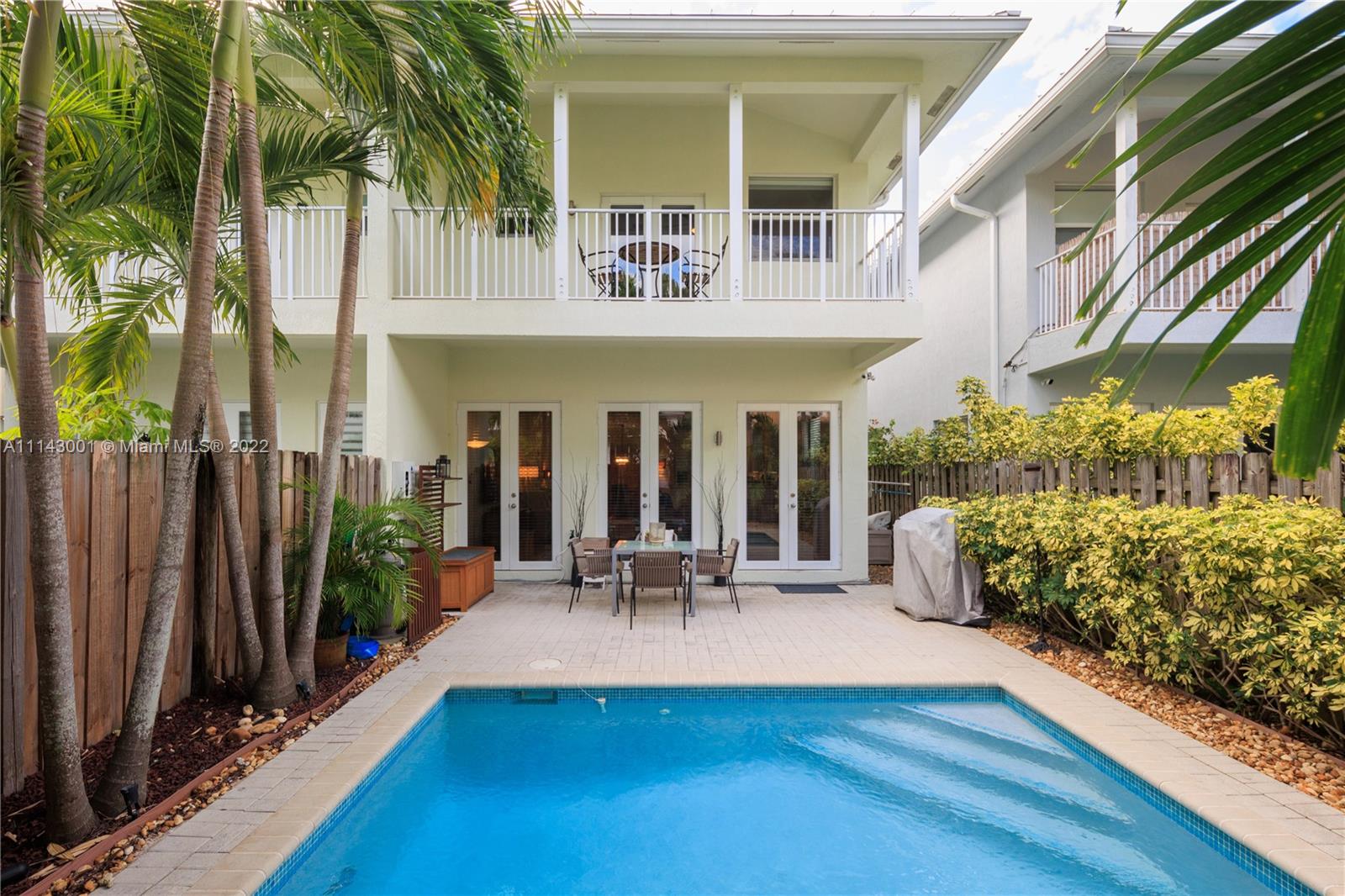 Well maintained 3 bedroom, 2.5 bath town home with a private pool in the Grove. Travertine marble and wood floors. High ceilings. Impact doors and windows. Covered patio. Heated pool. Open kitchen with upgraded SS appliances and granite countertops. One car garage plus gated parking space. Second floor has three nice size bedrooms, four walk in closets and a large loft area with lots of natural light which is excellent for home office, play area or sitting room/den. Large covered balcony in the master bedroom, overlooking the private pool. Another nice size balcony in the front overlooking the courtyard. Low maintenance fee which includes the building insurance and management. Interior and exterior TV cameras. Not in a flood zone. Walking distance to Downtown Coconut Grove