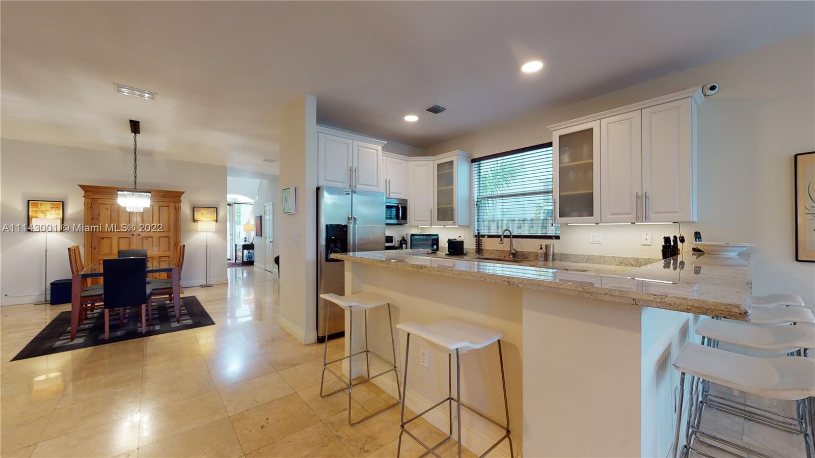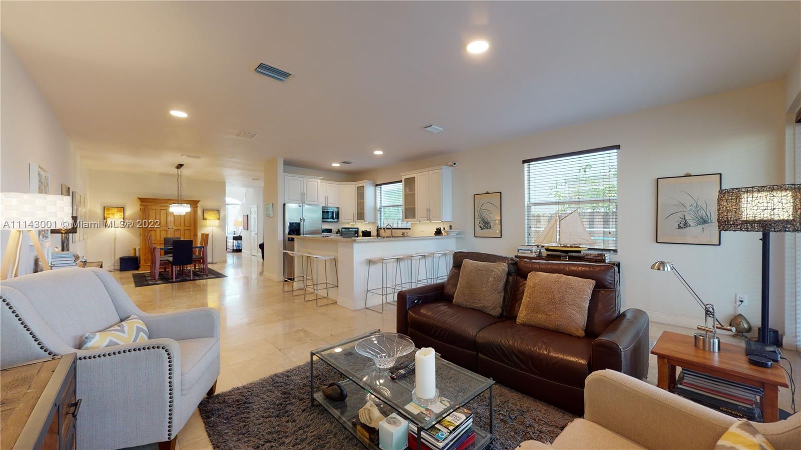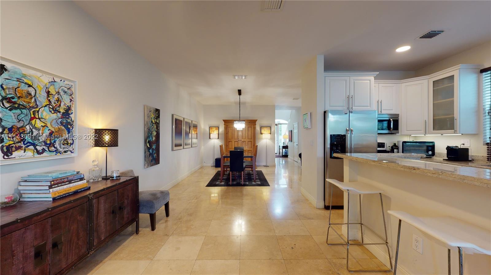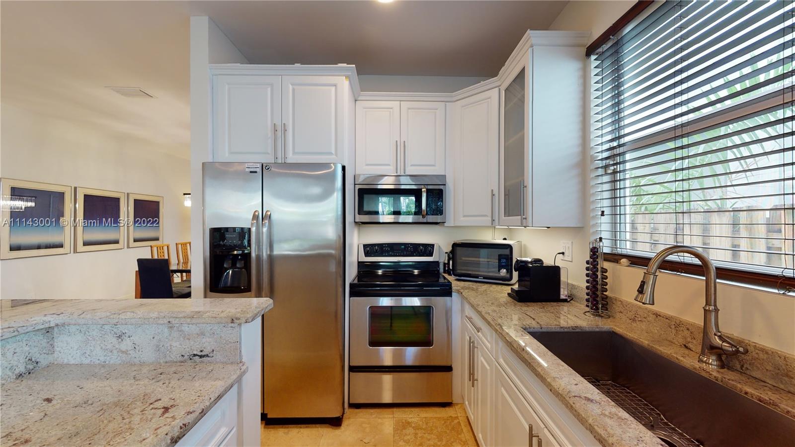 Well maintained 3 bedroom, 2.5 bath town home with a private pool in the Grove. Travertine marble and wood floors. High ceilings. Impact doors and windows. Covered patio. Heated pool. Open kitchen with upgraded SS appliances and granite countertops. One car garage plus gated parking space. Second floor has three nice size bedrooms, four walk in closets and a large loft area with lots of natural light which is excellent for home office, play area or sitting room/den. Large covered balcony in the master bedroom, overlooking the private pool. Another nice size balcony in the front overlooking the courtyard. Low maintenance fee which includes the building insurance and management. Interior and exterior TV cameras. Not in a flood zone. Walking distance to Downtown Coconut Grove