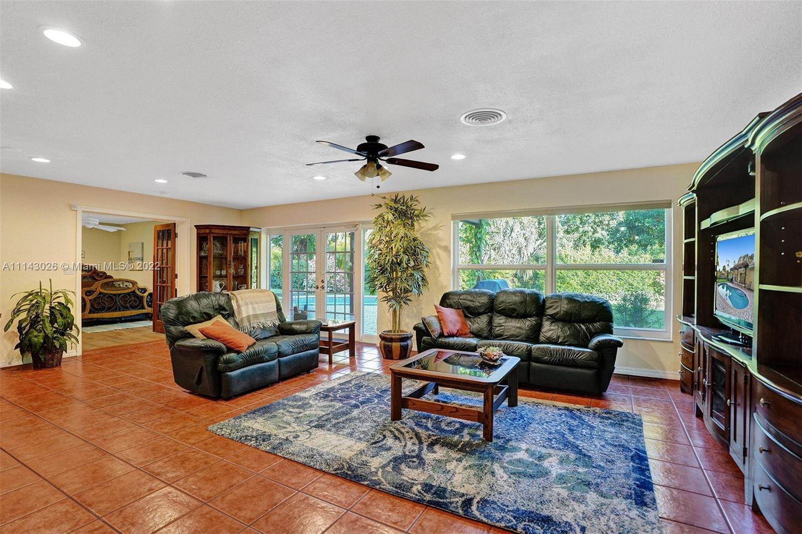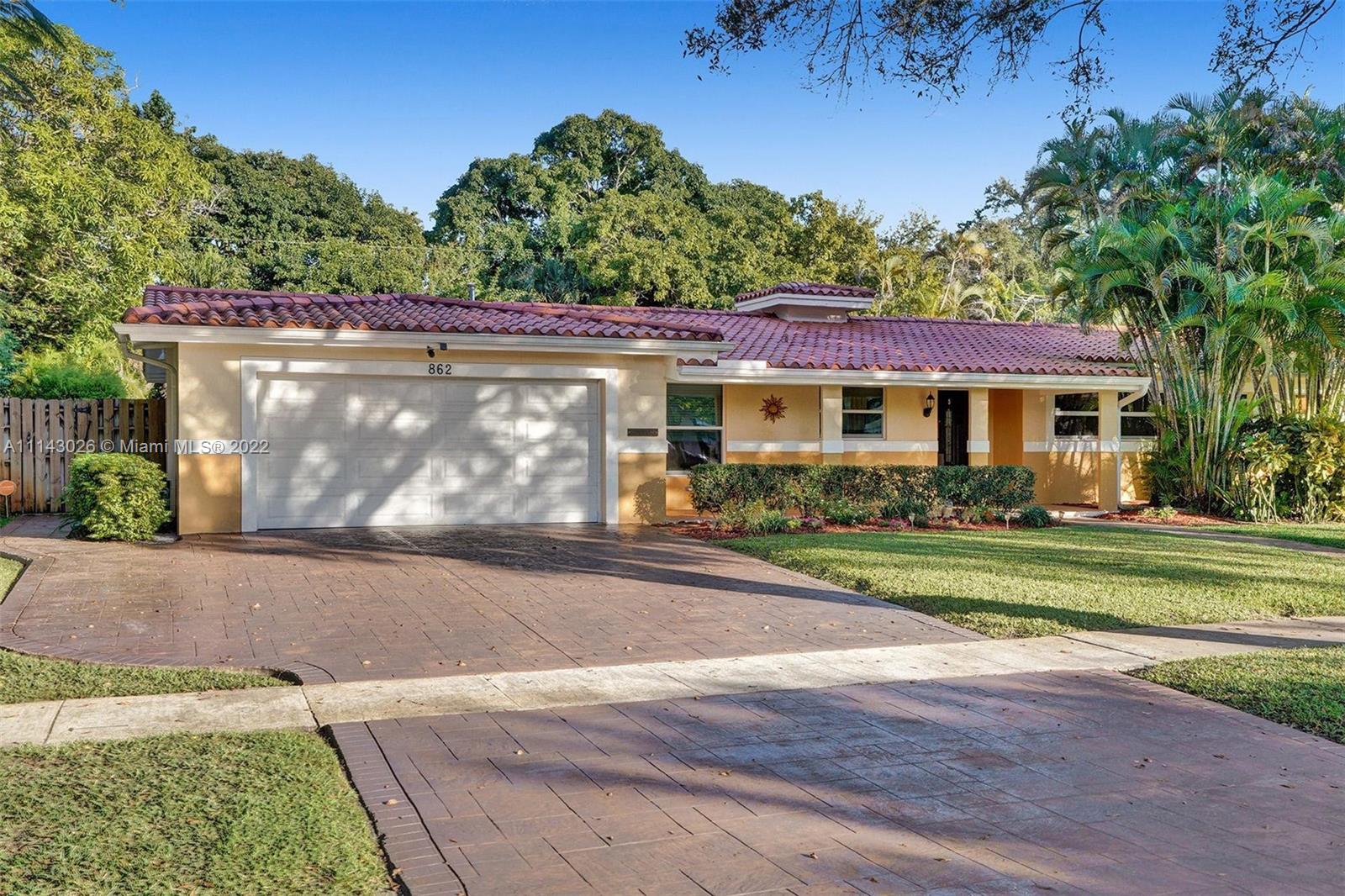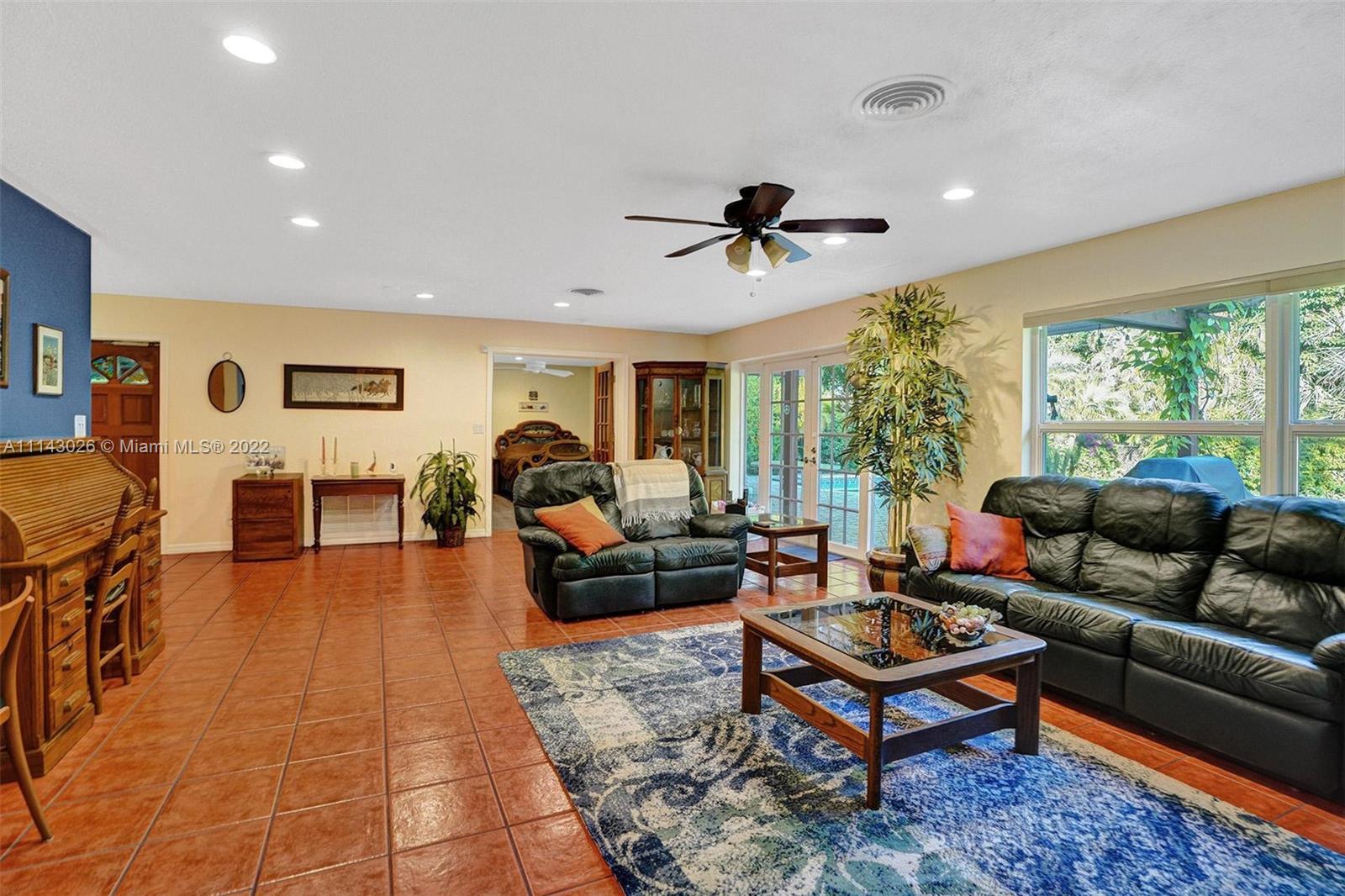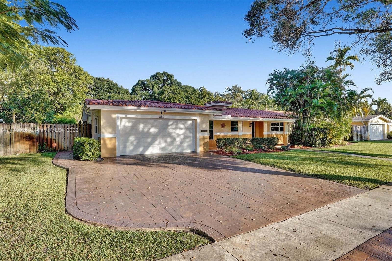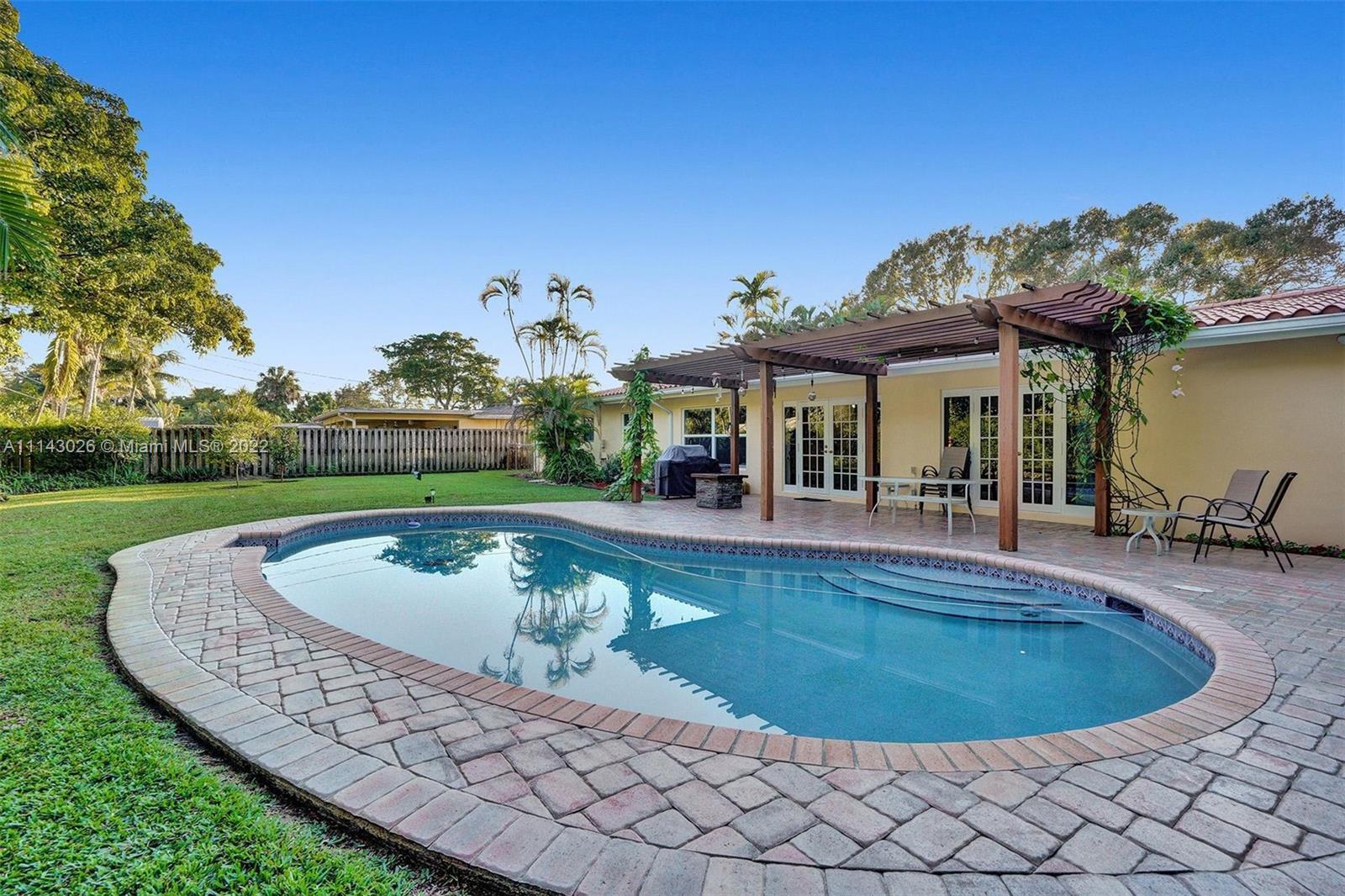 After passing the pristine front landscape, you’re ushered inside into the open-concept living area with vibrant tile flooring, and tons of natural light. Around the corner, you’ll find the quaint dining area and the galley-style kitchen with granite countertops and solid wood cabinets. Relax and unwind in the primary bedroom, which boasts a magnificent, updated ensuite bath and plenty of closet space. The four remaining bedrooms give you plenty of space; each room has either new wood like flooring or carpet, and the rear bedroom, includes a walk-in closet, a full cabana bath with access to the back patio. Behind the home you’ll find a large pergola, an outdoor hot/cold shower, paver patio and custom in-ground pool.