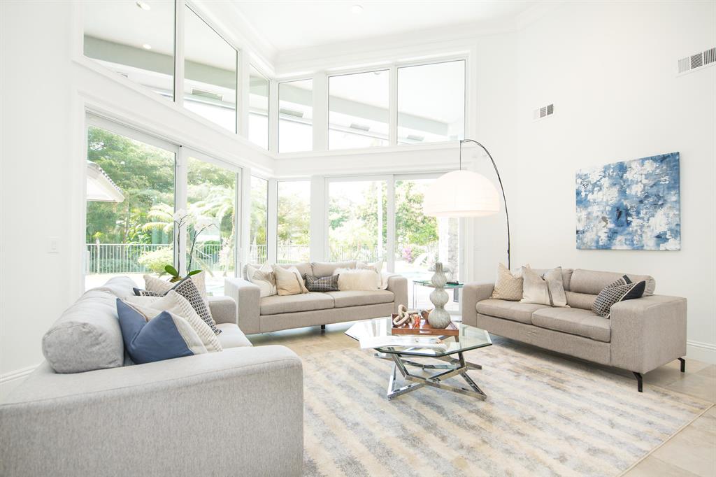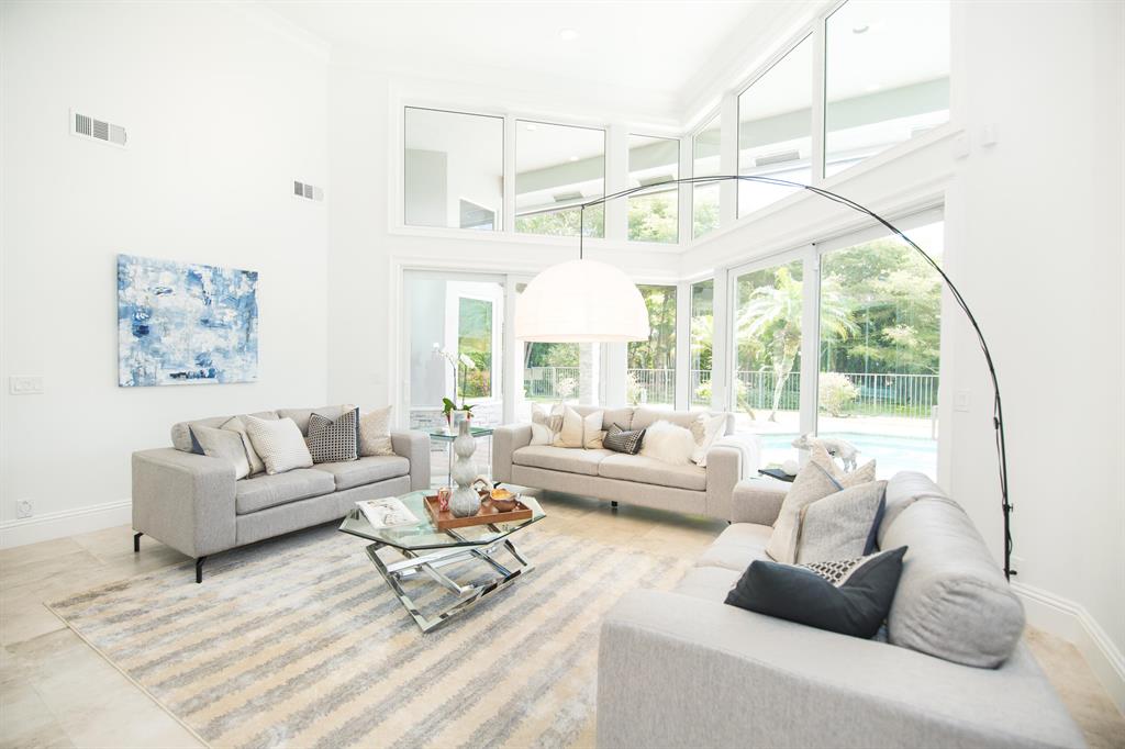 Move-in ready, Furnished one-story 4 BD / 3 BA / 2,871 SF split-bedroom home with dazzling lake views. Professionally decorated and impeccably furnished, the attention to detail in every inch of this home is breathtaking. The recently-renovated kitchen is crisp and modern with all Samsung appliances and an extra ice-maker. It enjoys views of the lake and offers easy access to the family room.Every bedroom is bedecked with hardwood floors and plantation shutters. The backyard exemplifies the highly-coveted South Florida lifestyle between the spectacular views, excess of patio space, large grassy area, home vegetable garden, cabana bath, and heated pool and spa.