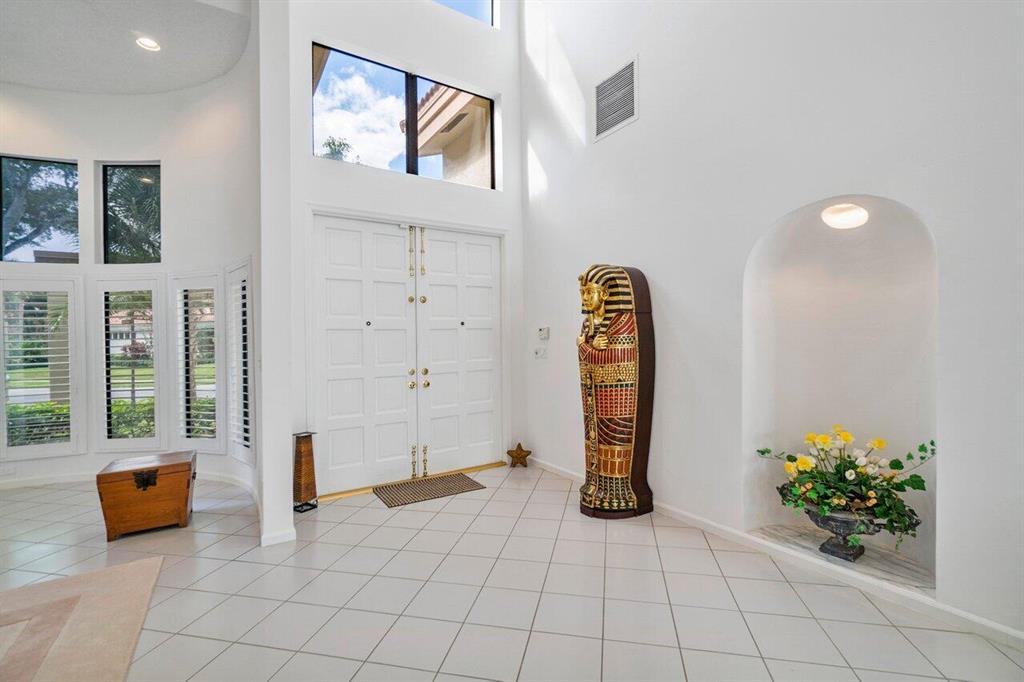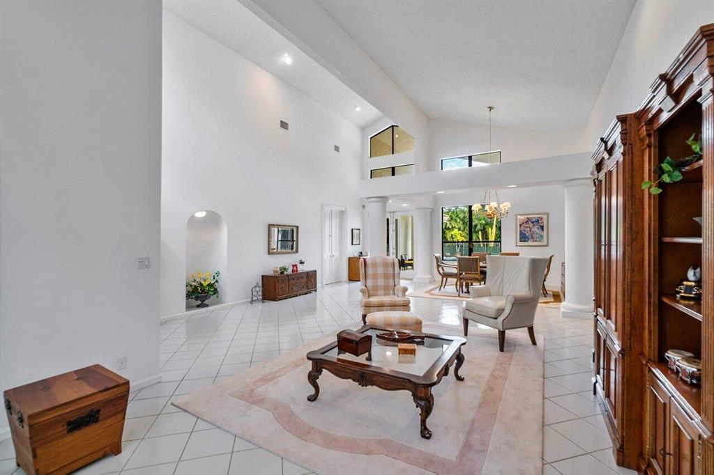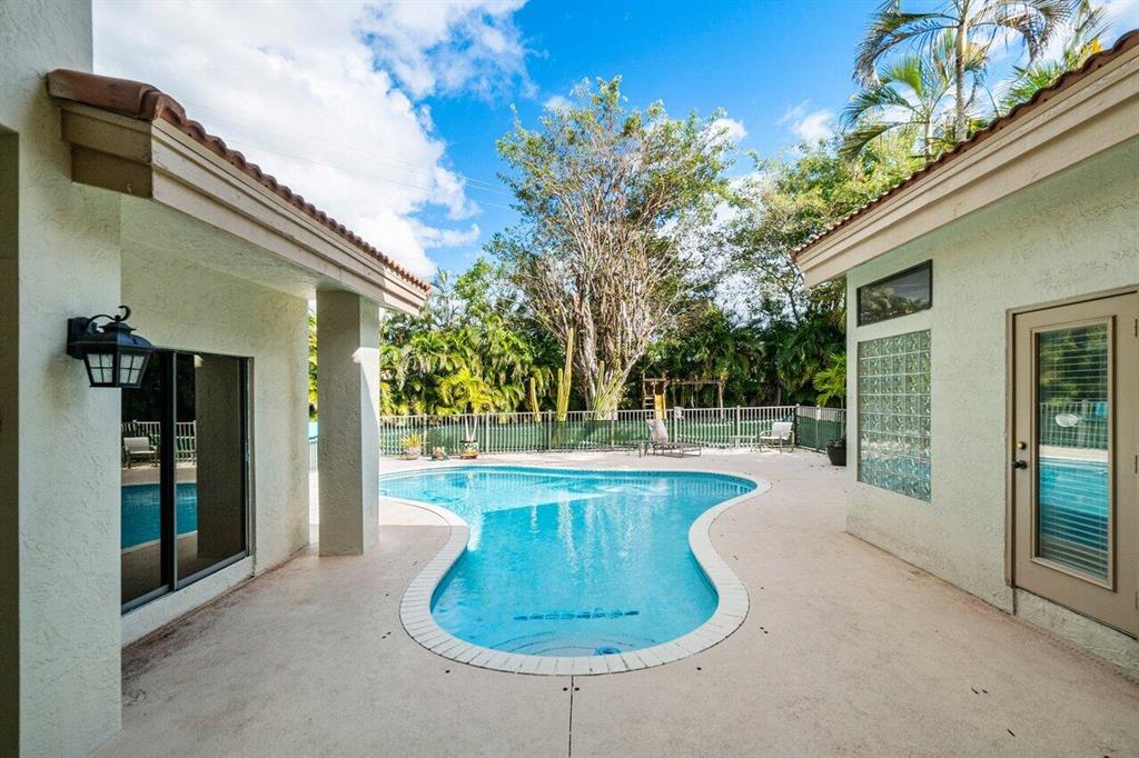 Rare find in Central Boca! Beautiful one-story home on an oversized corner lot in the highly sought after Colonnade community. This 5 bedroom, 4 bathroom home boasts an open floor plan, volume ceilings, and floor to ceiling windows. Enjoy the South Florida weather in your beautiful fenced patio with covered lanai and inviting free-form pool. Putting green and kids playset situated on a large private yard. Plenty of parking in driveway plus 3-car garage! The wonderful Colonnade community is located in a great school district and offers a park area with tennis, basketball, walking trails and a playground. Conveniently located just a short distance from fine dining, shopping, beaches and I-95. Don't miss out on this East Boca gem!