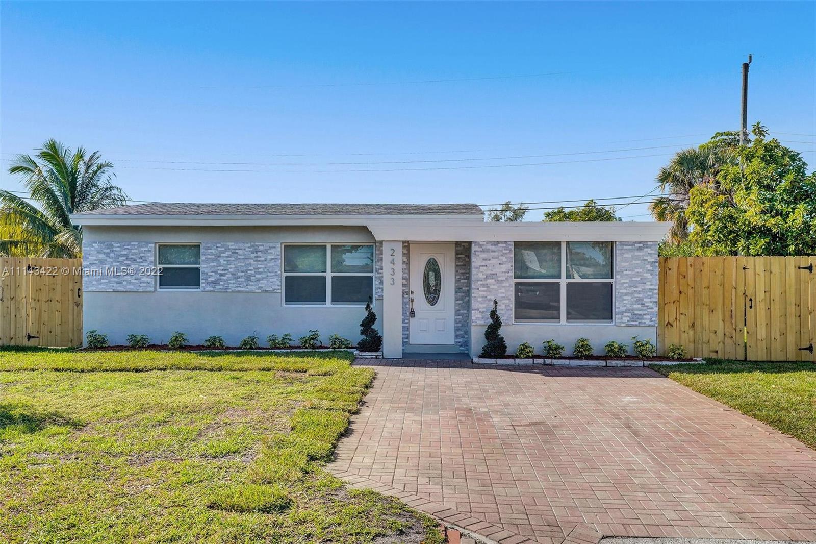 BEAUTIFULLY FULLY REMODELED 3 BEDROOMS 2 BATHROOMS HOME WITH POOL IN THE HEART OF POMPANO BEACH! PERFECT TURN-KEY HOME OR VACATION RENTAL OPPORTUNITY! HOME FEATURES; HIGH IMPACT WINDOWS AND DOORS, BRAND NEW BATHROOMS, SEPARATE LAUNDRY ROOM WITH BRAND NEW WASHER AND DRYER, NEW SHINGLE ROOF AND FLAT ROOF, BRAND NEW 2021 A/C UNIT, NEW IRRIGATION SYSTEM WITH NEW GRASS, AND PLANS. NEW ELECTRIC WATER HEATER, NEW CUSTOM KITCHEN WITH HIGH-END EUROPEAN CABINETS, QUARTZ COUNTERTOP WITH BRAND NEW 2022 STAINLESS STEEL APPLIANCES, RECESSED LIGHTING THROUGHOUT, VERY LARGE BACKYARD WITH A LARGE POOL, FRESHLY PAINTED INSIDE/OUT... MINUTES FROM SCHOOLS, BEACH, SHOPPING PLAZAS ETC... HURRY THIS WON'T LAST LONG!!