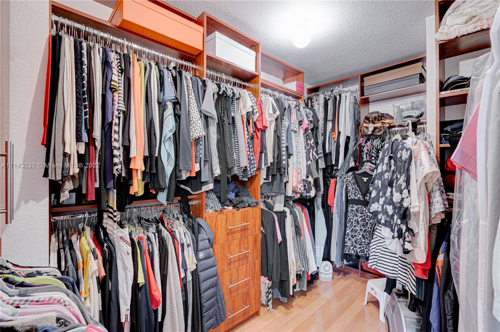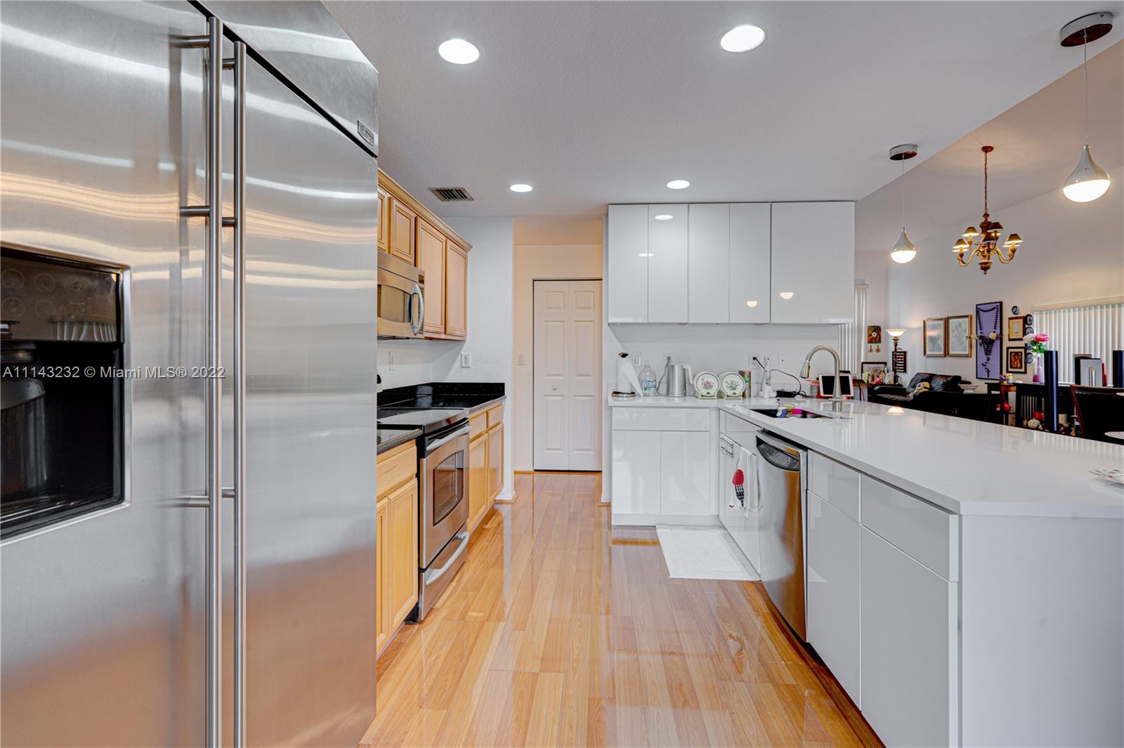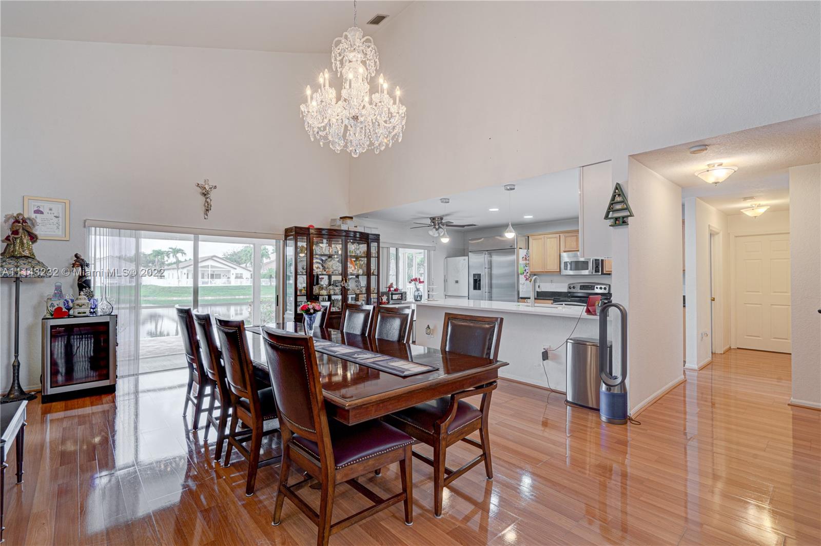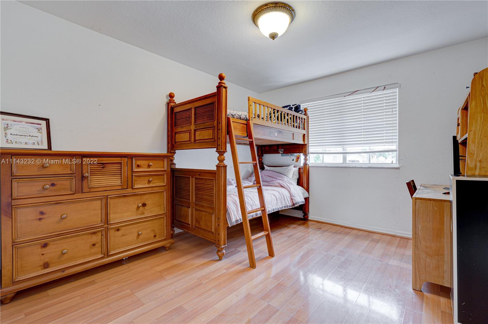 Inmaculate house ready for a family, located in a gated community "Doral Gardens", open concept layout, large kitchen area, enclosed patio with a lake-view, very well kept laminated wood floors, extra large master bedroom, one bedroom downstair, 2 car garage.