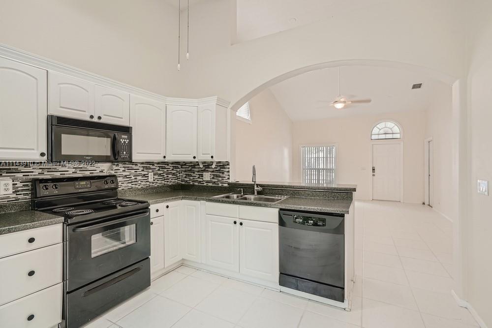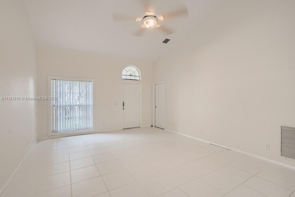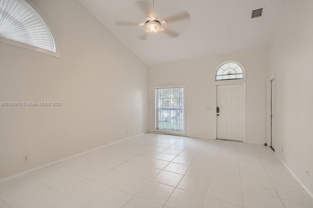 Fall in love with this 3 bedroom, 2 bathroom home in a beautiful tree-lined neighborhood in Coral Springs! A spacious living room with vaulted ceilings greets you as you enter, perfect for entertaining guests. Continue through to the classic kitchen boasting white cabinetry, durable countertops, a lovely backsplash, and a pantry. The primary bedroom offers generous closet space and an en suite bathroom with a dual vanity sink and soaking tub. The backyard comes complete with a patio and manicured landscaping. The home is conveniently located just minutes from several shops, restaurants, and highways!