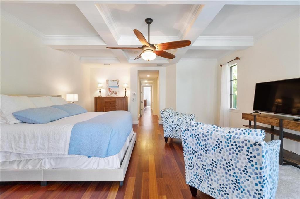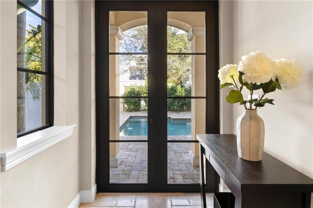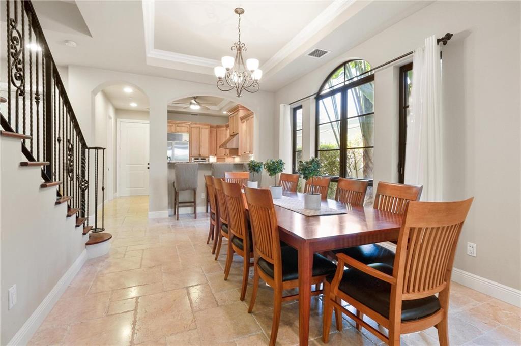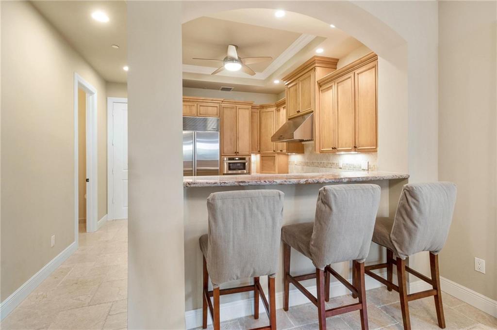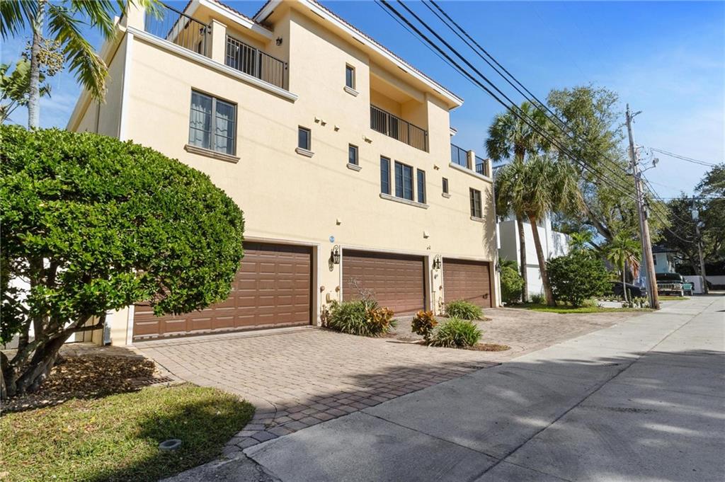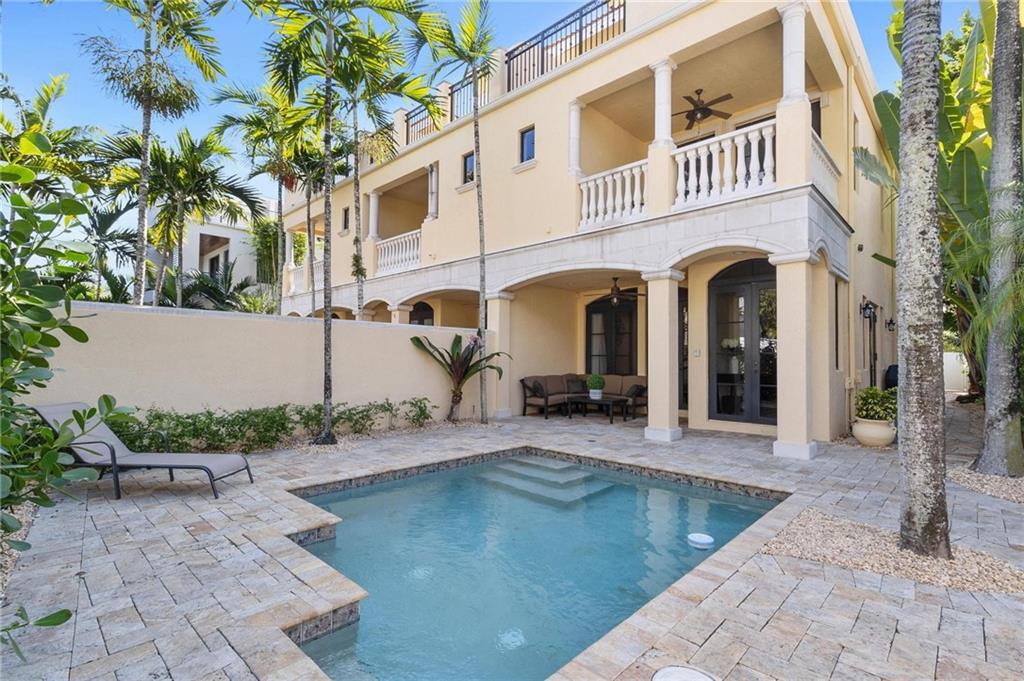 The epitome of elegance! This superior quality construction Mediterranean townhome is located in a prime location of one of the most coveted neighborhood of Victoria Park. Entering this corner unit home, you are greeted with an expansive living room featuring 10' coffered ceiling and gorgeous archways. The chef's kitchen has top of the line appliances, including Thermador gas cooktop and Sub-Zero refrigerator. This 3 bedroom, 3.5 bath property has impact glass throughout, travertine and Brazilian cherrywood floors, and wired for sound throughout. The spacious primary suite also has coffered ceiling, 2 large closets and its own private covered balcony. The master bathroom features a jacuzzi tub, and large walk-in shower. See additional details include heated pool, elevator & more.