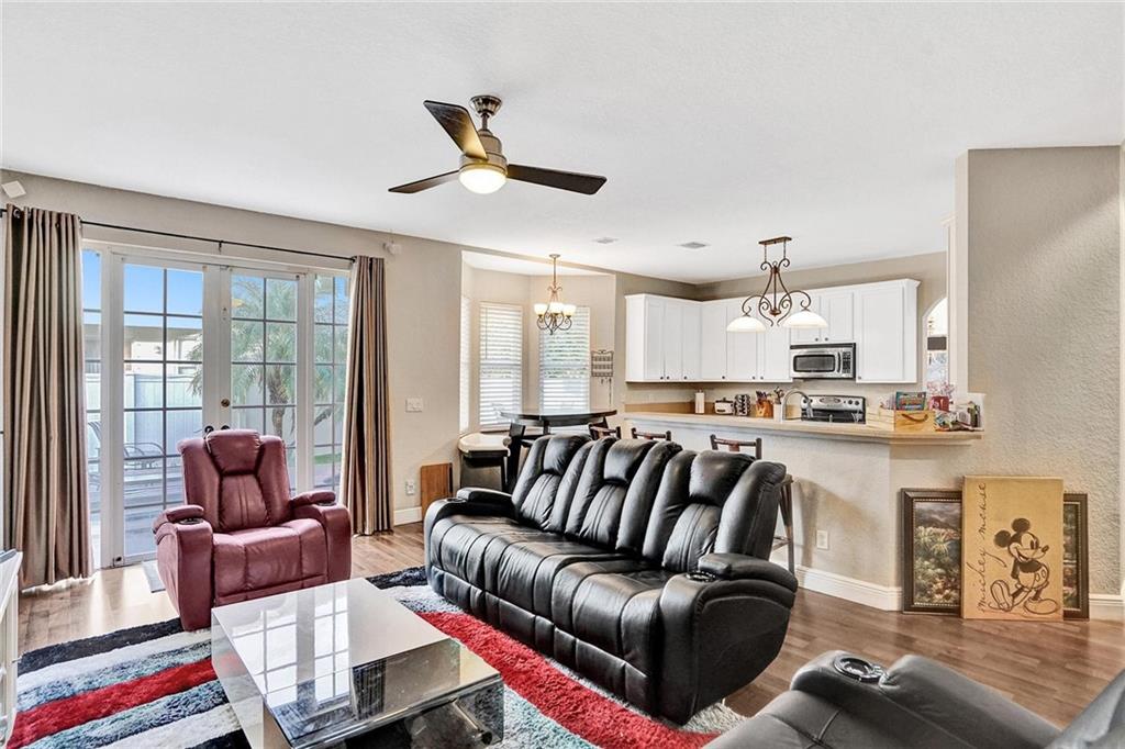 HOME CONTENTMENT! 4 Bedroom 2.5 bathroom pool home in lovely condition in Monarch Lakes. Corner property, fenced yard, family ready! White kitchen with hard surface countertops, stainless steel appliances, breakfast room all open to large family room. Formal living and dining room. Superb family floor plan. All bedrooms are on the second floor, all are large with good closet space. Lovely laminate flooring throughout the second story. Oversized first floor half bath and utility room with extra area for storage. Private pool area, huge deck, plus a separate area perfect for pets. All fenced. Two car garage plus paver driveway.