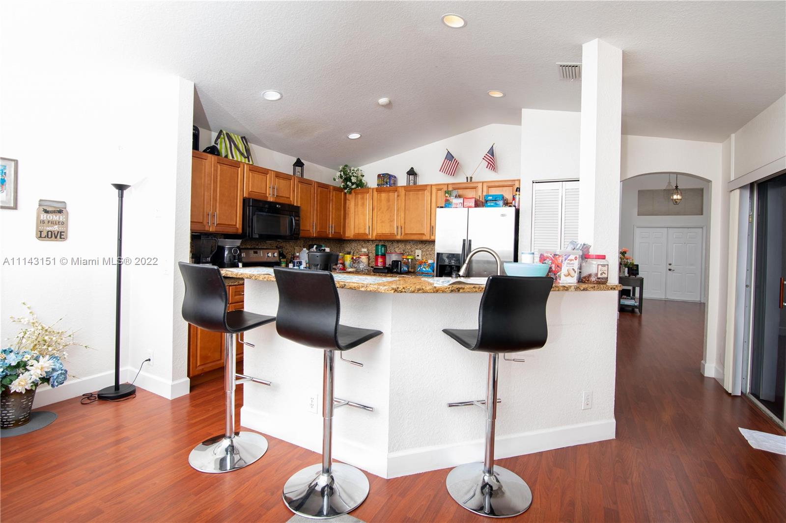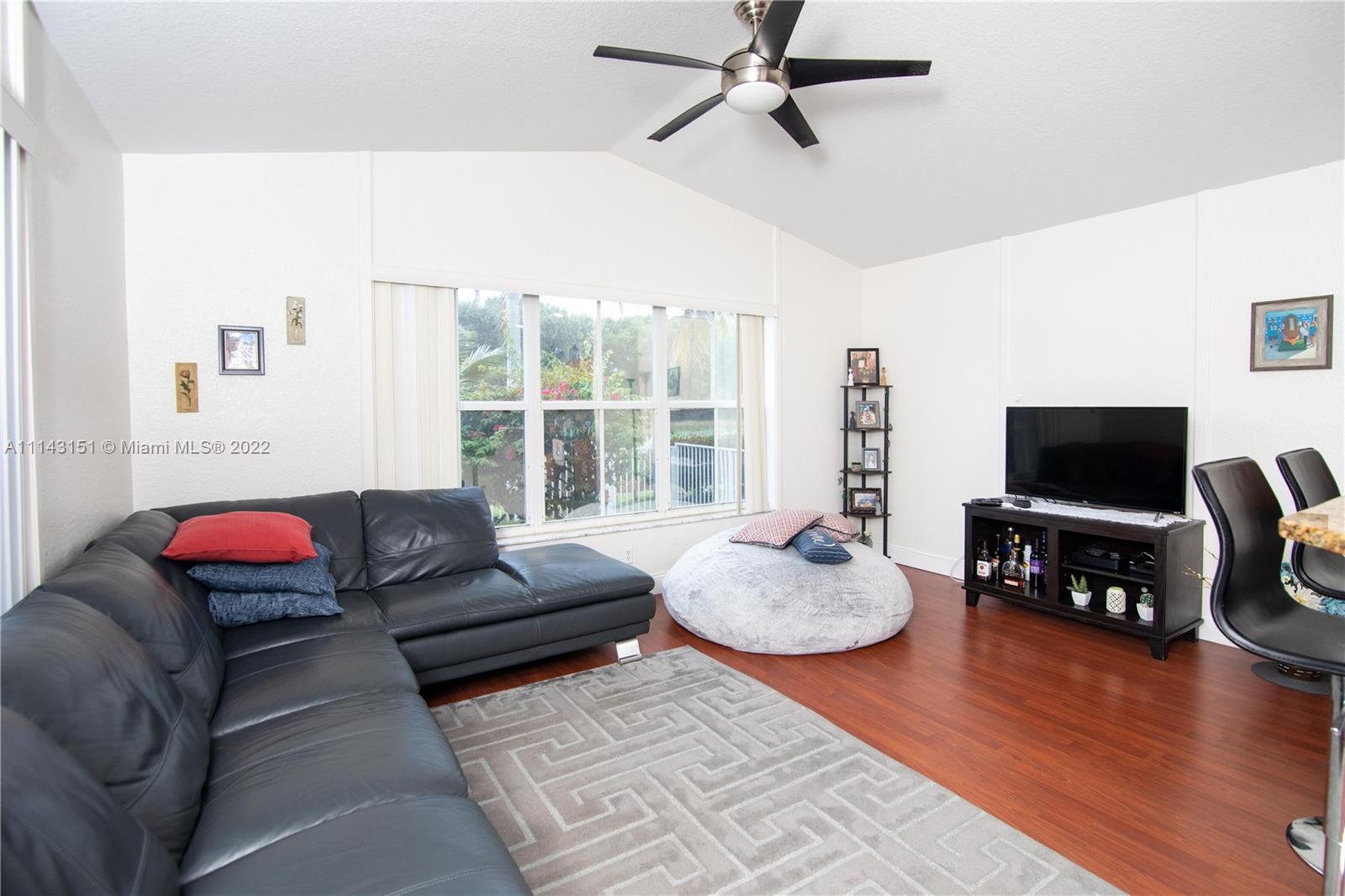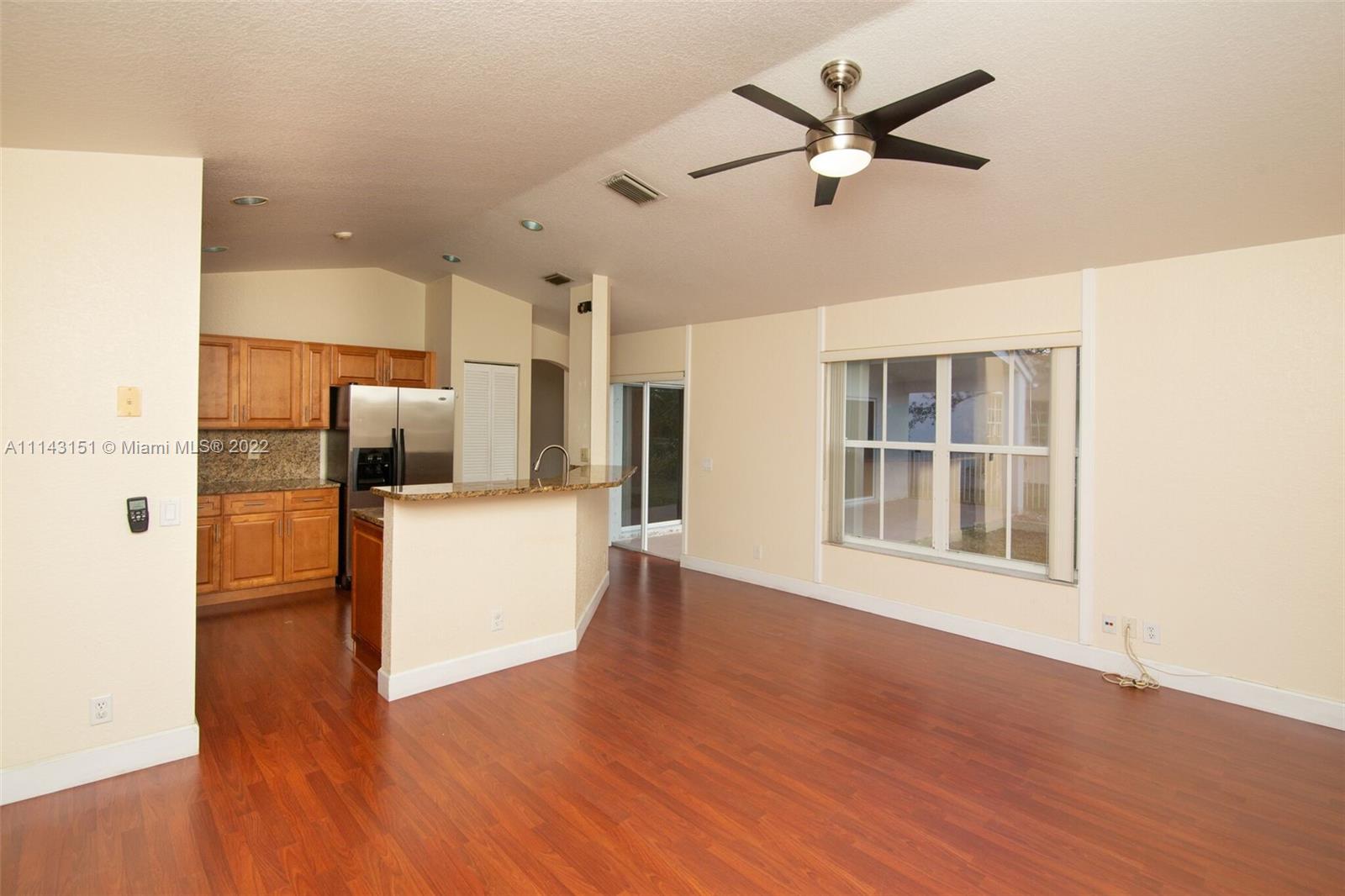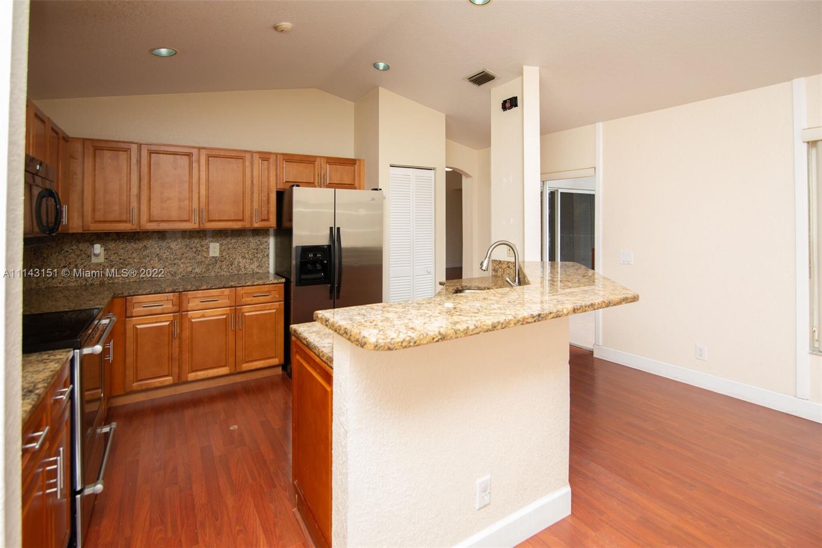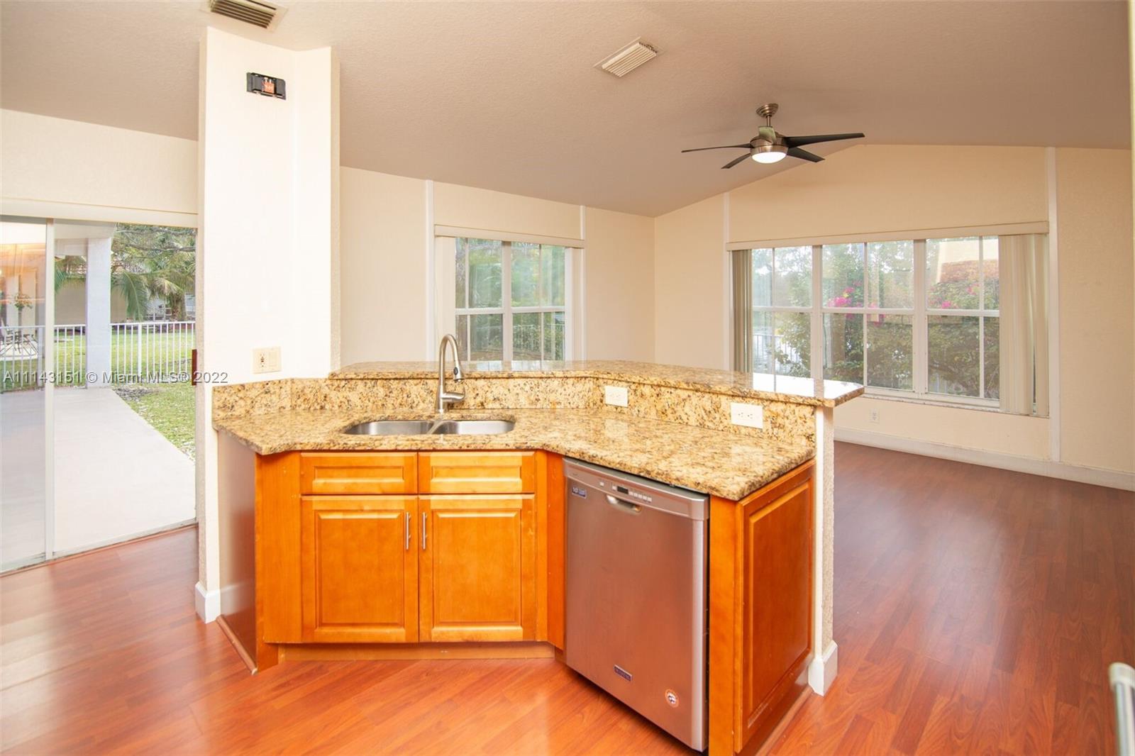 Lake front, updated 4 Bedroom 2.5 Bathroom with a huge fenced yard in the sought after community of: The Falls. Wood look flooring with Granite Kitchen counters and Stainless Steel appliances. Large Family Room, a formal Dinning Room and Kitchen eating area. Walk to the Community Pool, Basketball and Playground in this 24 Hour Manned Guardhouse Community with a Security Roving Patrol. Walk to Schools, Parts and Shopping. Schools are A for Elementary, Middle and High School. Stay Safe.
