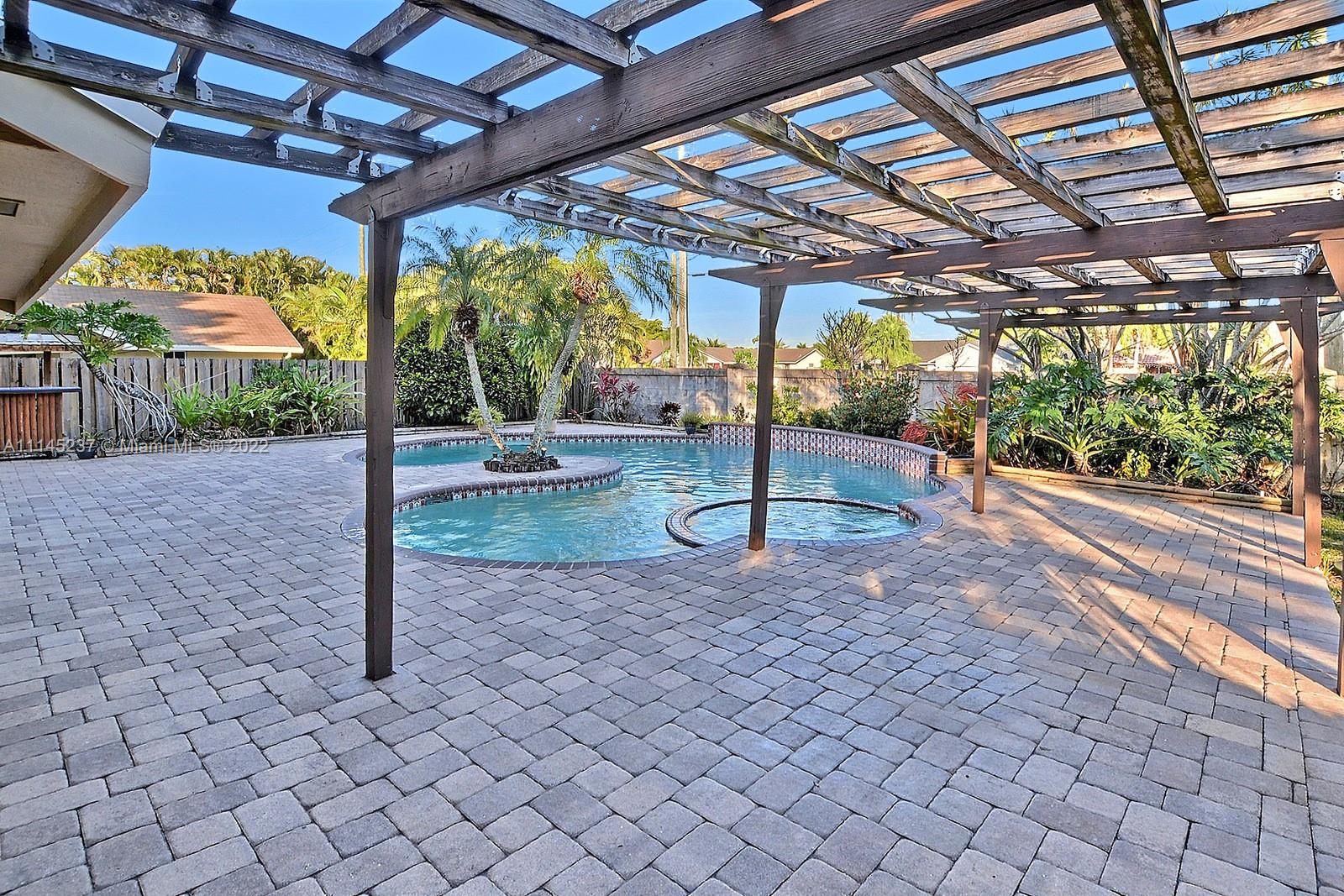 THIS BEAUTIFUL 3 BED + LOFT, 3 BATH HOME SITS ON A PREMIUM CORNER LOT IN THE SOUGHT AFTER TREE LINED COMMUNITY OF COUNTRY ADDRESS. FRENCH STAINED GLASS DOUBLE DOORS LEAD YOU INTO AN OPEN VAULTED CEILINGS, ROMANTIC WOOD BURNING FIREPLACE & PLENTY OF NATURAL. LOFT CAN BE TURNED INTO A 4TH BEDROOM AND DOWNSTAIRS CABANA BATH IS A TRUE FULL BATH. PRIMARY SUITE FEATURES DOUBLE SINK VANITY, UNIQUELY TILED ENCLOSED TUB AND SPACIOUS WALK IN CLOSET. GORGEOUS REAL-WOOD FLOORS. BACKYARD IS A TRUE OASIS WITH POOL AND SPA, LUSH LANDSCAPING, BEAUTIFULLY TILED PATIO, BUNGALOW AND BAR AREA. ACCORDION SHUTTERS, AND 2 CAR GARAGE. ACCESS TO COUNTY ADDRESS PARK, TREE TOPS PARK, COOPER CITY SCHOOL DISTRICT AND PLENTY OF AMAZING SHOPS AND RESTAURANTS.