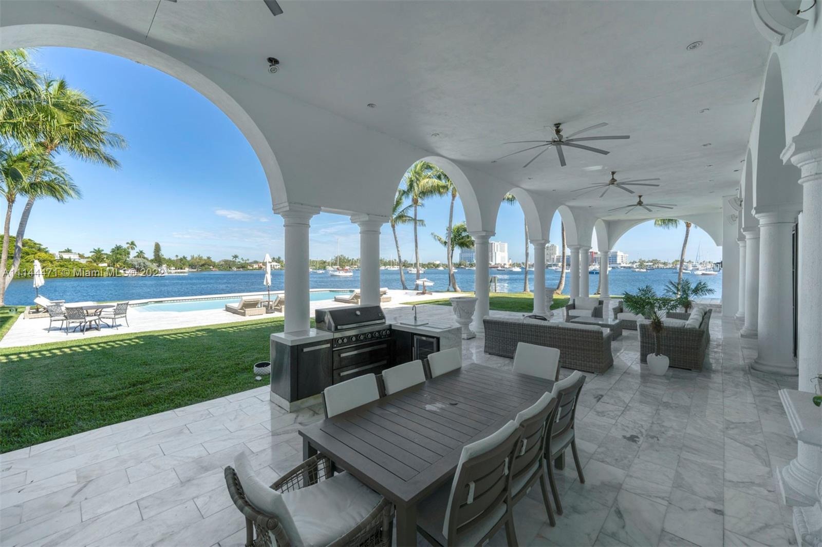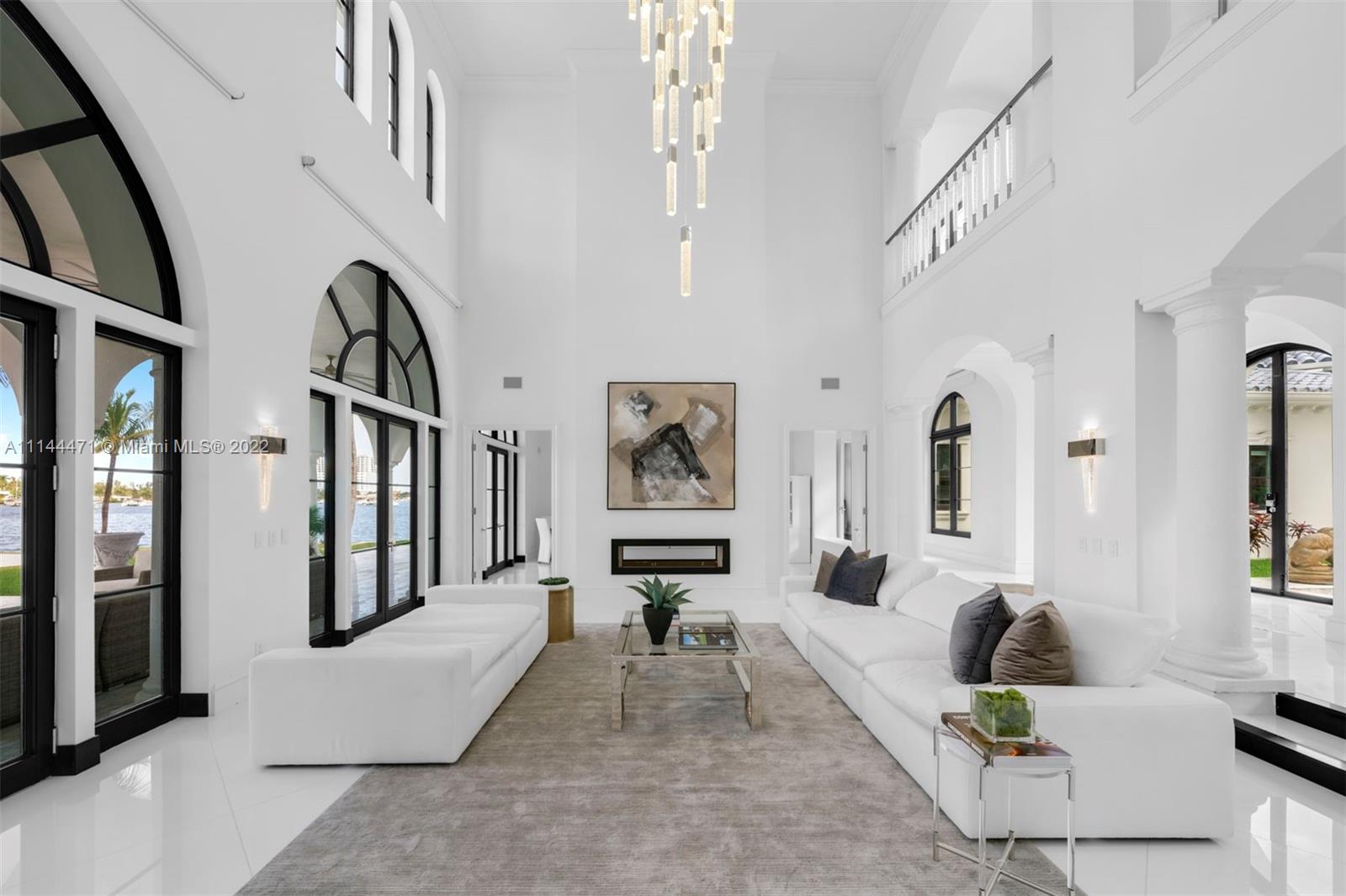 Step inside this stunning waterfront estate sitting on over 1 acre, triple corner lot with 450" of redone seawall. The home was remodeled in 2020 with no expense spared, including a new boat lift that can accommodate up to 80ft boat, 1 folding dock for 3 jet skies and tender, 2 wine cellars, theatre room, tennis court, fitness room, custom doors + archways, and so much more. Enjoy spectacular water and Intracoastal views from every room in the house. The separate guest house boasts 2 beds and 2 baths. Great location minutes from Aventura mall, FTL airport, and major highways.