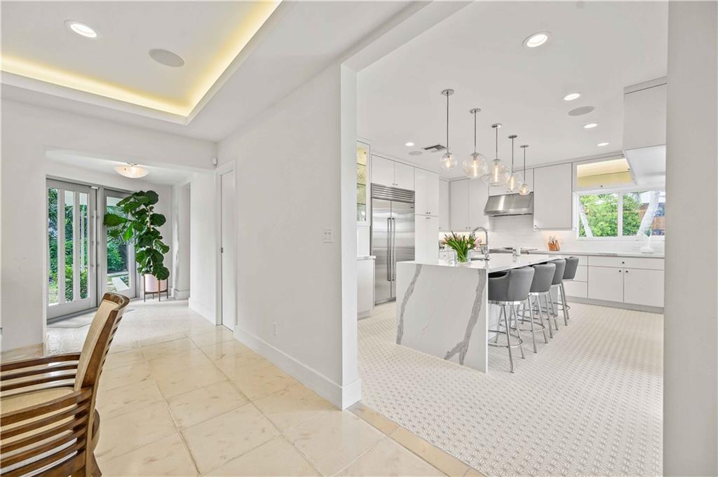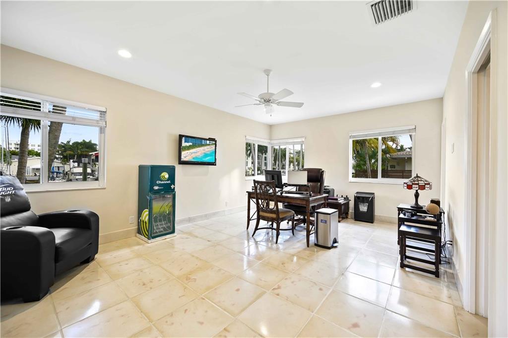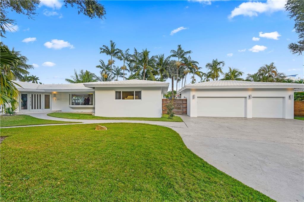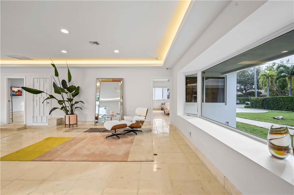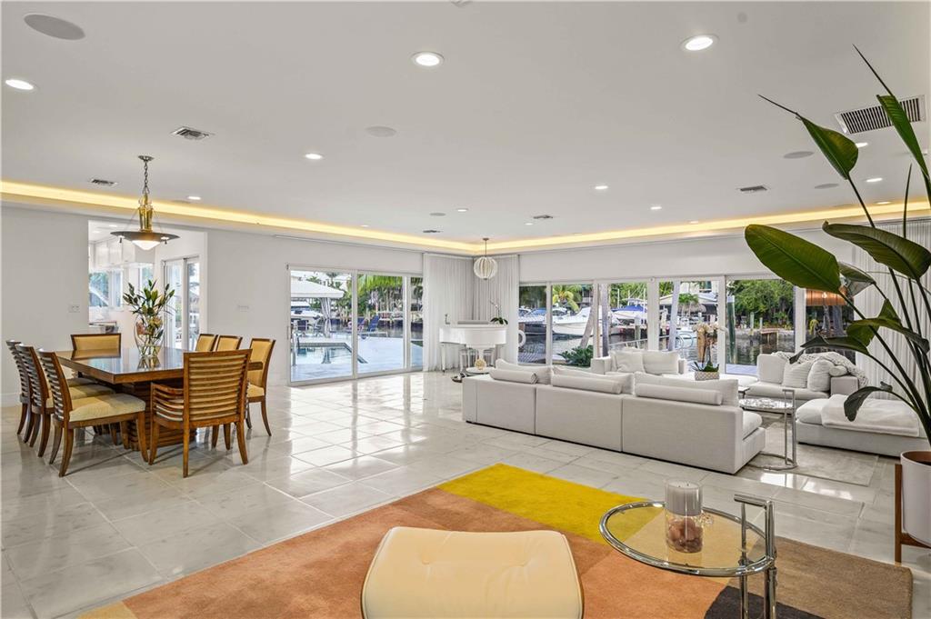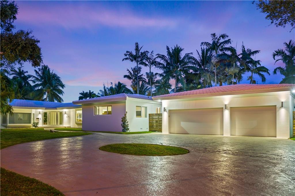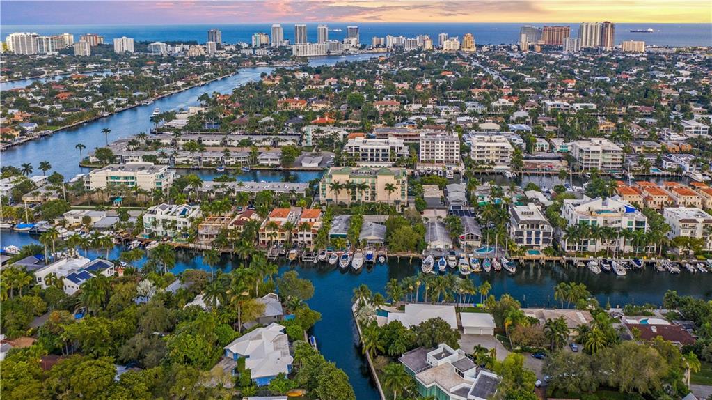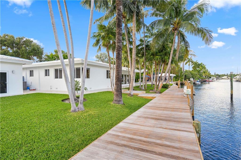 Park-like North Gordon's premier point property encompasses over 16,000 square feet & no-fixed-bridge water front of over 240 feet with 162 feet along the wide, deep Karen Canal. A recent multi-level ipe dock also has a float platform. Sleek Mid-Century architecture is updated for the 21st Century including re-built roof, newer electrical and plumbing systems and all impact-rated windows and doors. The sunken living room has volume ceilings. Walls of sliding glass merge outdoor and indoor living featuring water views from all public areas. Travertine patios surround the re-done, heated pool and water facing gazebo. In front, a crescent drive leads to an oversized three car garage with additional storage and laundry room with a dog wash. Very walkable to parks and Las Olas dining.