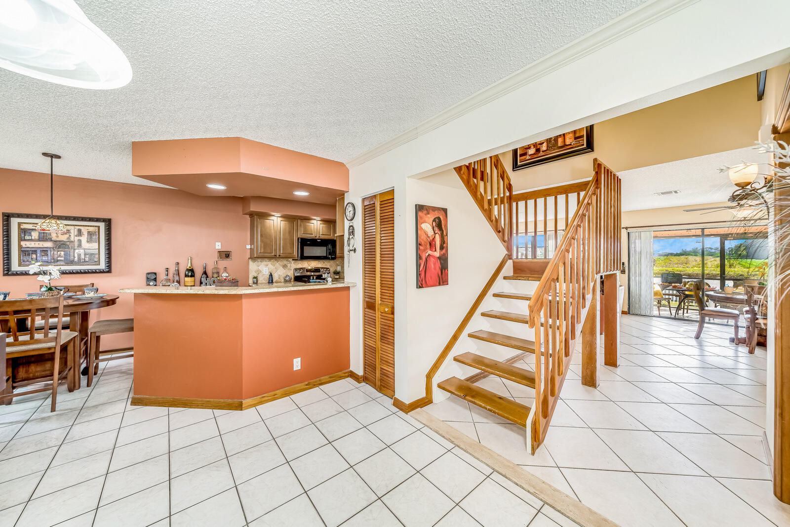 Spacious 3 bedroom, 2 1/2 bath, screened in/covered patio on the canal, 2 car garage, townhouse in Boca Fontana. Large living/dining room, family room off the updated kitchen featuring granite counter tops, tumbled marble backsplash, a snack bar Plus an eat in area/breakfast nook that has an additional patio that is a perfect spot for entertaining. is The 3 bedrooms are located upstairs & feature laminate flooring, tile flooring downstairs. Master bedroom with water/canal view upstairs with large Roman tub, separate shower PLUS a huge walk in closet. Space under-stairwell storage area are very large. The builder used every square inch for maximum spaciousness and efficiency. Great views from living and dining rooms plus from the serene screen in/covered patio.